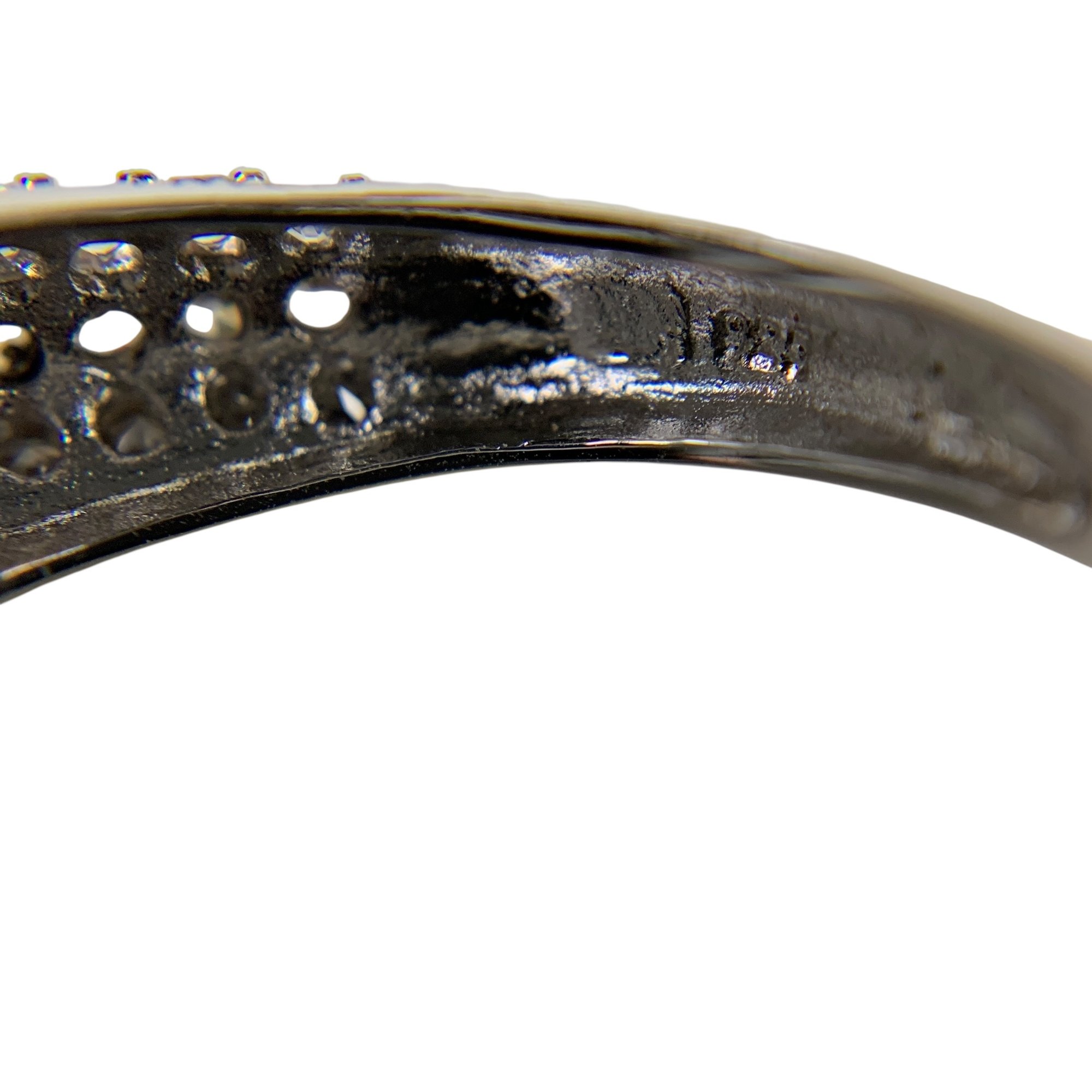 Stamped 925 on the shank - slightly magnetic, appears to have an overlay made from another type of metal.