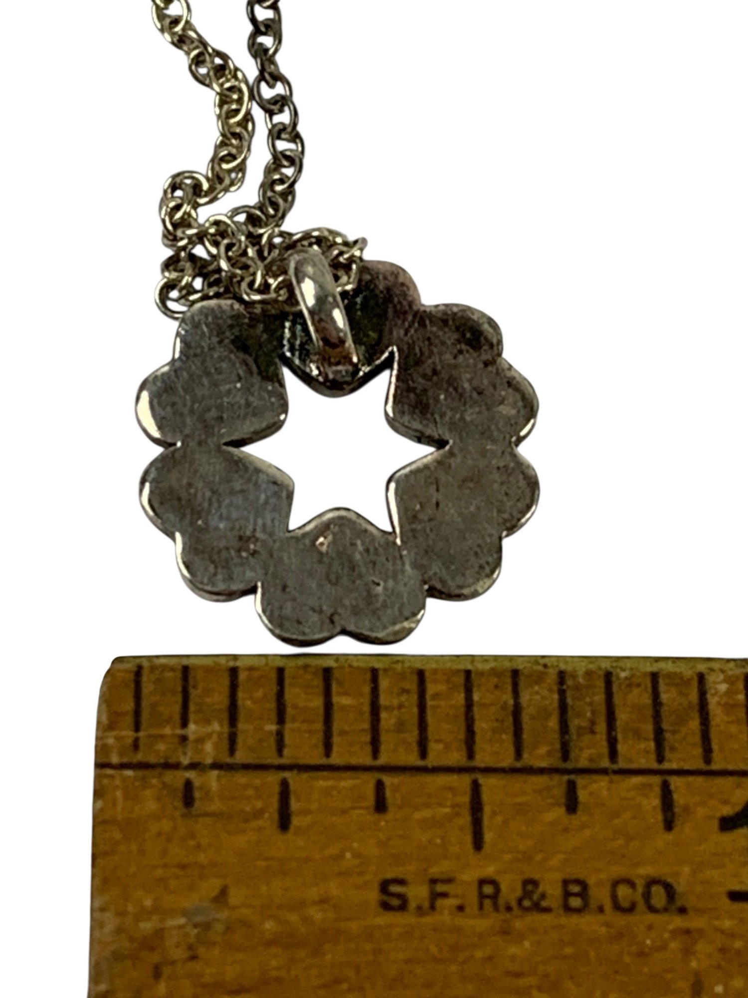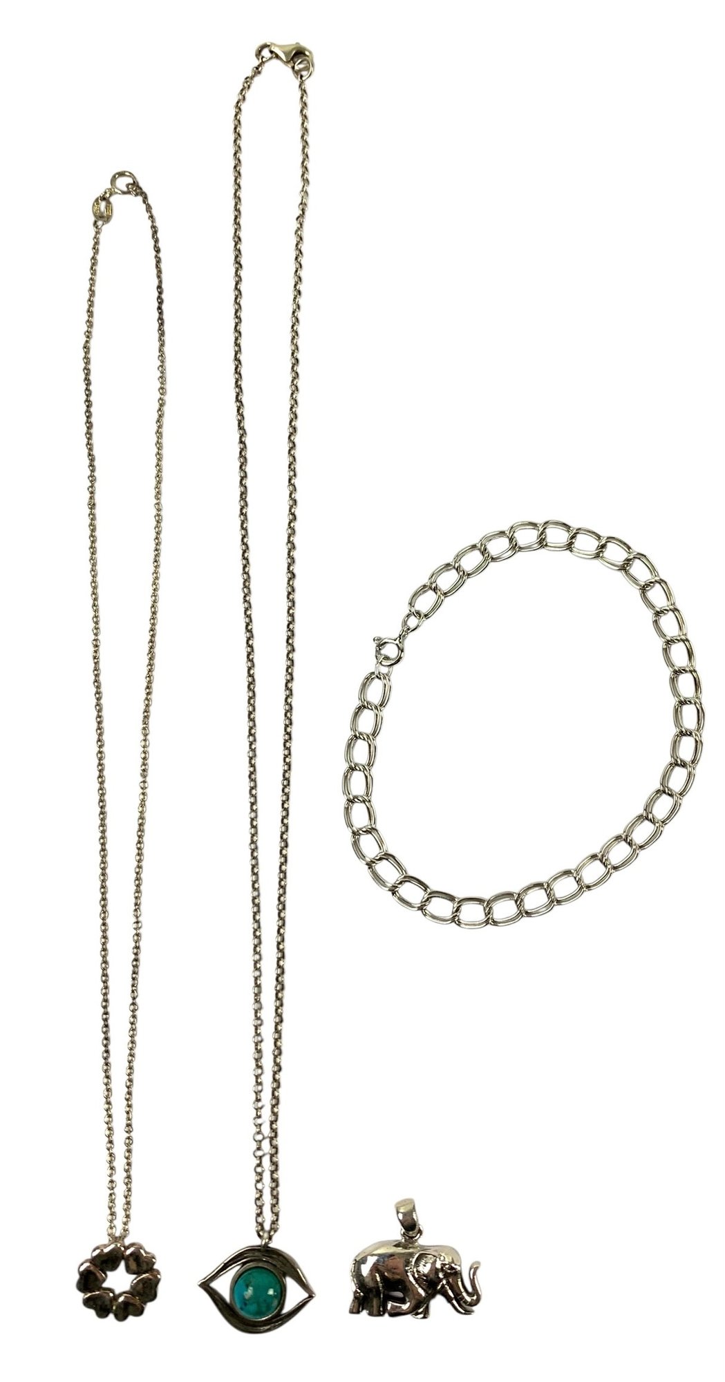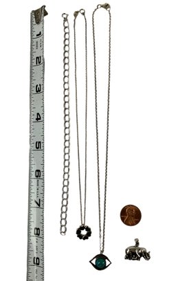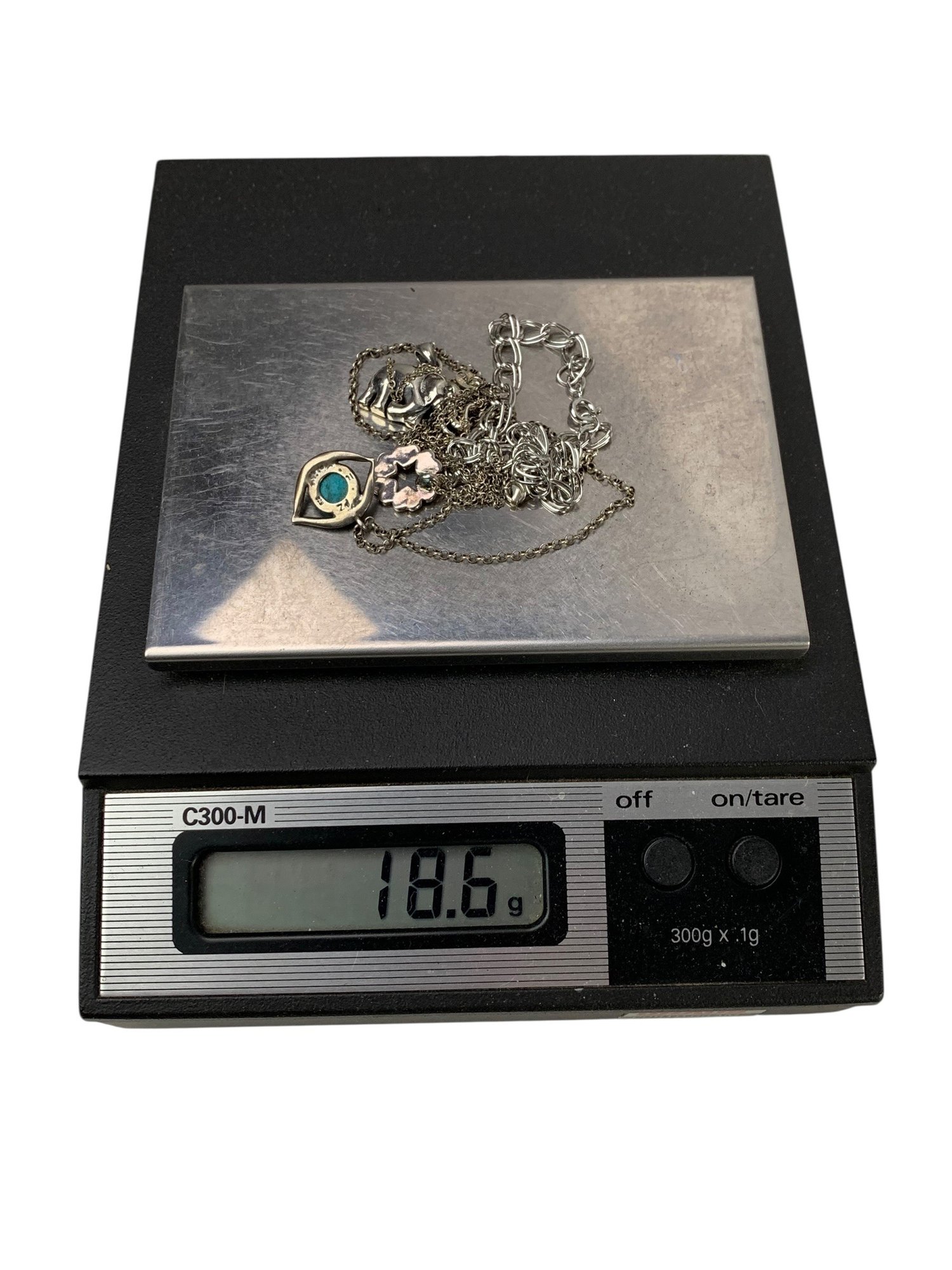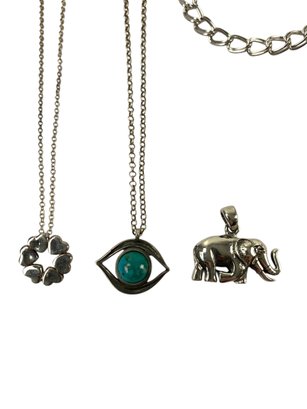 Two of the three pendants are stamped "925" on the back, while the unmarked pendant acid tests positive for silver.