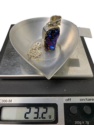 Stamped "India 925" on the bail, and "925" on the clasp.