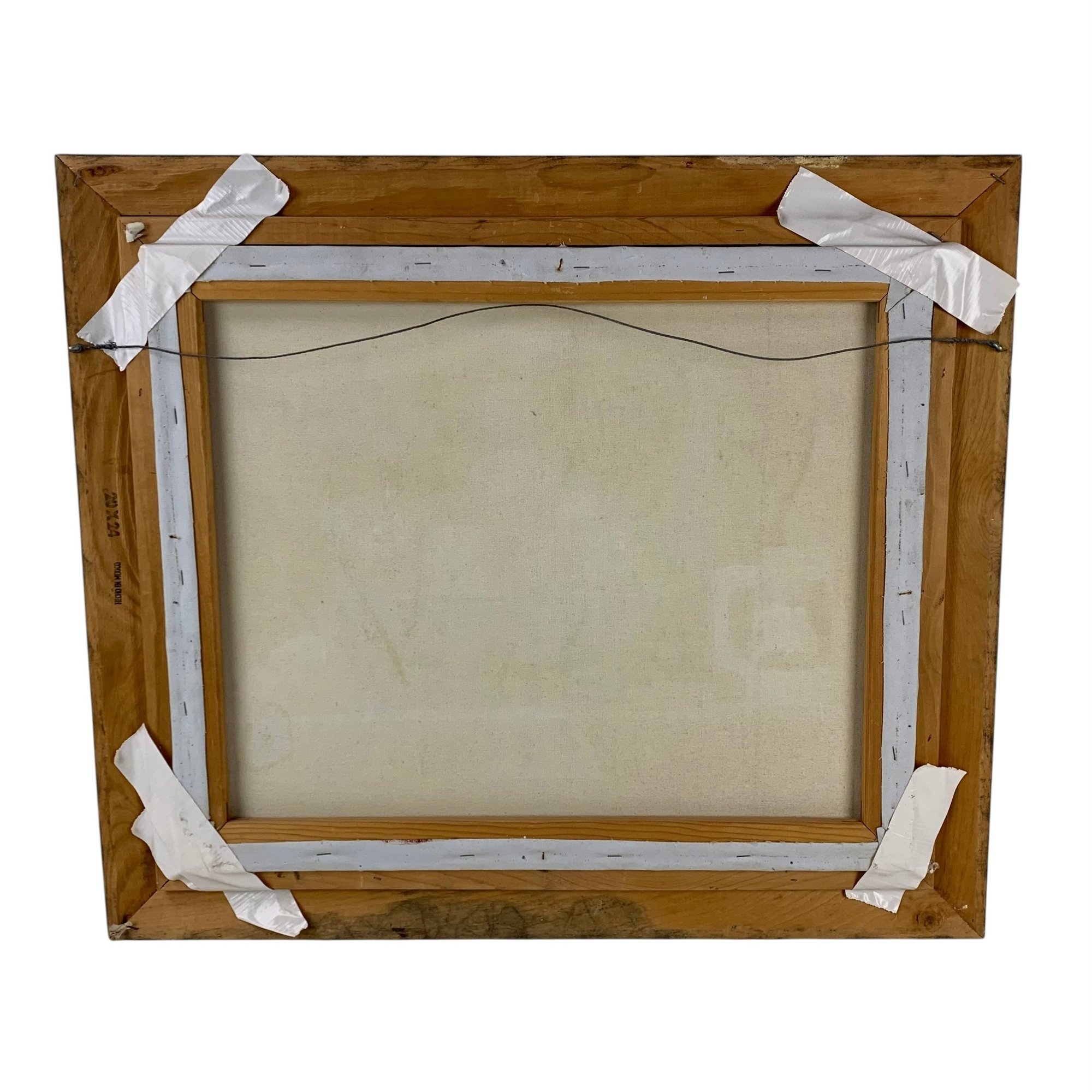 Small dent noted in the upper center of the canvas.