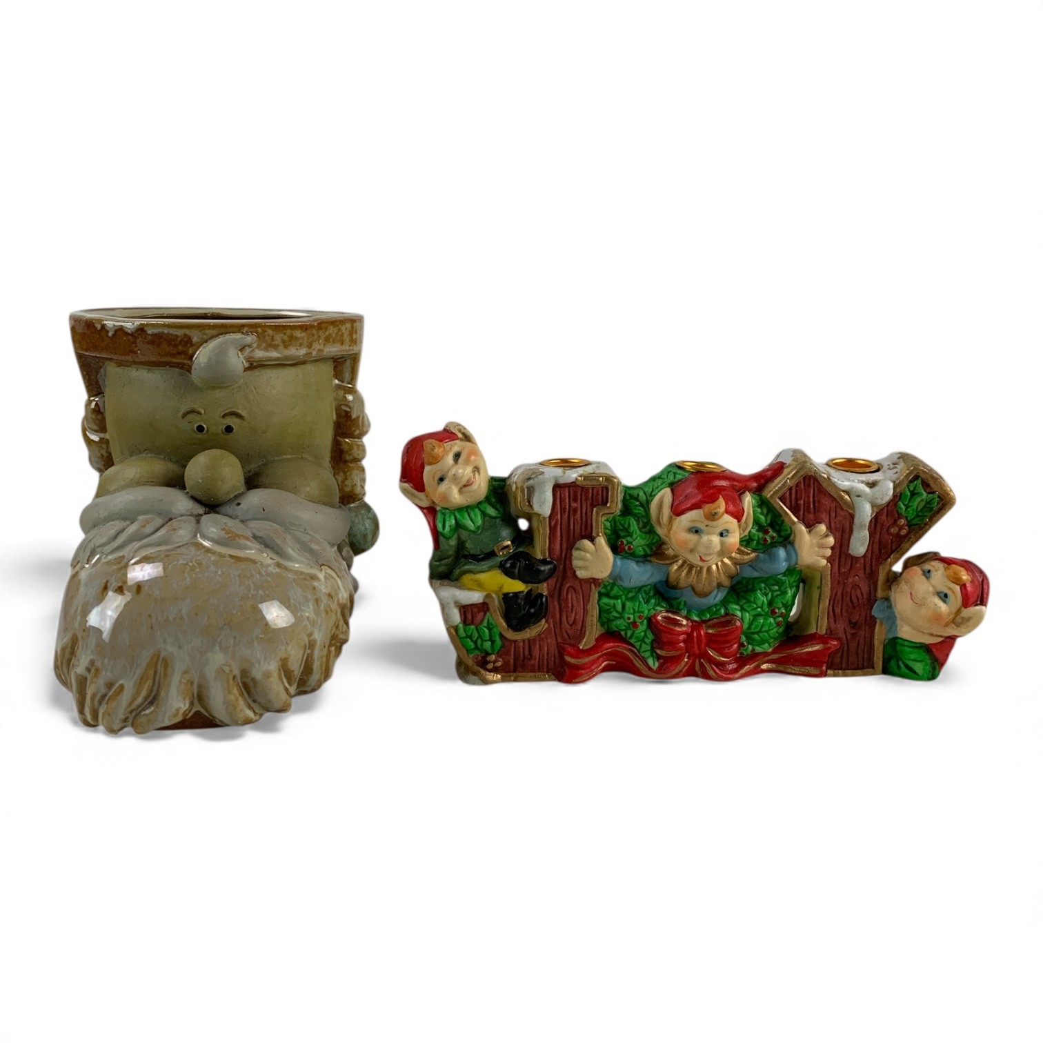 Also includes: Boleslawiec Polish Pottery salt & pepper shakers and a ceramic Christmas elf "JOY" candle holder.
