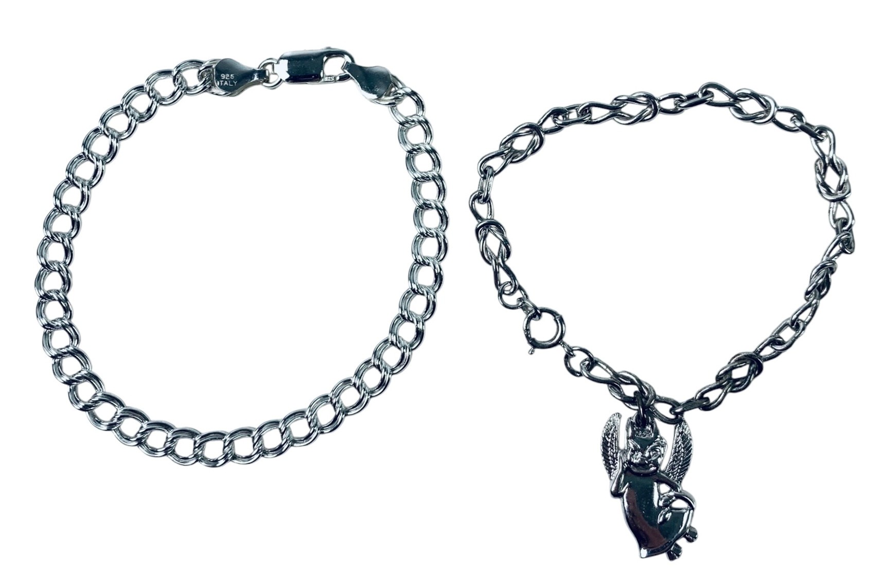 Stamped "925 Italy" on the clasp of the double link bracelet.
