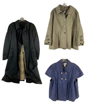 The peacoat is new with tags, and the suit jacket is in excellent pre-owned condition.