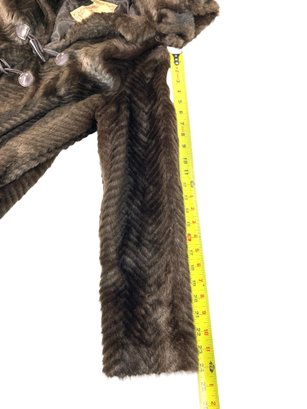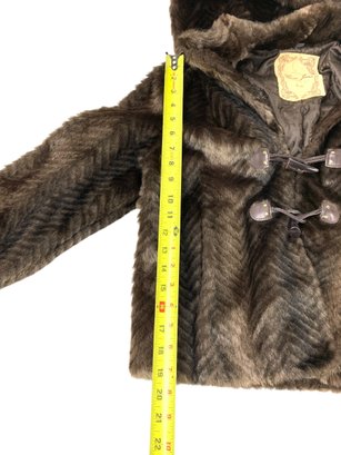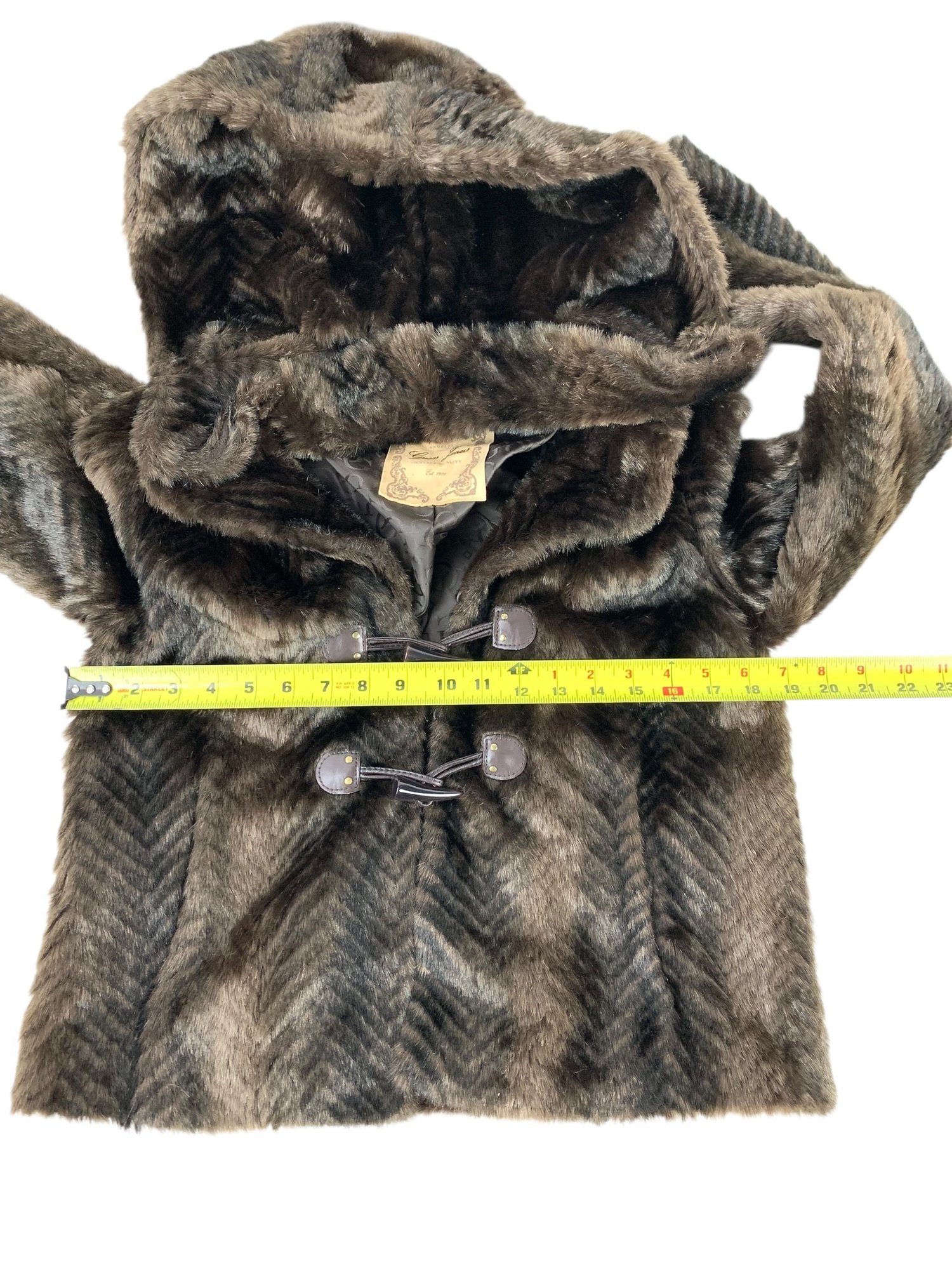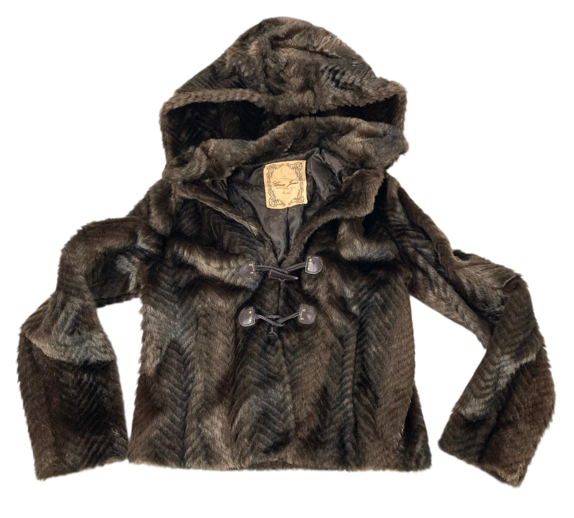 Features a double toggle closure, hood, inner pocket and logo printed fabric lining.