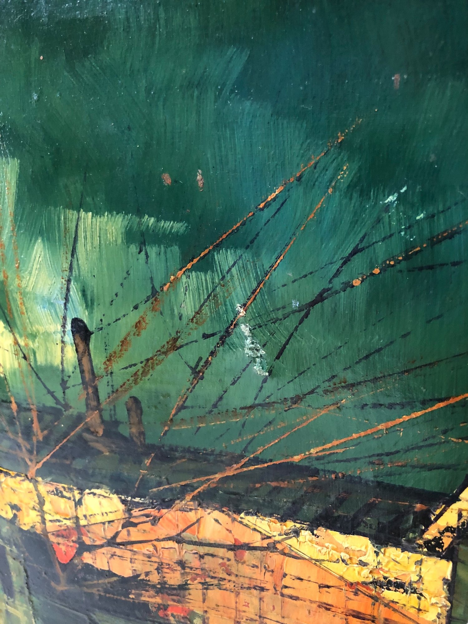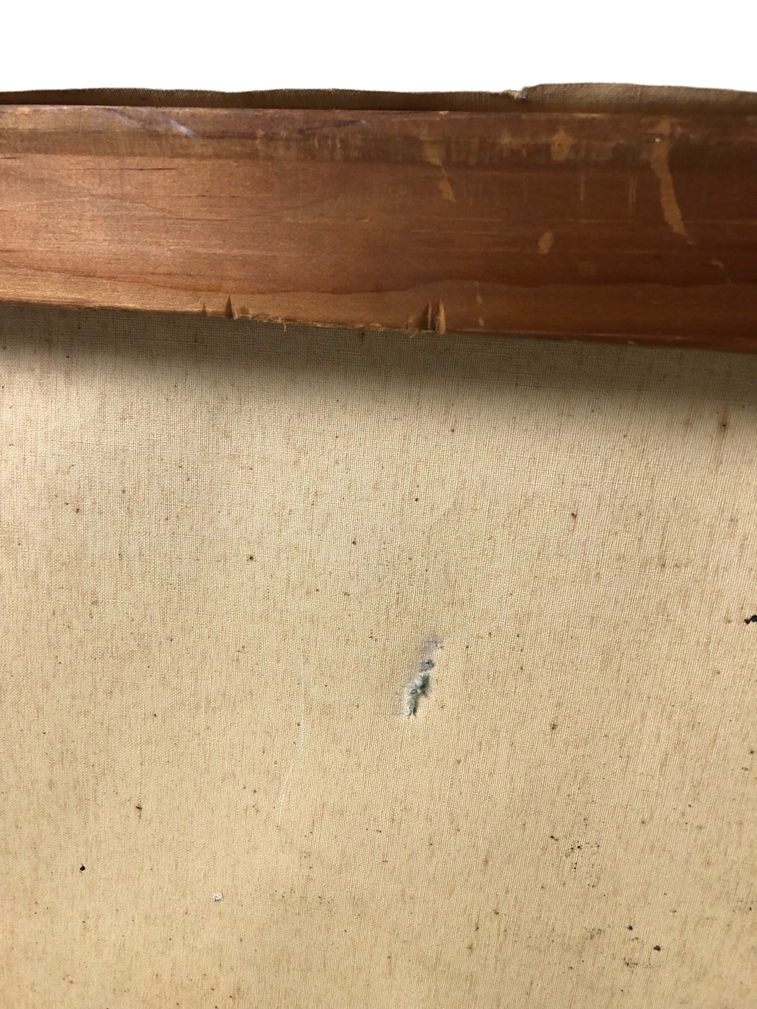 Small hole noted in the top center of the canvas (see photo #10).