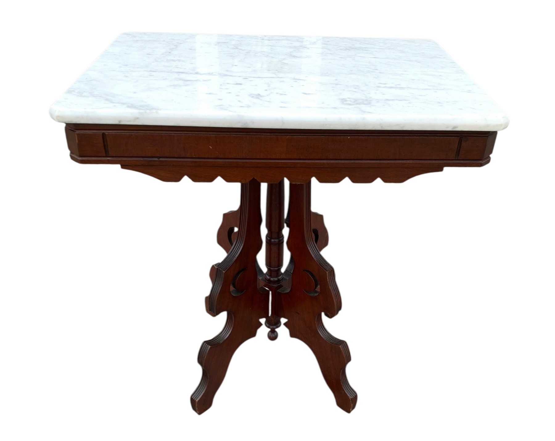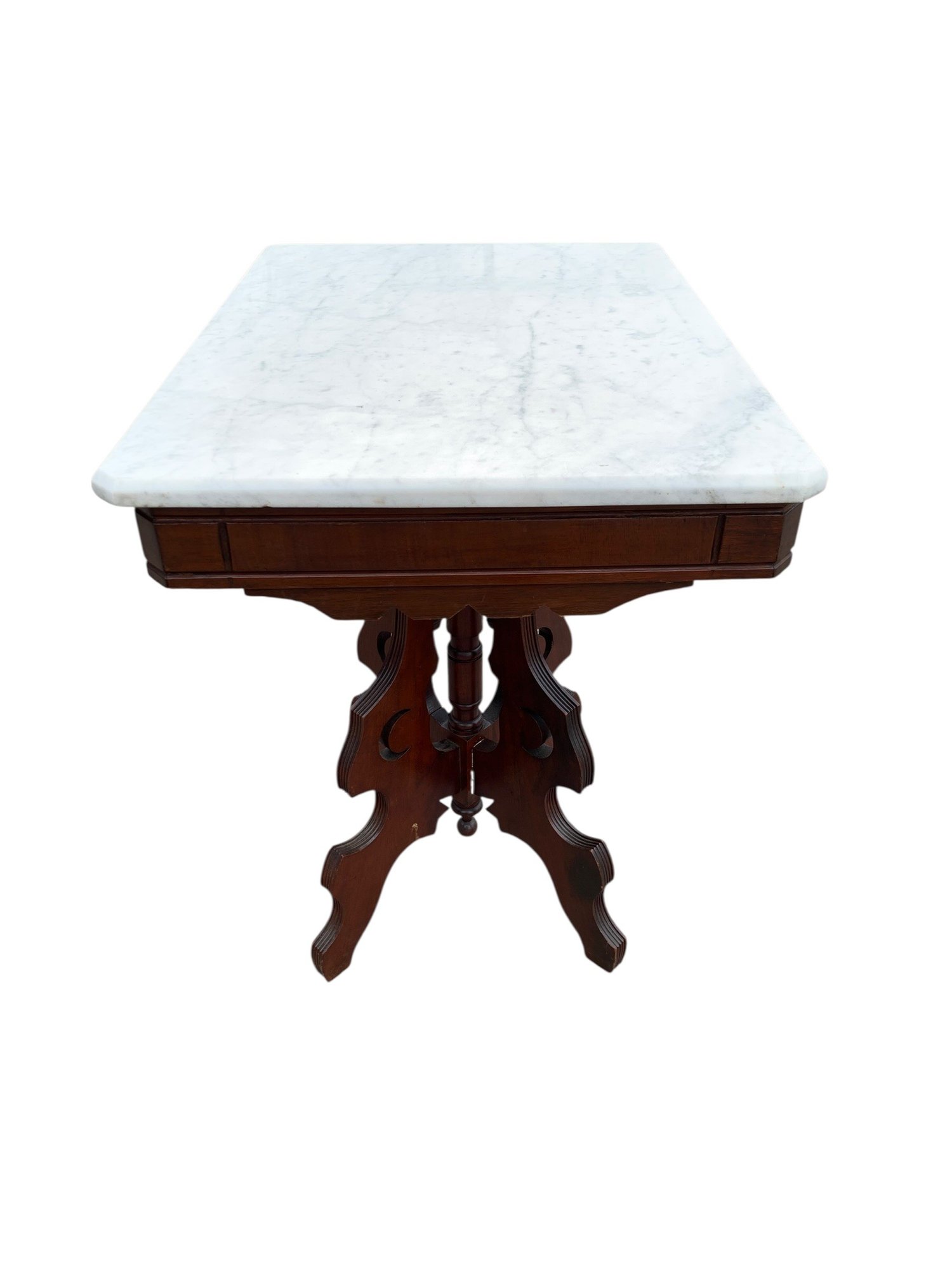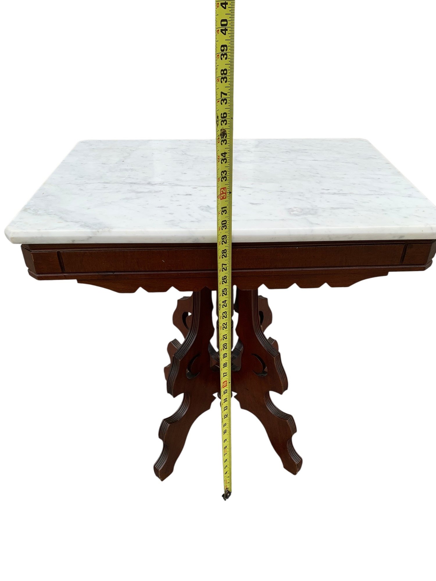 Marble top appears to be in good condition overall with scuffs/scratches consistent with normal usage.