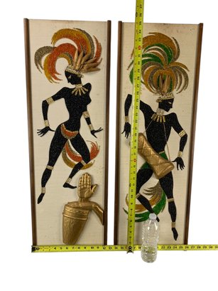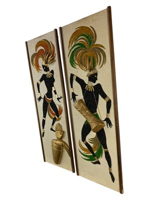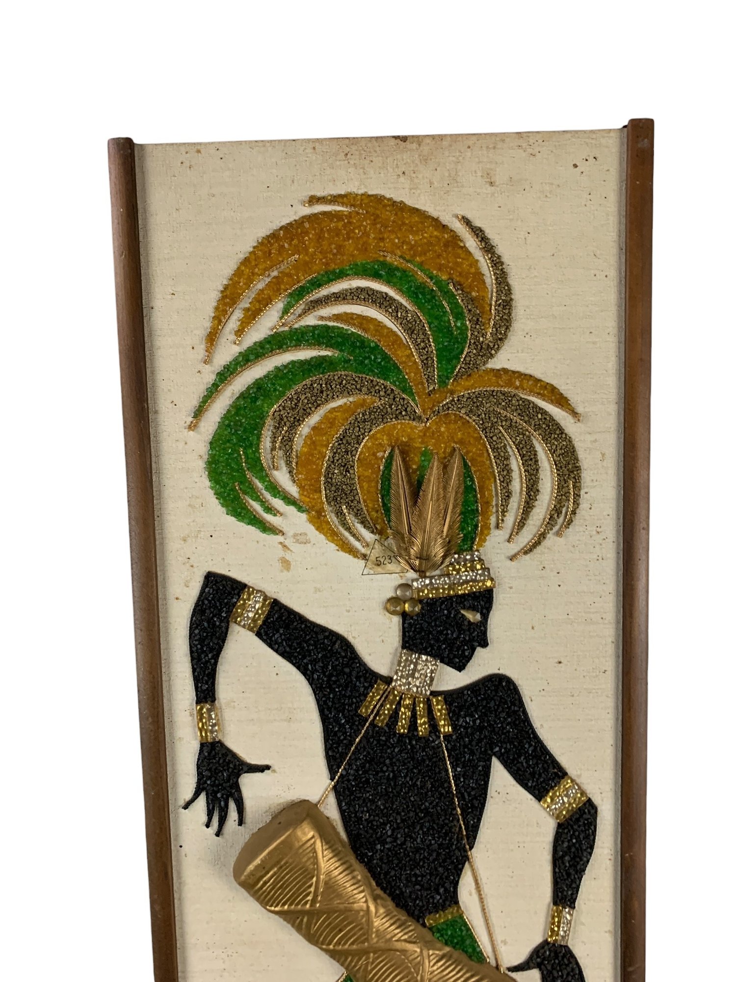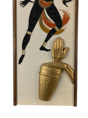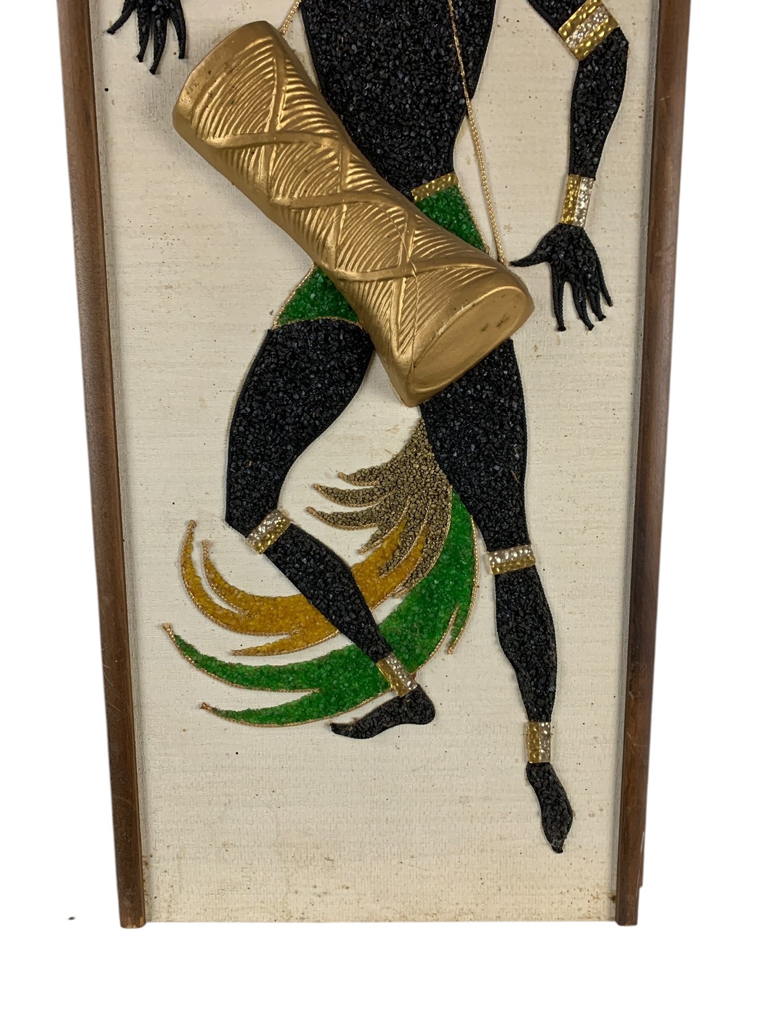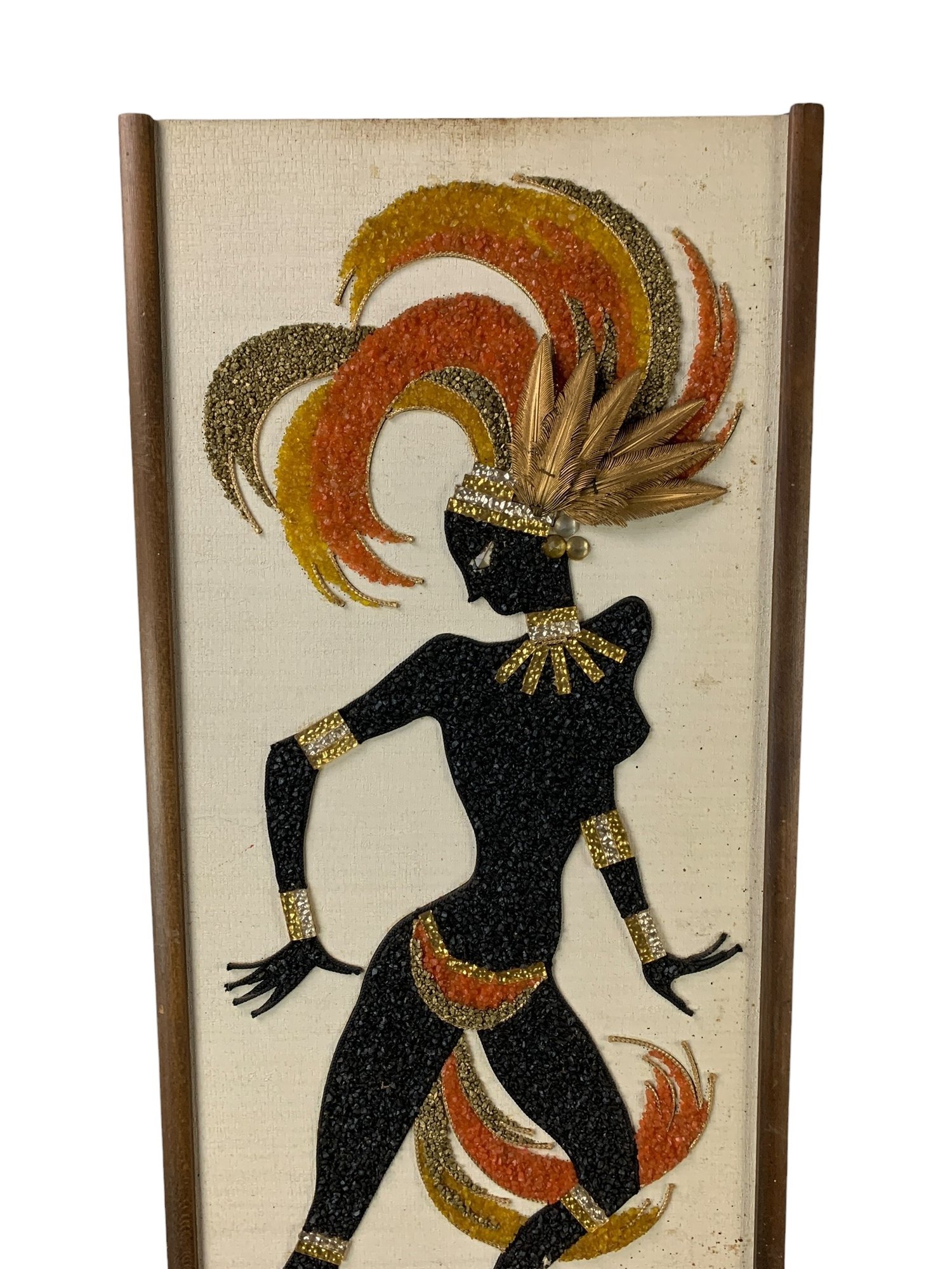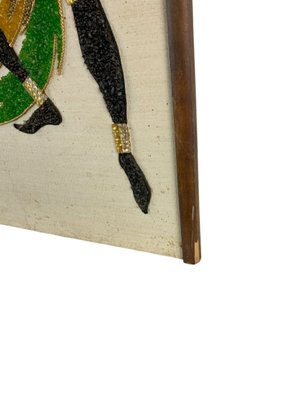 Features colorful dancers made from crushed gravel applied to a textured background.