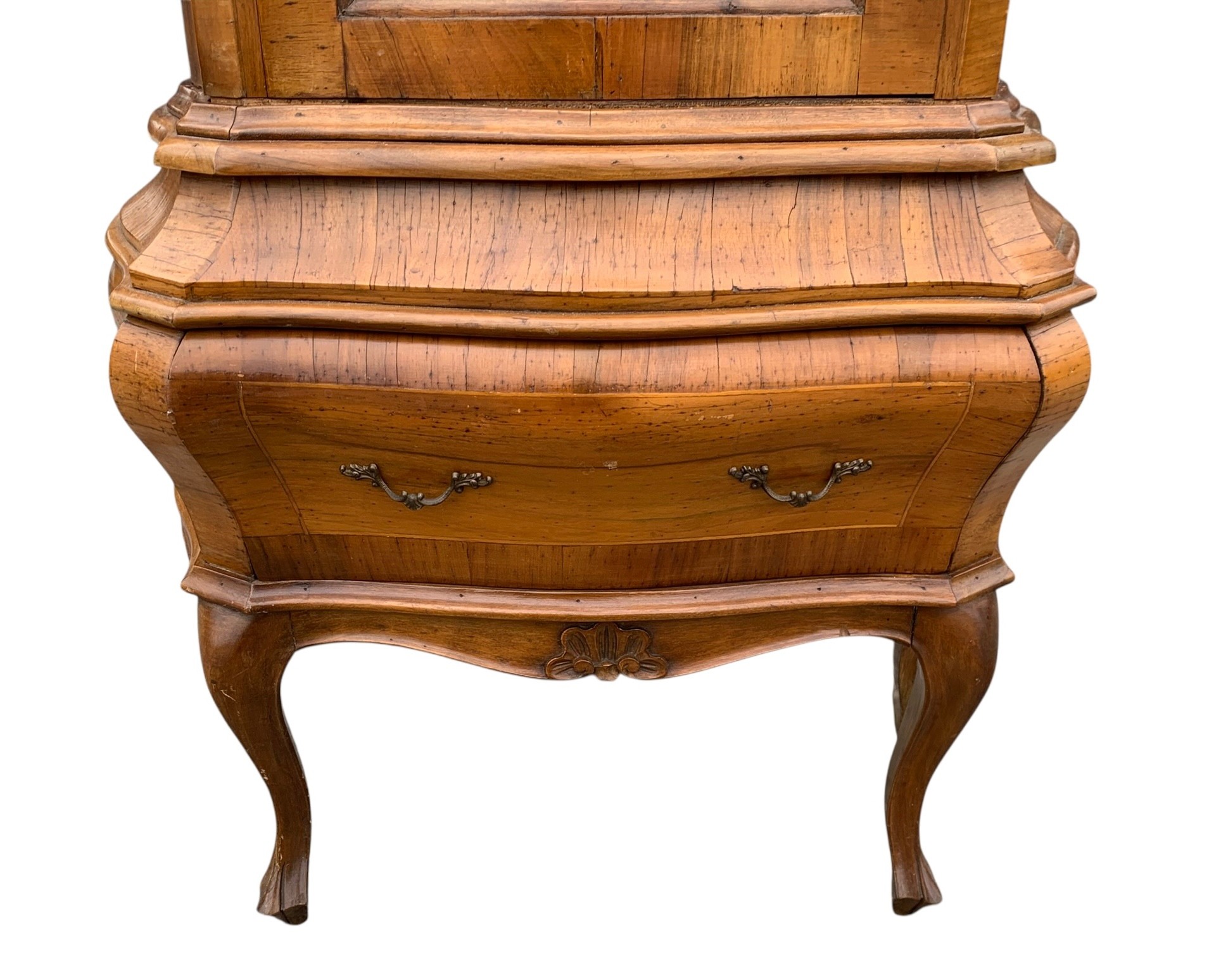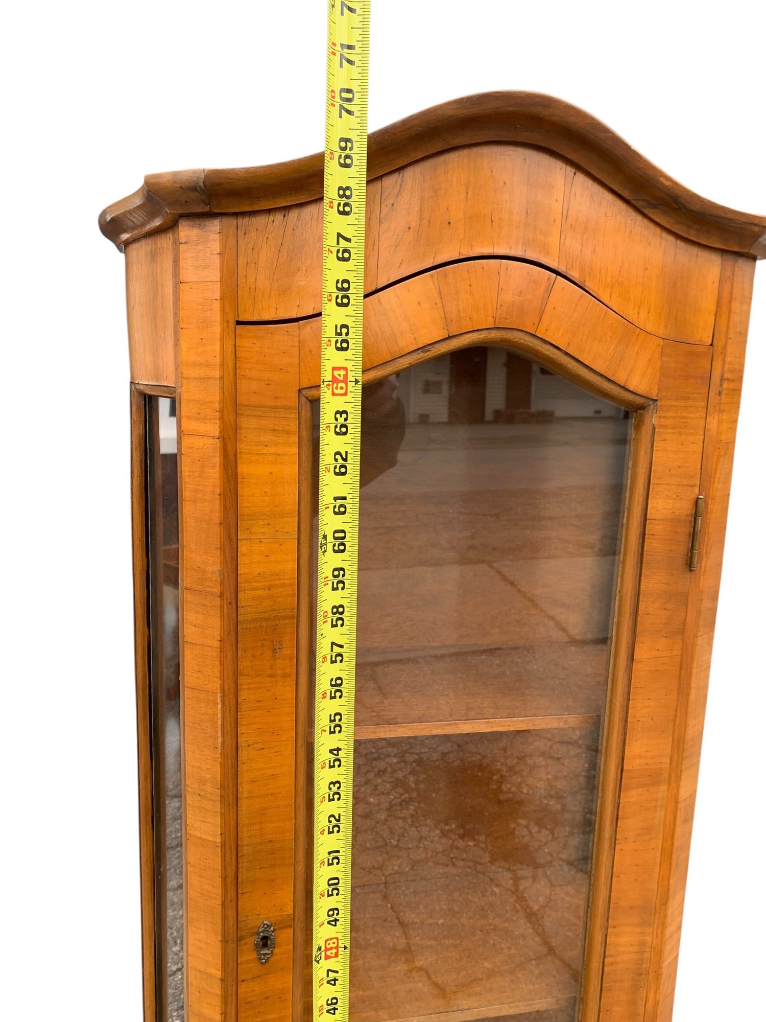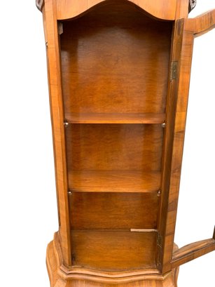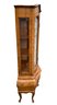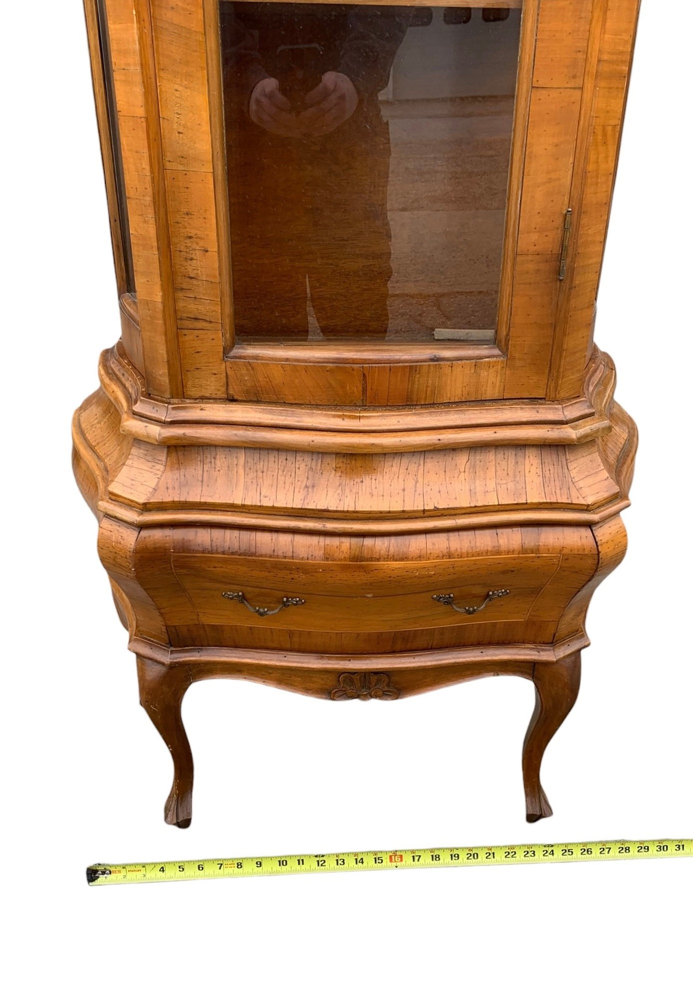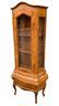 Glass display cabinet with three interior shelves and a single drawer at the base.