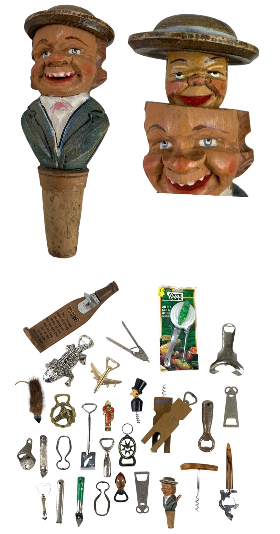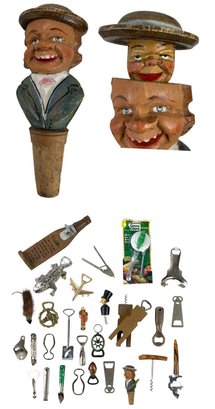Vintage Corkscrews, Bottle Openers & ANRI Italy Carved Bottle Stopper - #S23-5