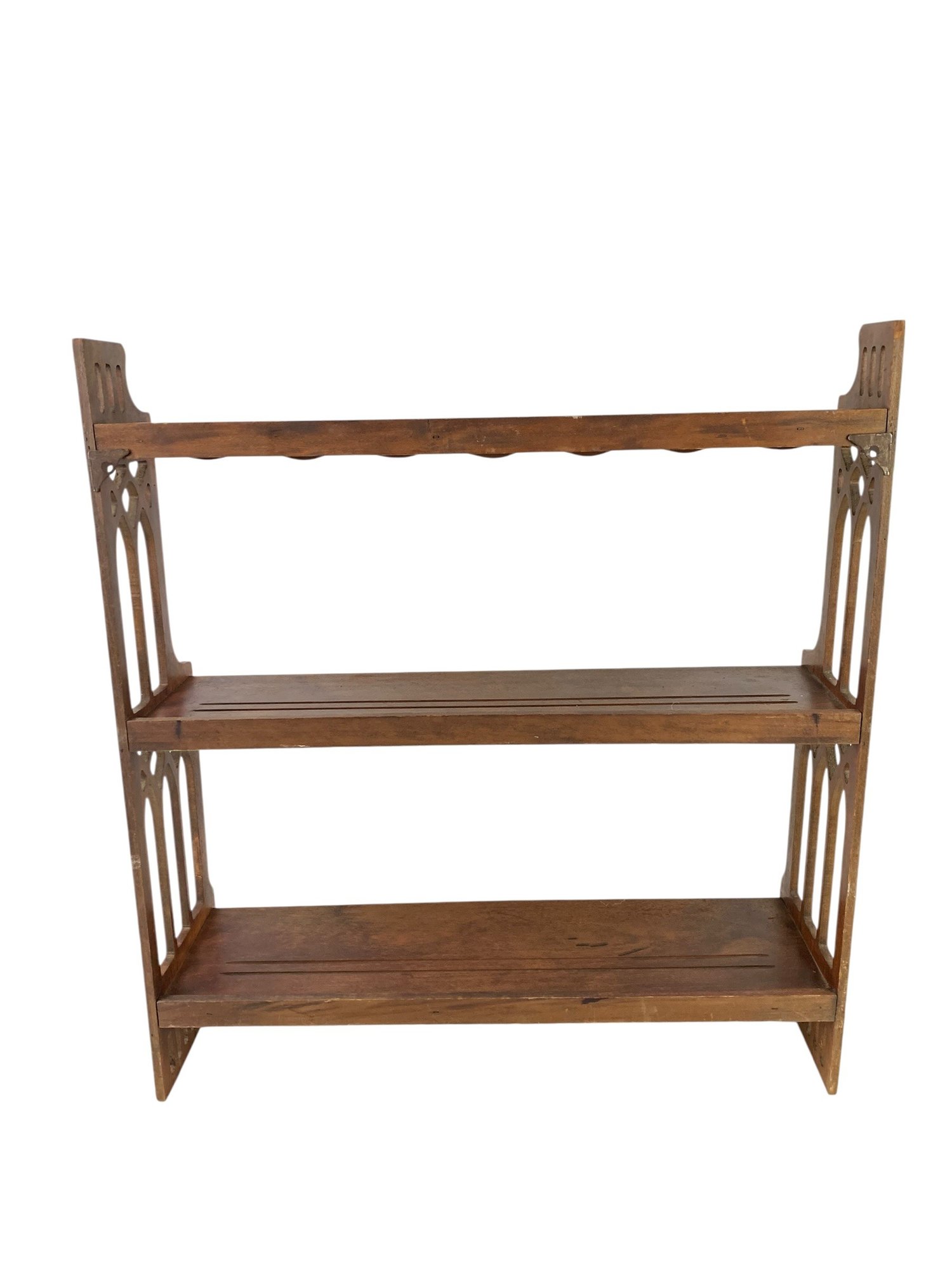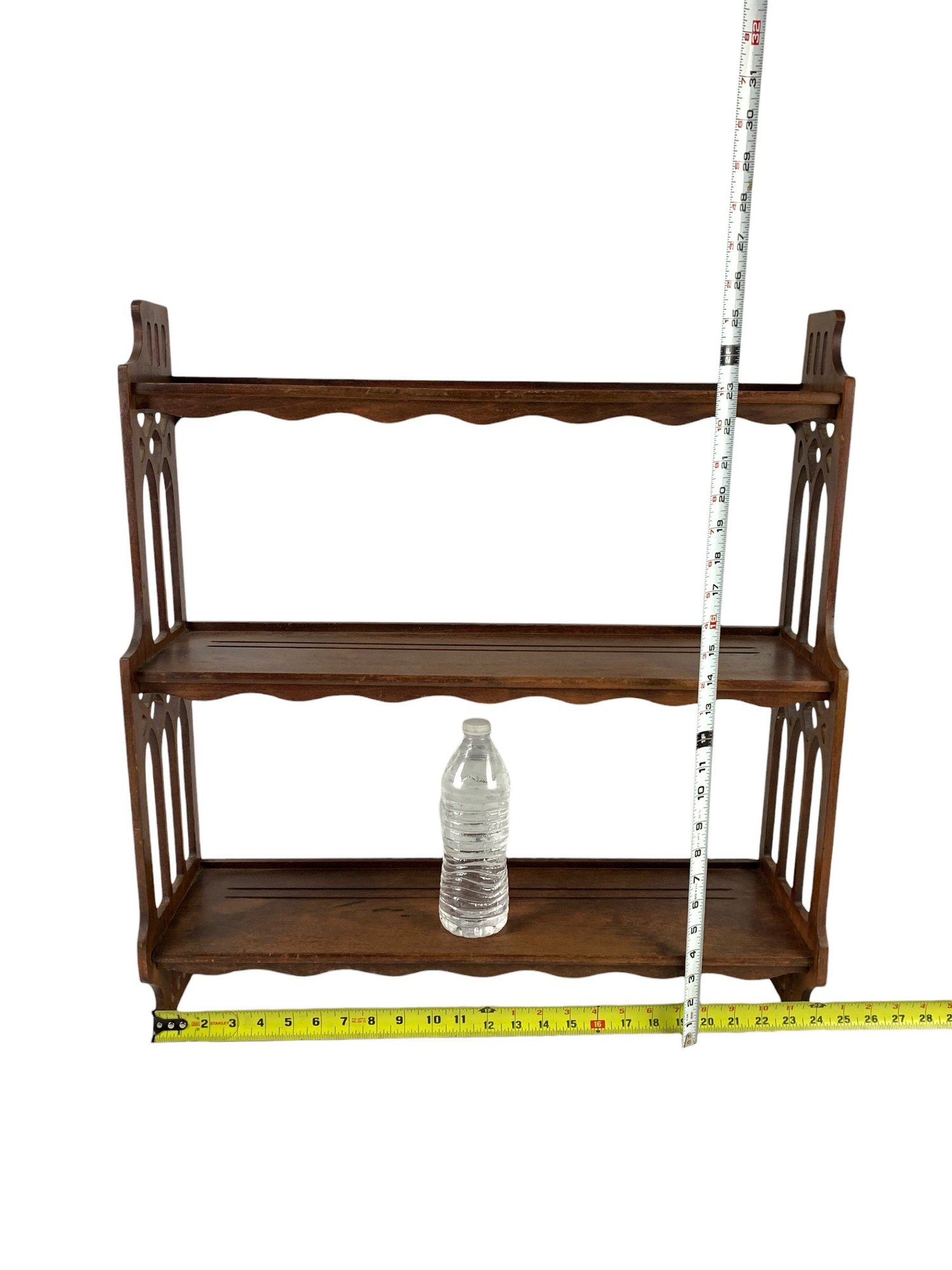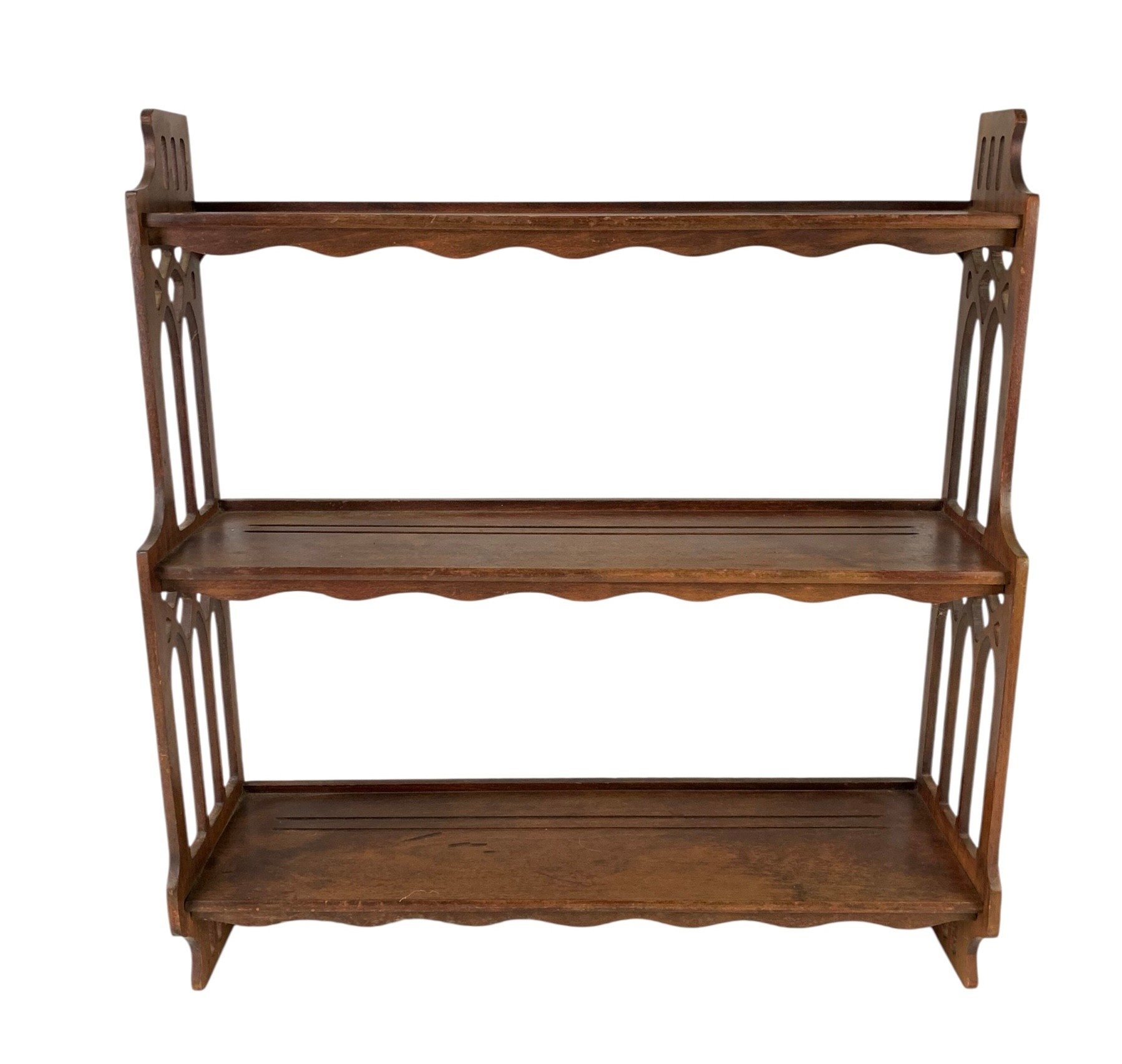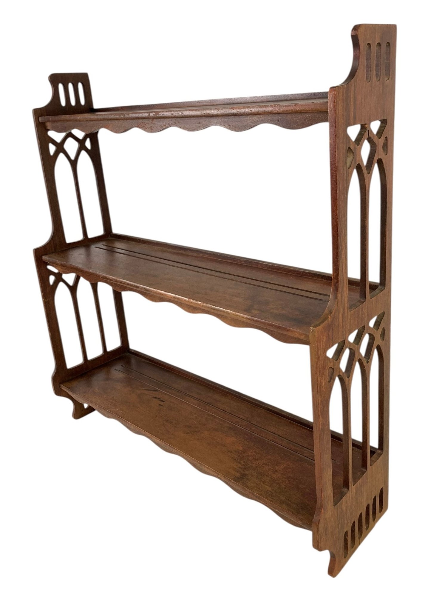 Features three tiers with Gothic Revival-style fretwork side panels.