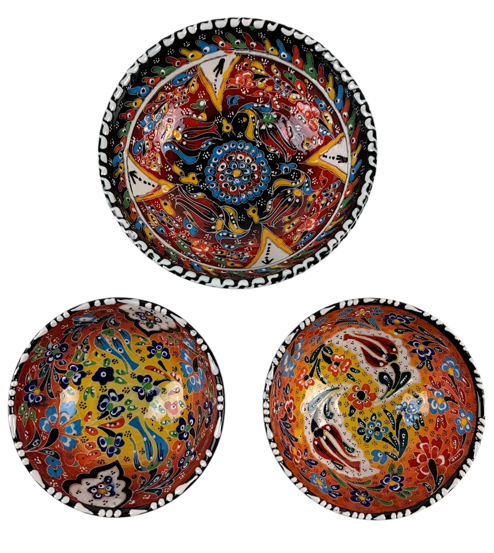 Diameter: 2 bowls measure 4-3/4 inches and 1 measures 6-1/4 inches.