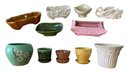 Good condition overall - hairline crack noted on the back of the McCoy Springwood planter.