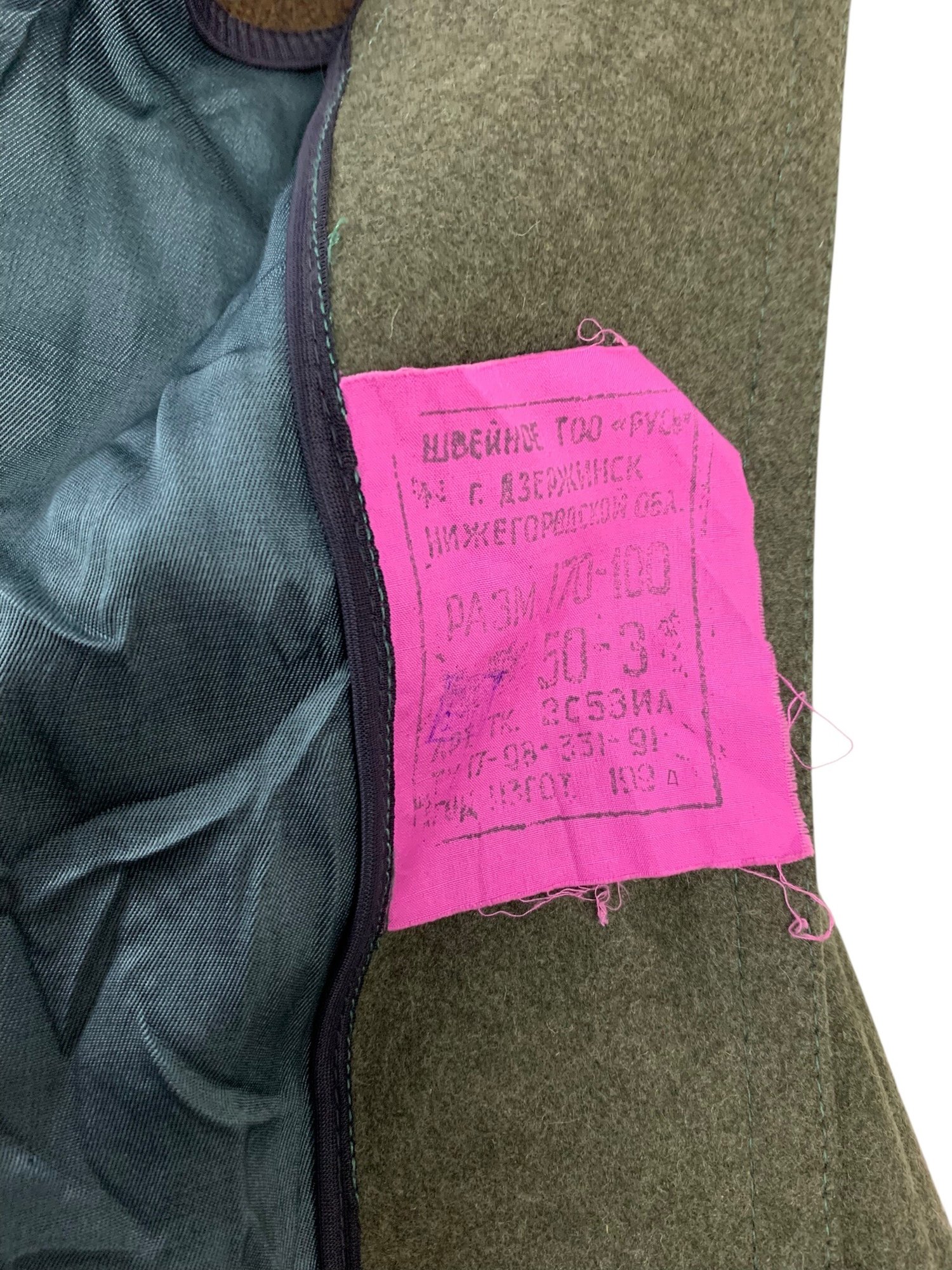 Russian manufacturing tag sewn on the interior.