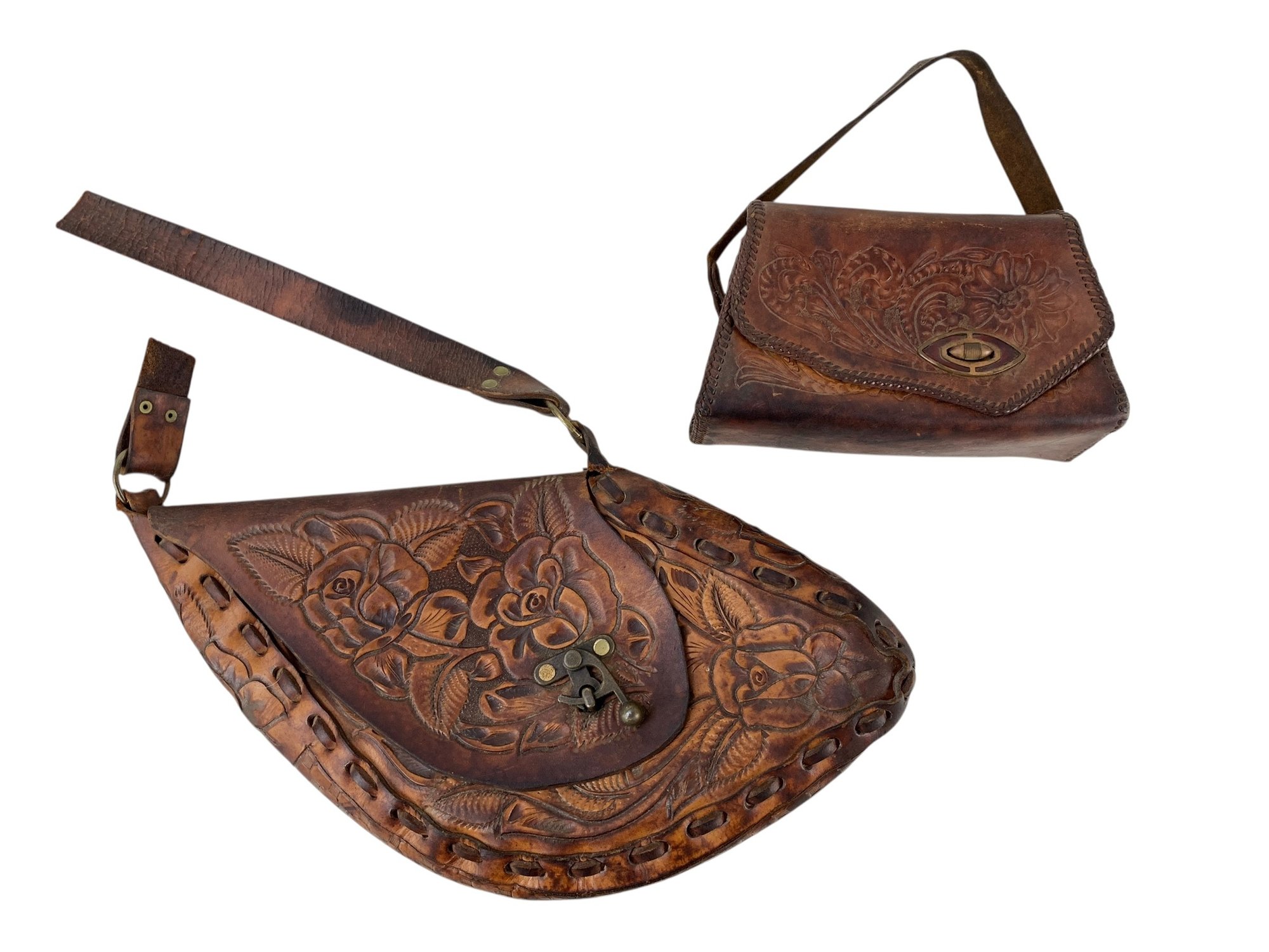 The smaller bag appears to be in good condition with age appropriate surface wear.