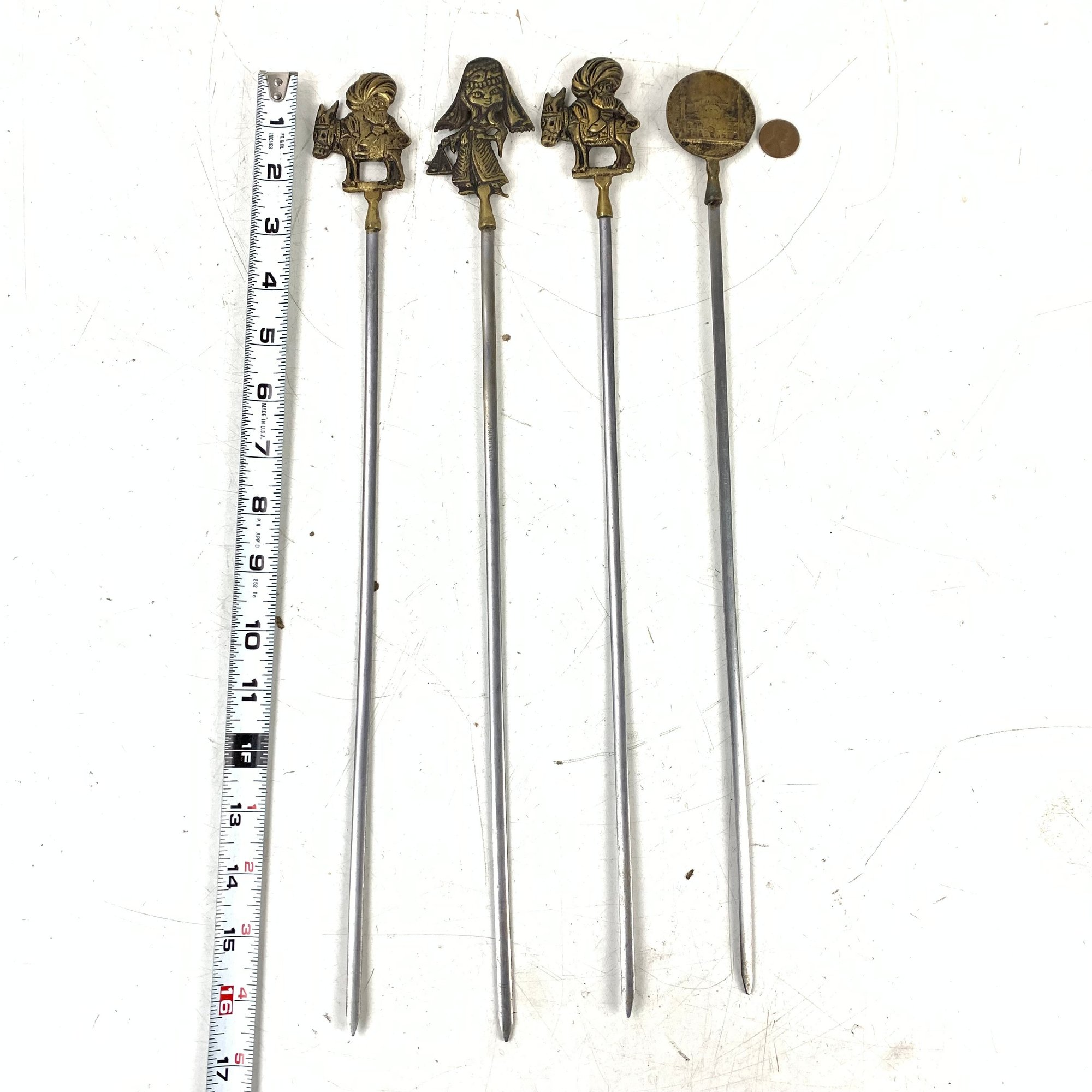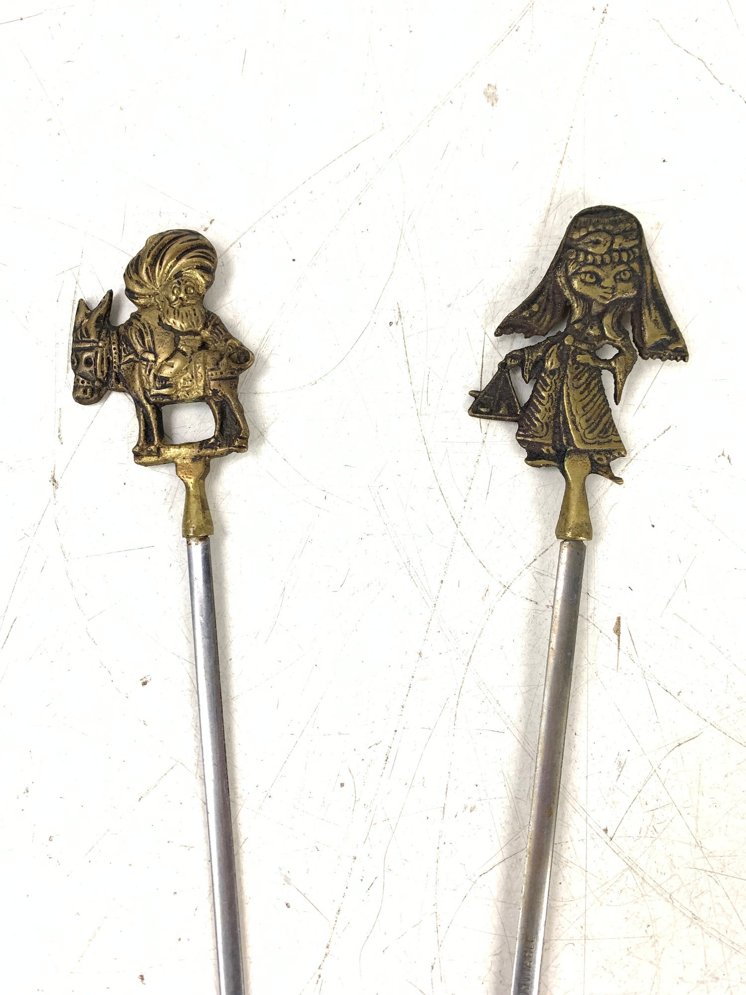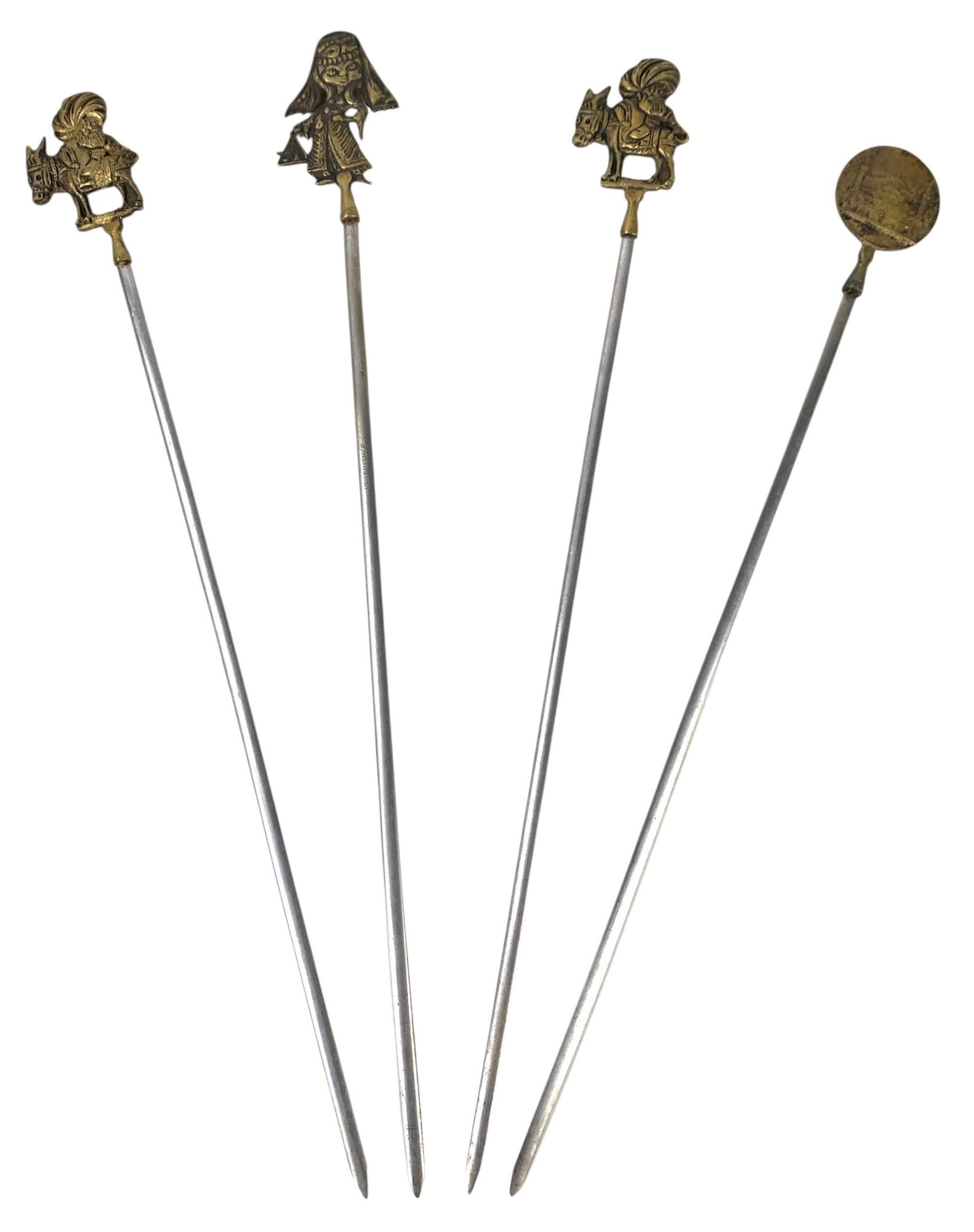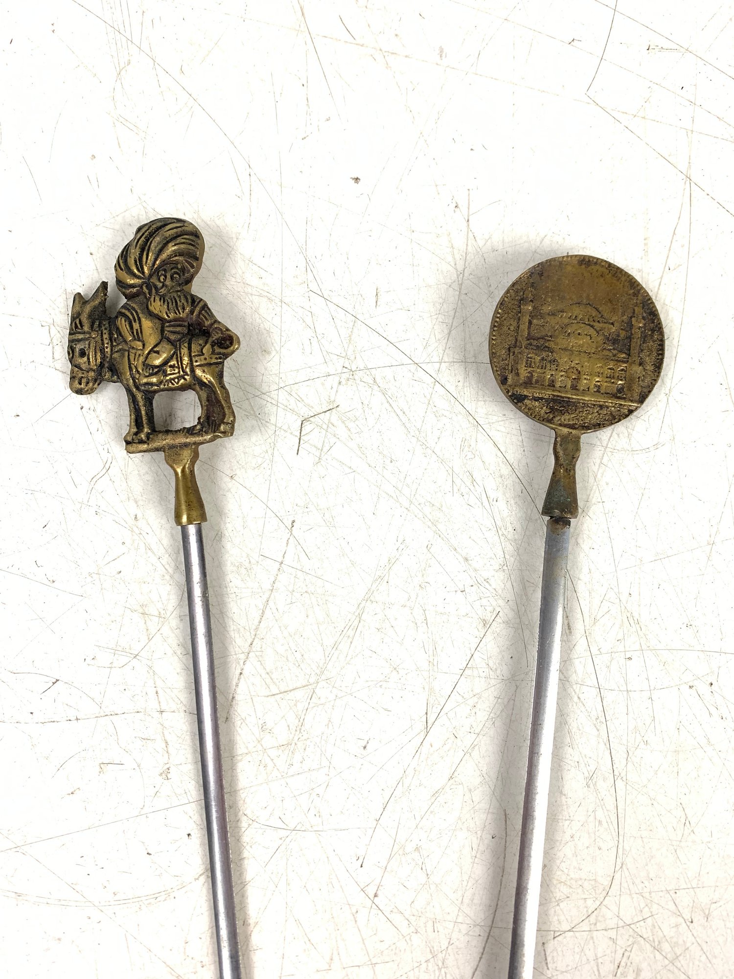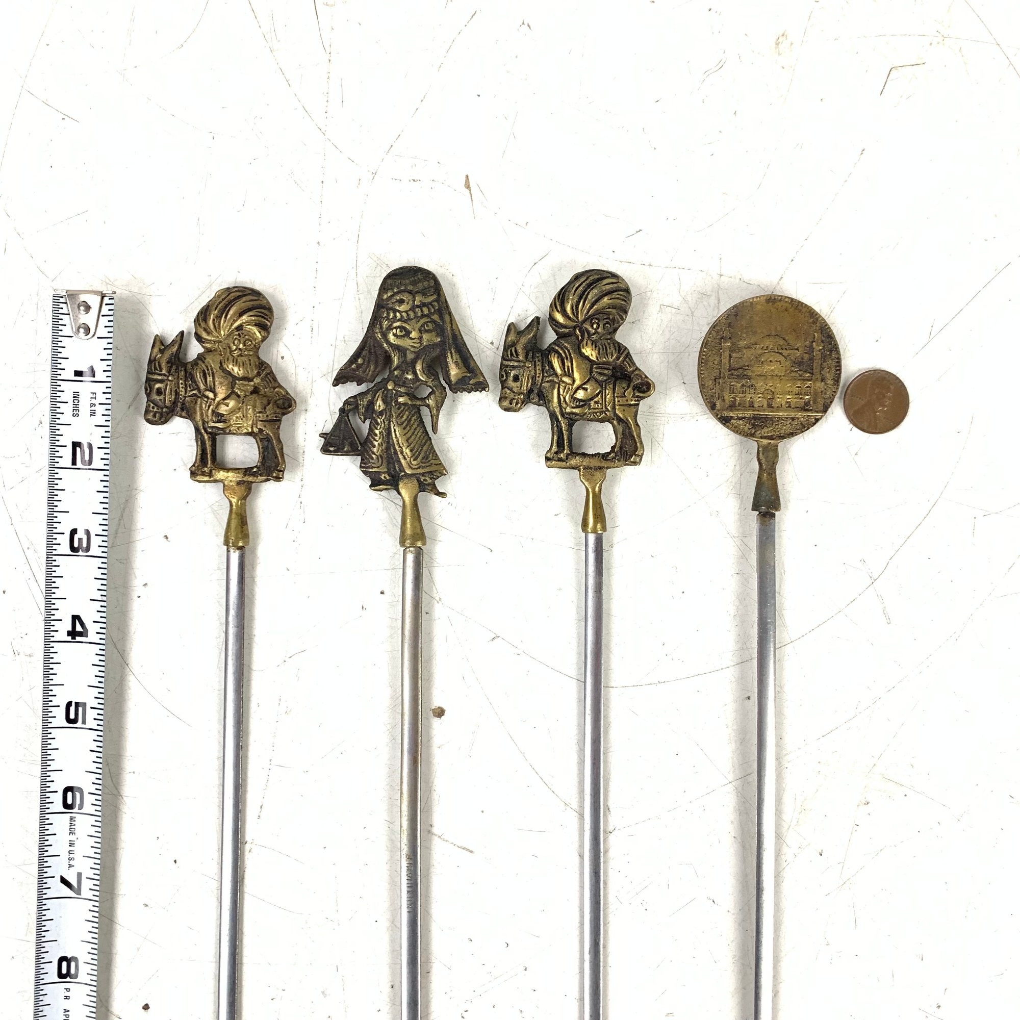 Features Turkish figures, animals and architecture on the brass handles.