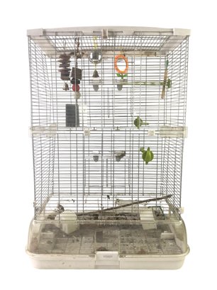 One side of the cage is slightly dented, needs to be refastened into the corner clip (see photo #5).