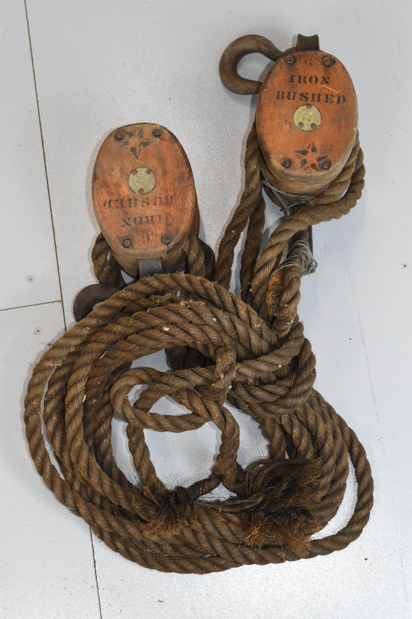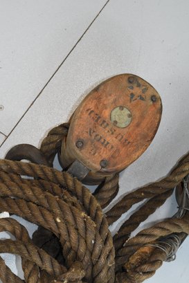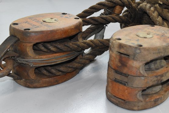 Antique Nautical Ship Sail Pulley Rigging Block - 2 Total