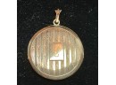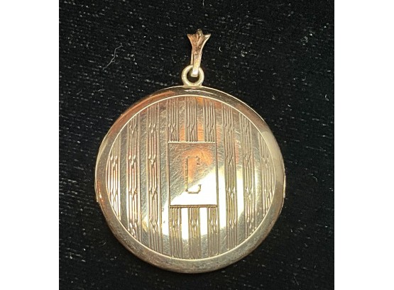 Hinged 14K gold locket, one side polished, the other engraved with C and engine turned.