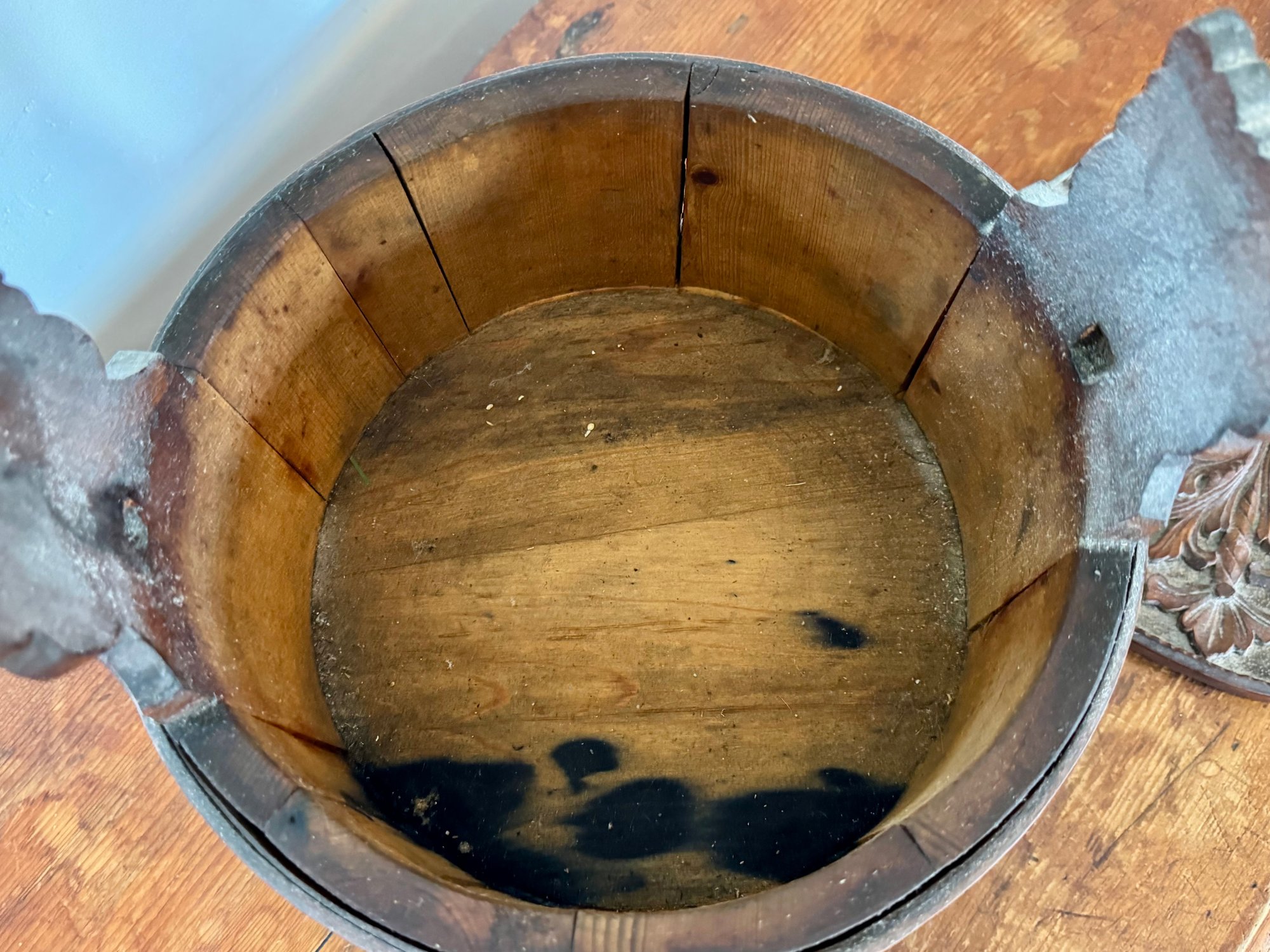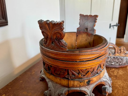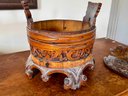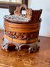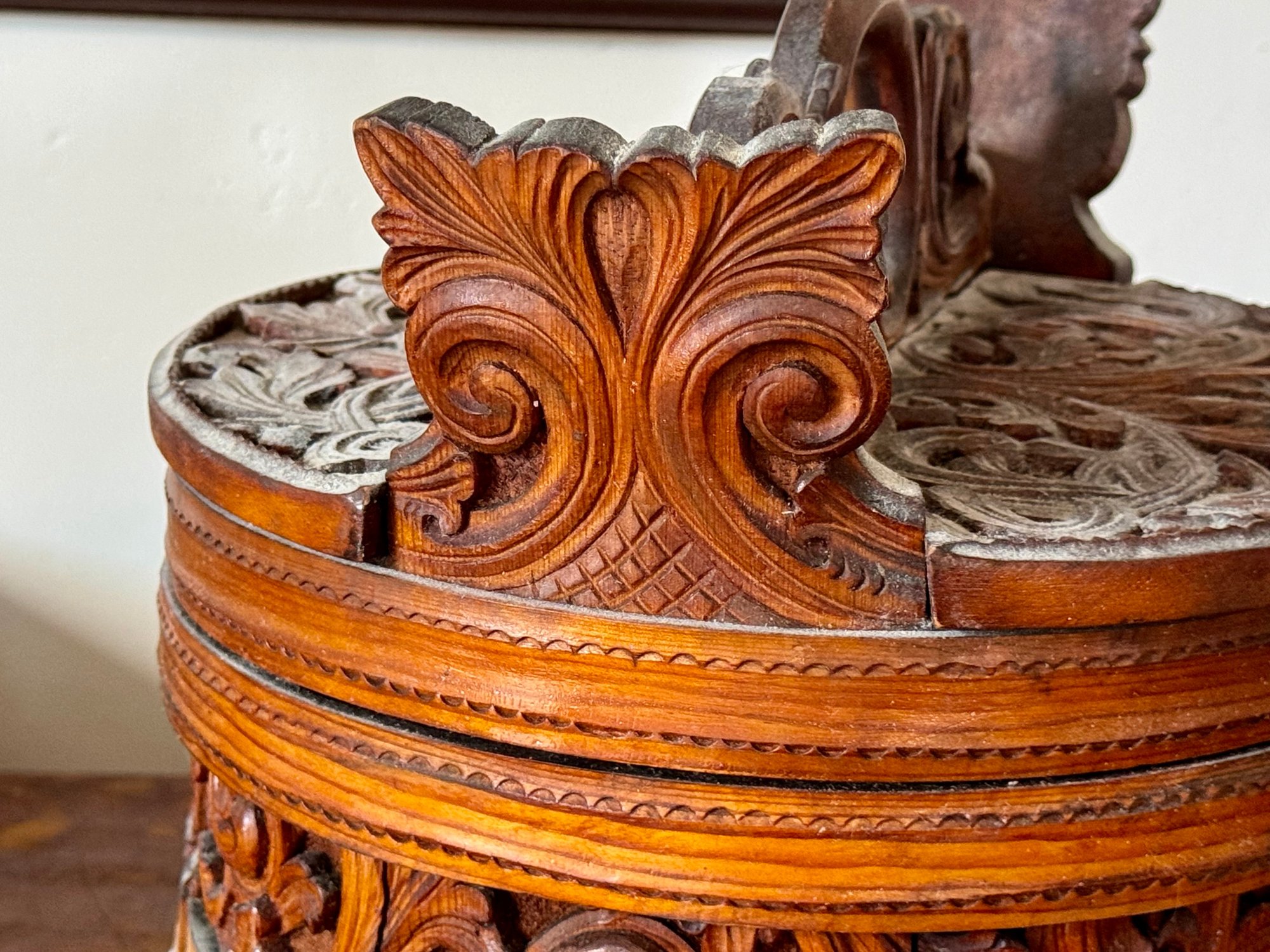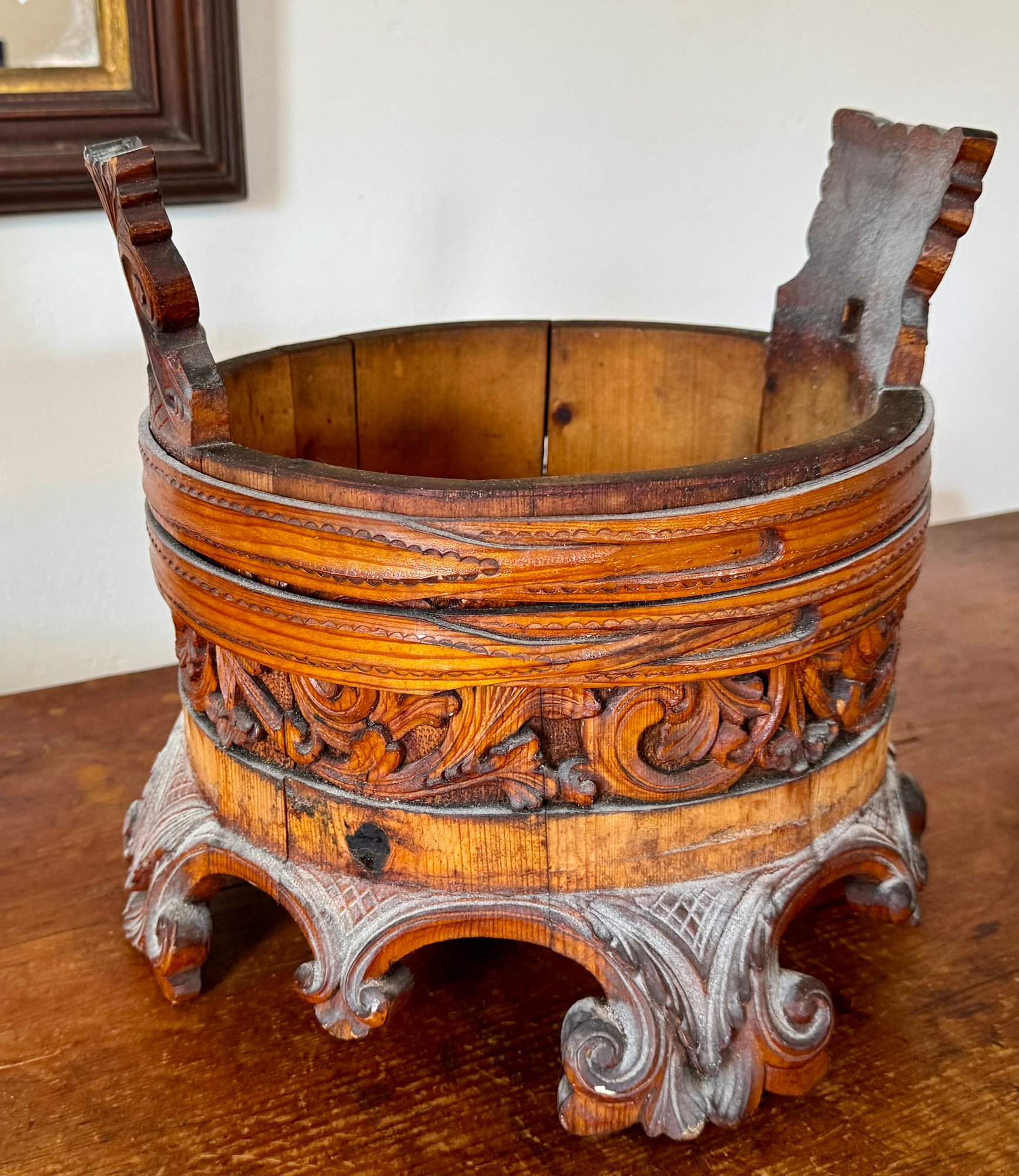 A 19th C Scandinavian, possibly Norwegian, carved wooden porringer with acanthus leaf and floral carvings. Could also be a butter box.