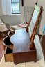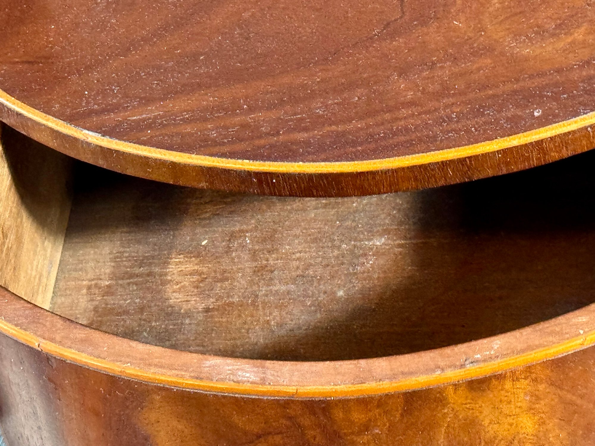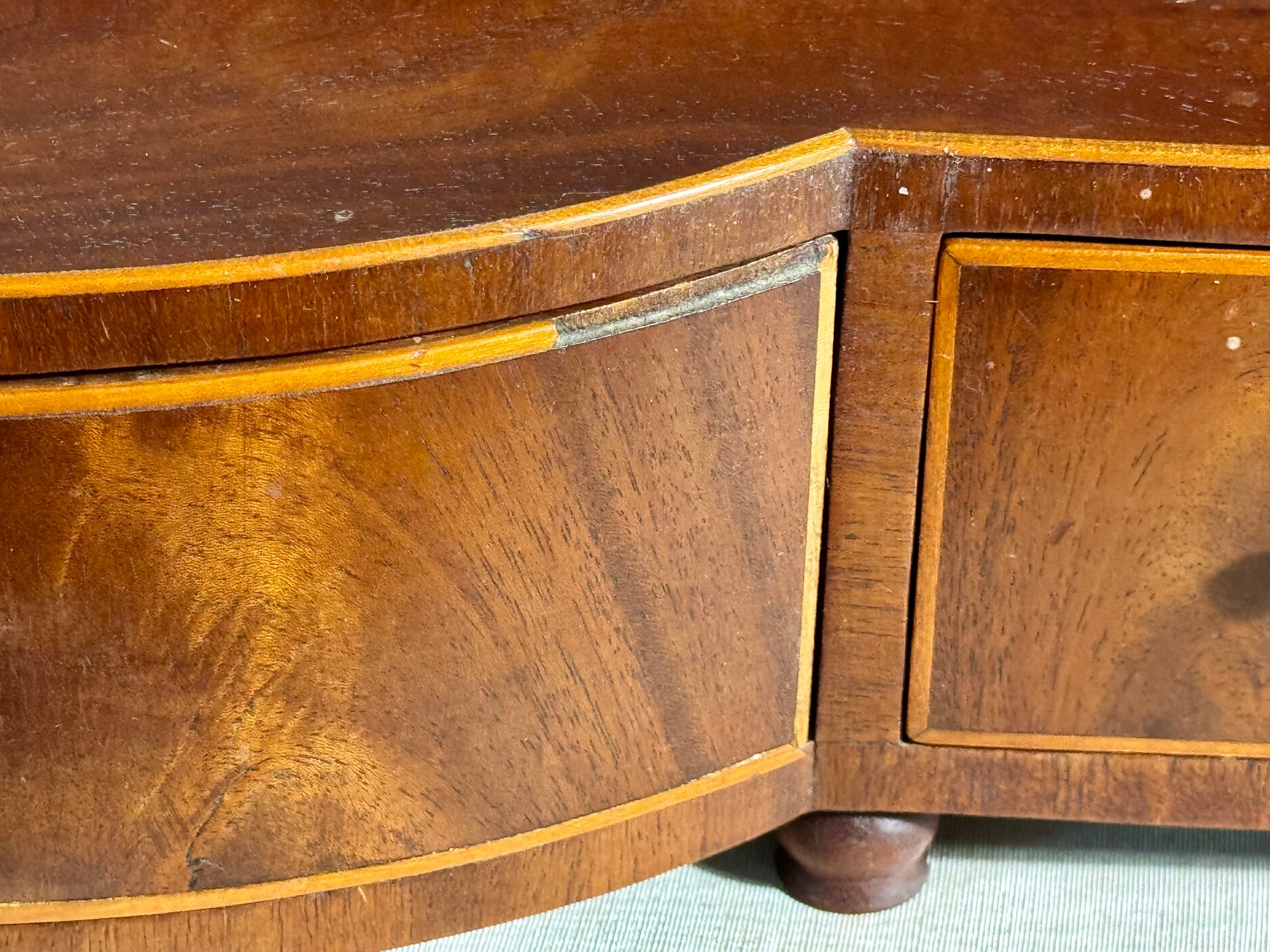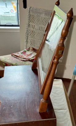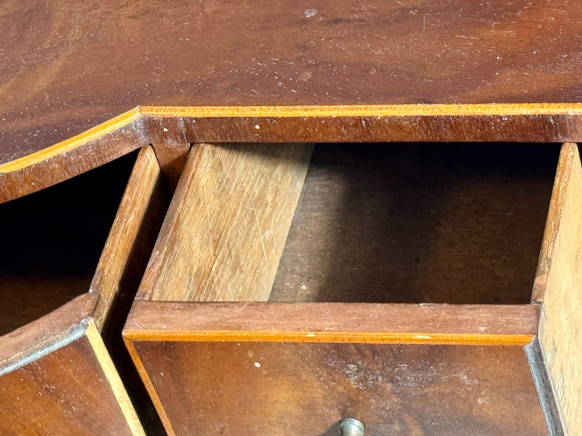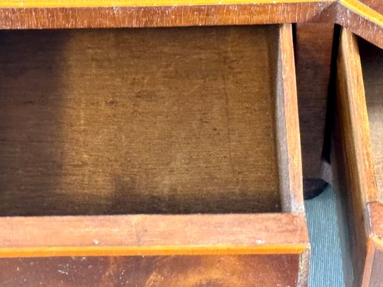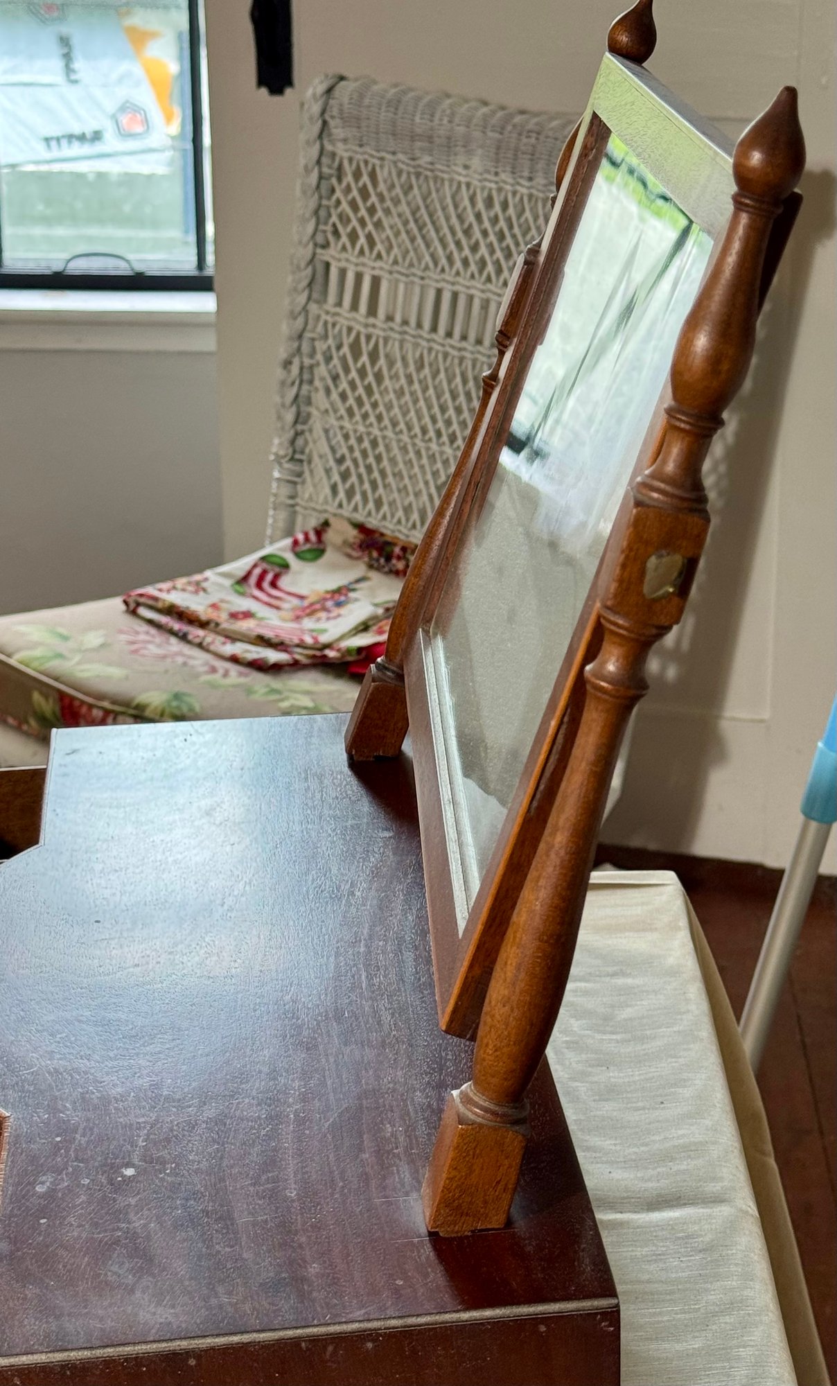 An antique American Federal shaving stand, a beautiful mahogany surface with a fine patina and white pine secondary on the trim, with three dovetailed drawers.