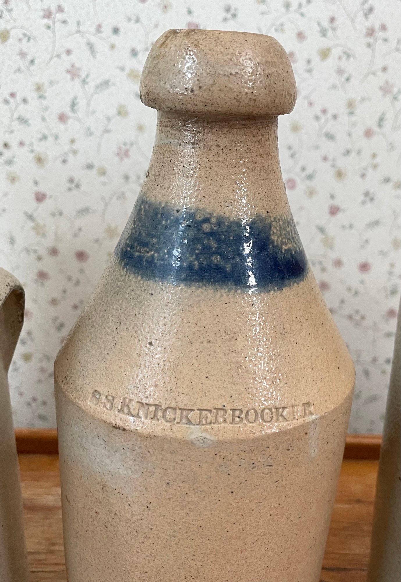 Condition: Wright crock with considerable chipping to rim, Knickerbocker with firing pop