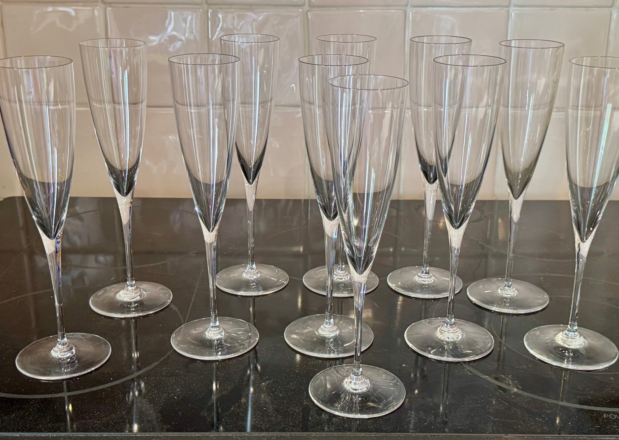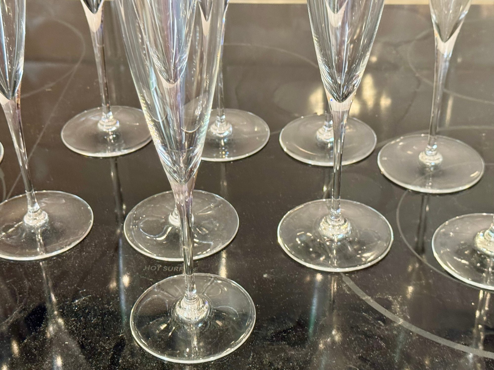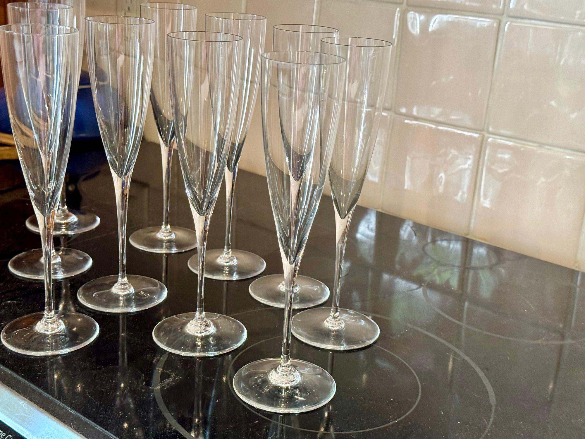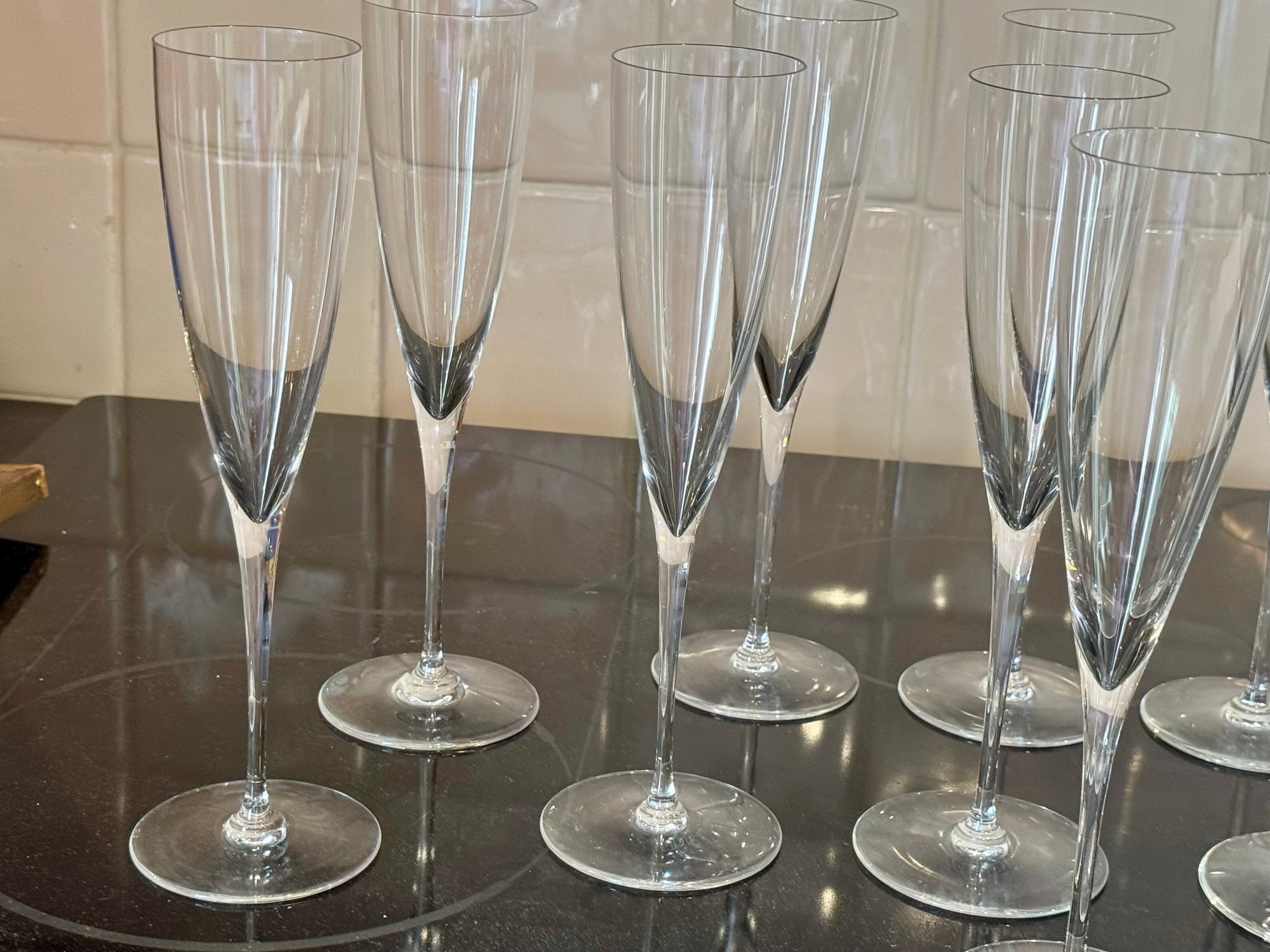 Eleven Baccarat signed champagne flutes.