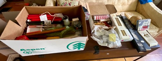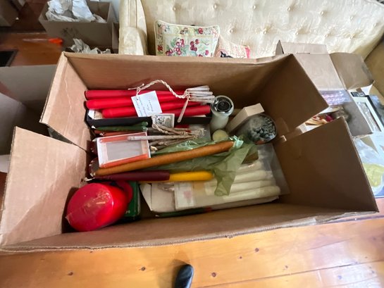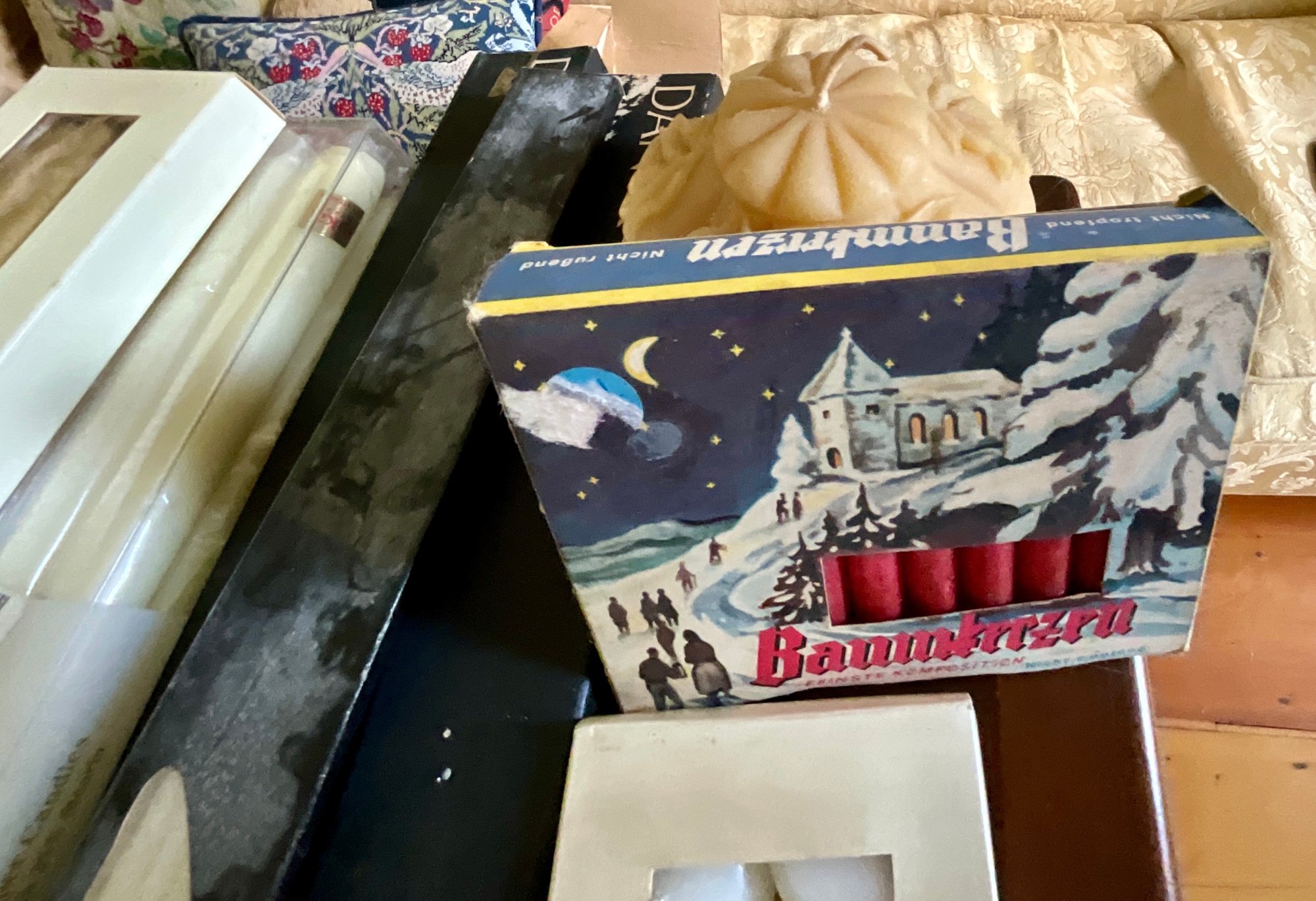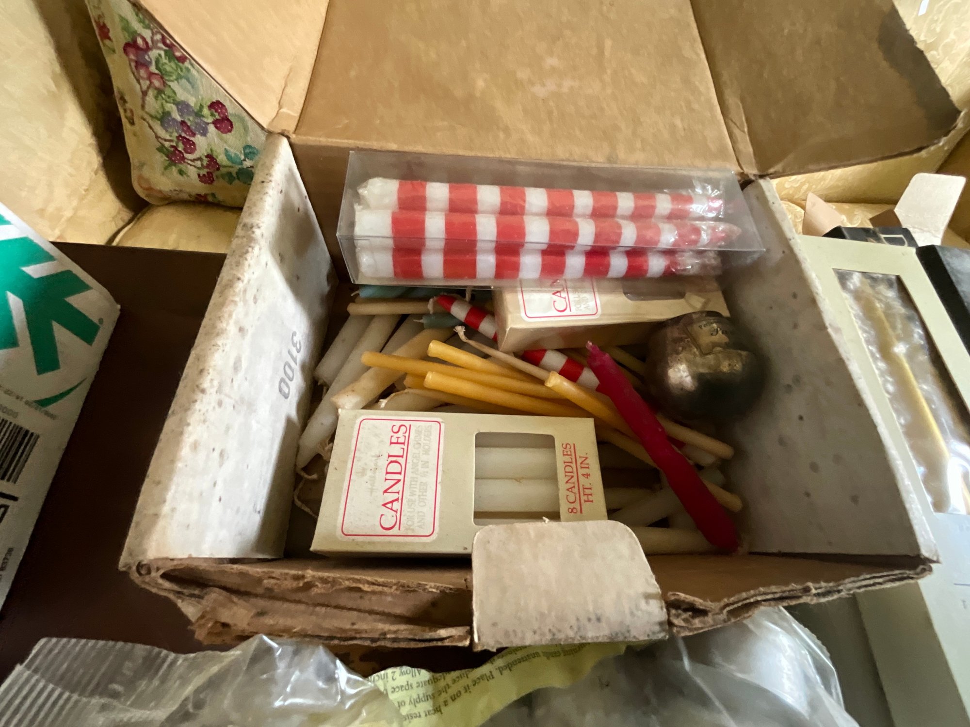 A collection of candles, including: gold taper candles, Danish tapers, floating candles, candy cane candles and more.