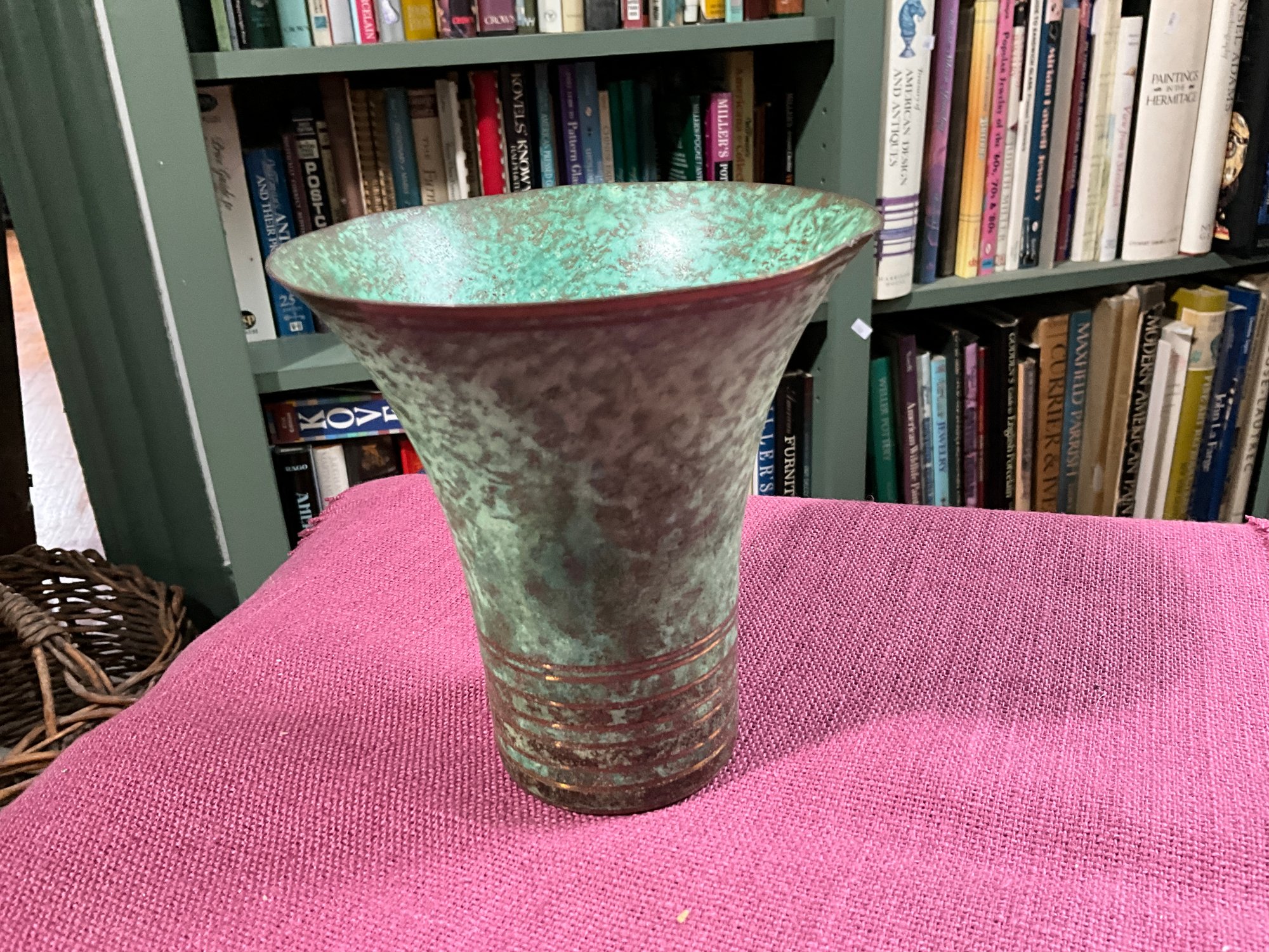 A signed Carl Sorensen bronze patinated metal vase.