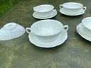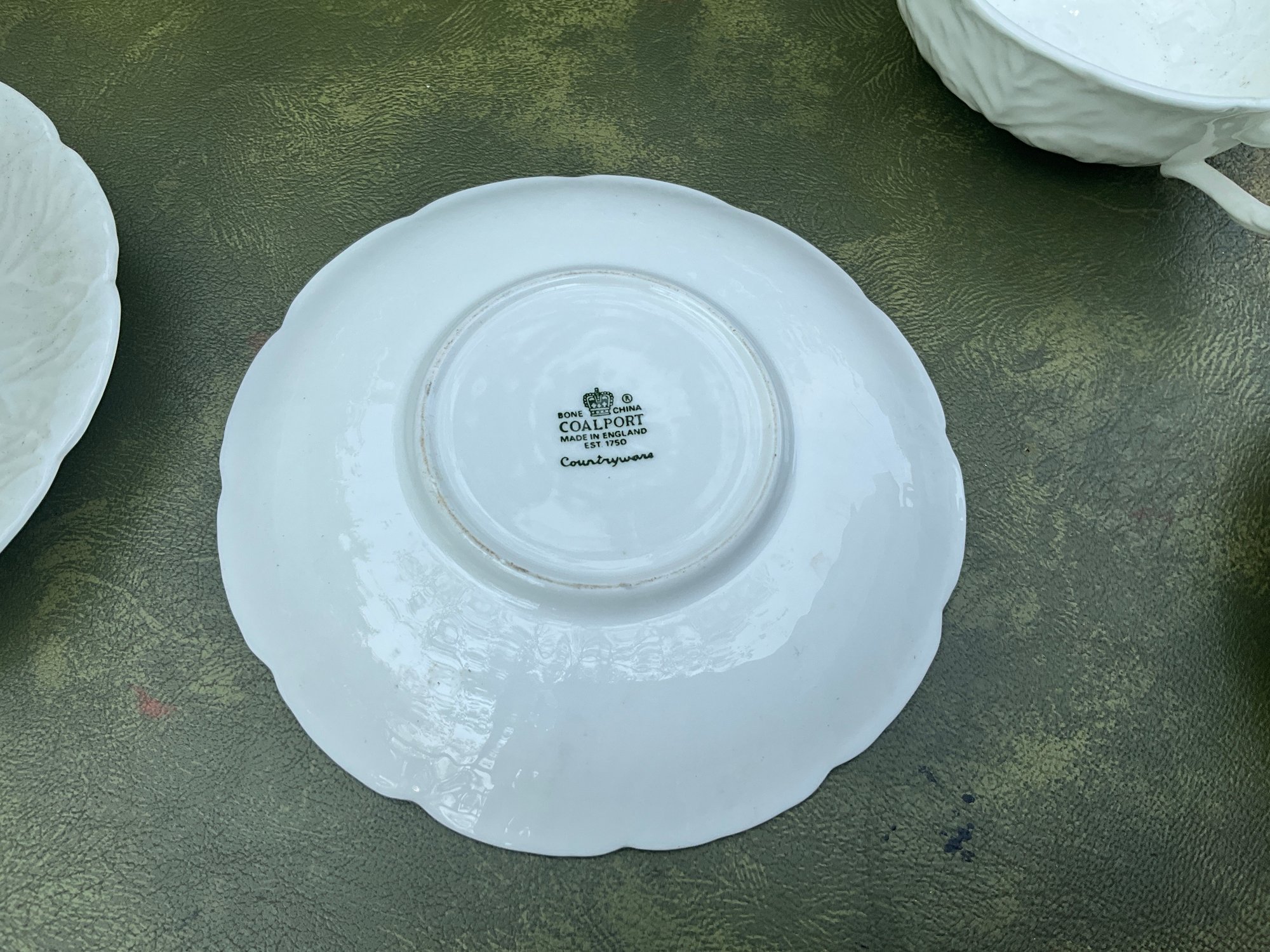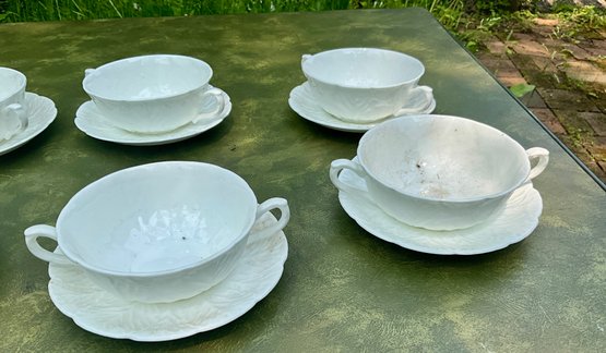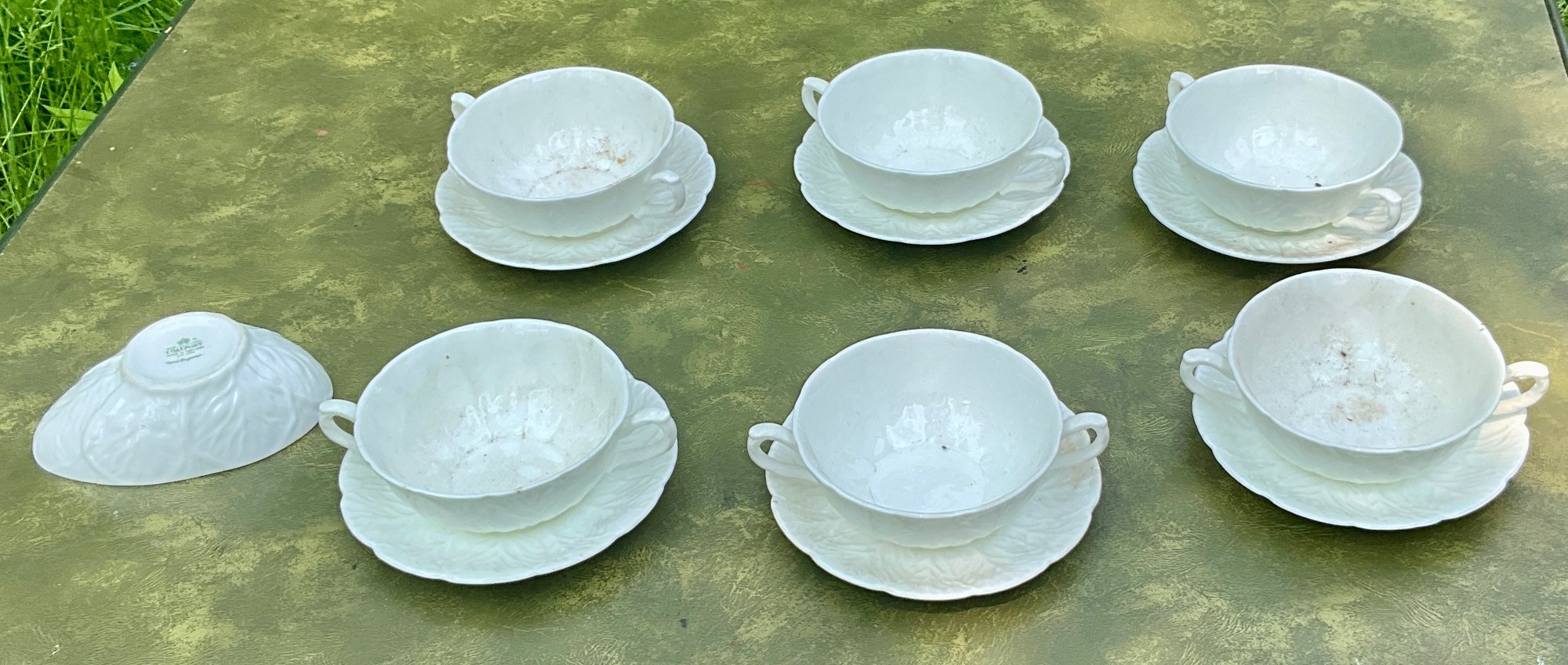 A set of six Coalport Cabbage Leaf Countryware double handled soup bowls with under plates.