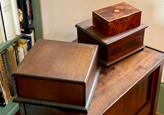 Four small trinket and storage boxes, one with a slot opening in the bottom.
