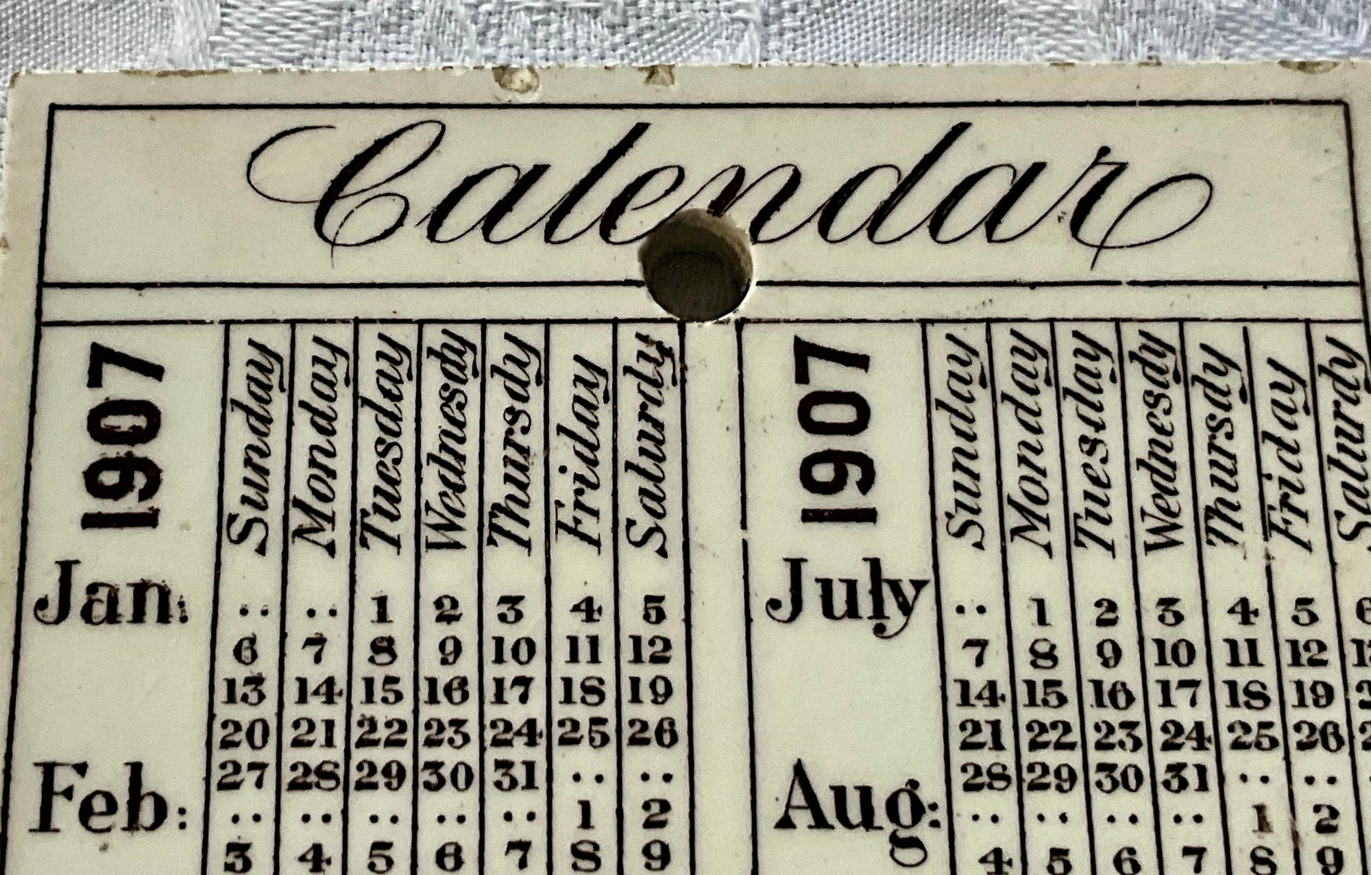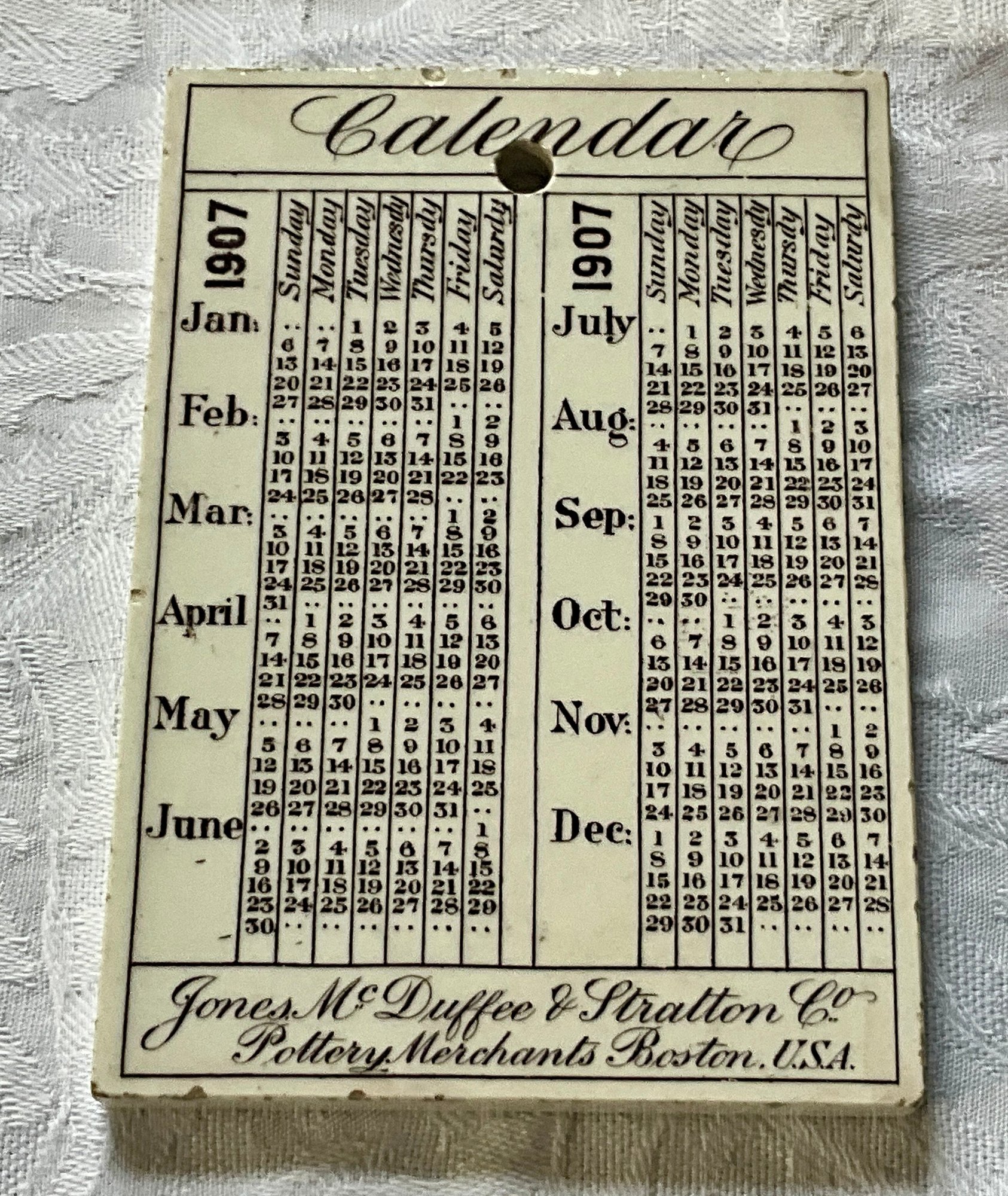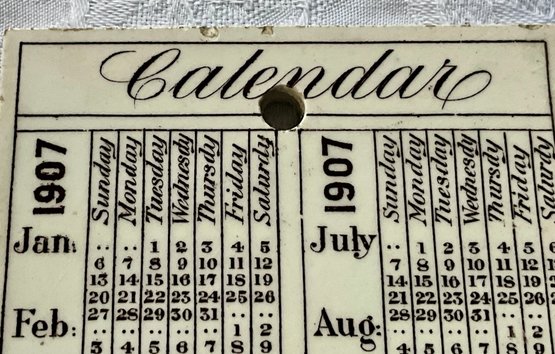 An antique pottery tile, Harvard Stadium 1907 calendar, Jones McDuffee Stratton Co. Pottery Merchants Boston MA.