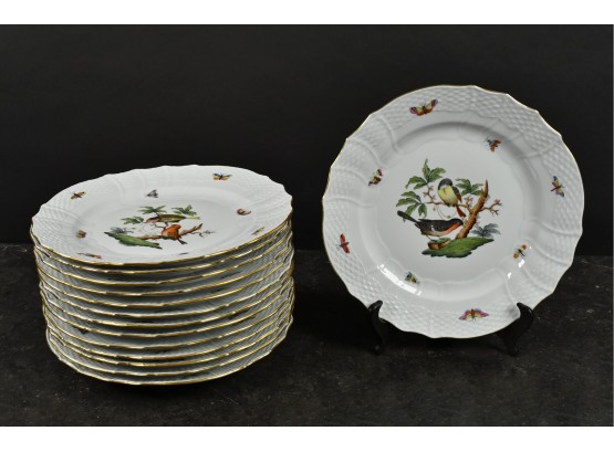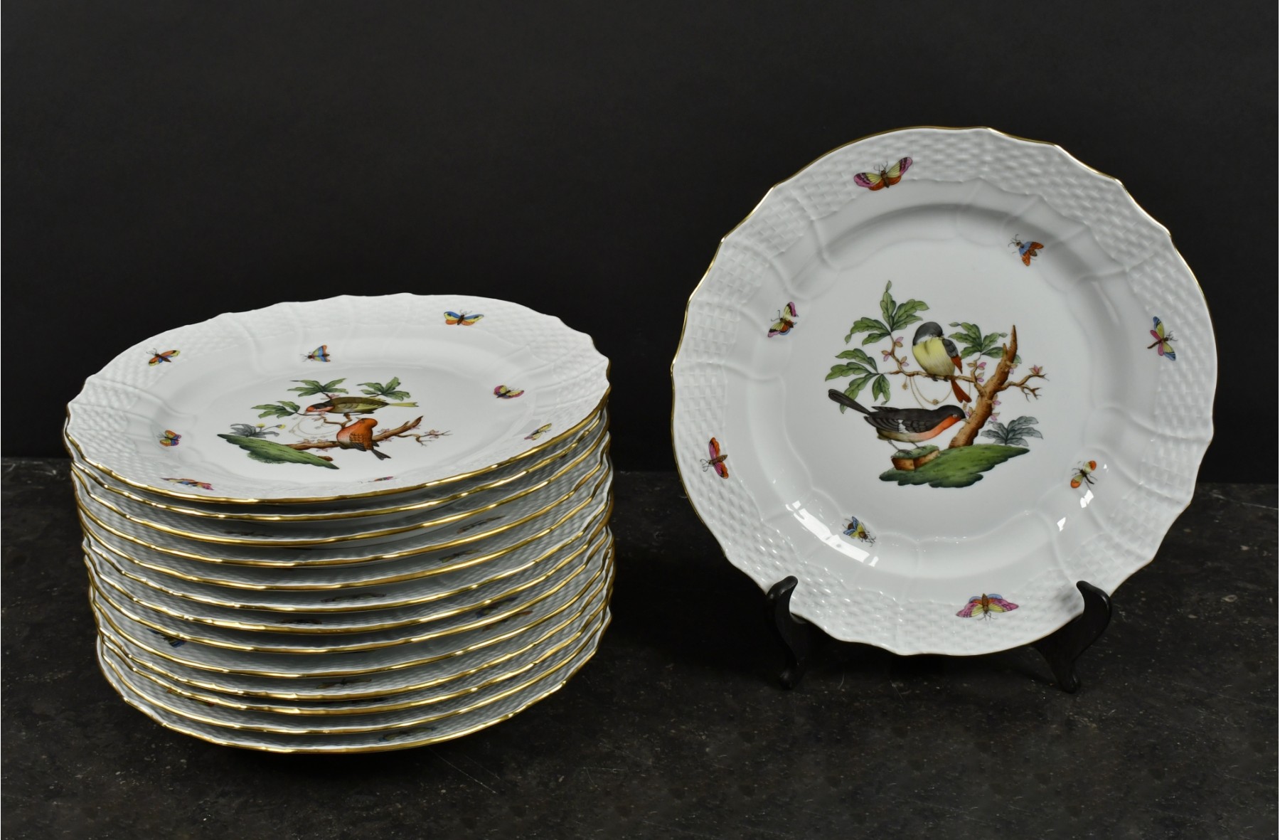 A set of fourteen Herend dinner plates in Rothschild Bird.