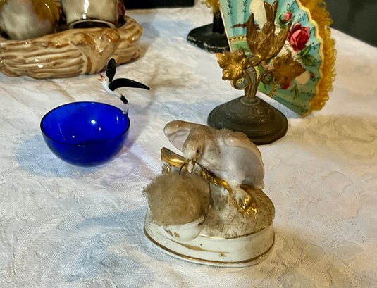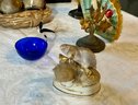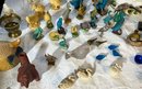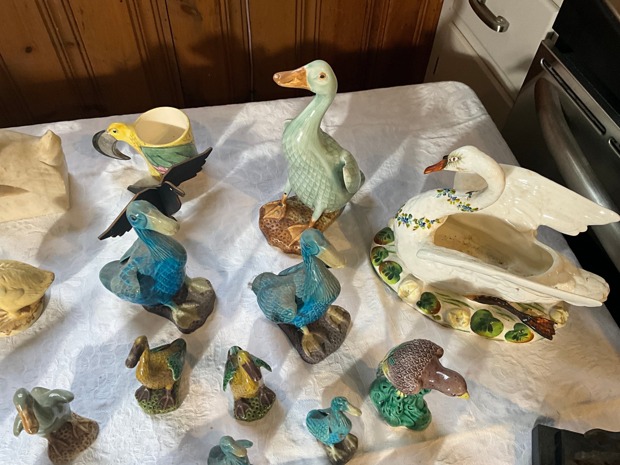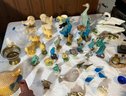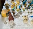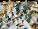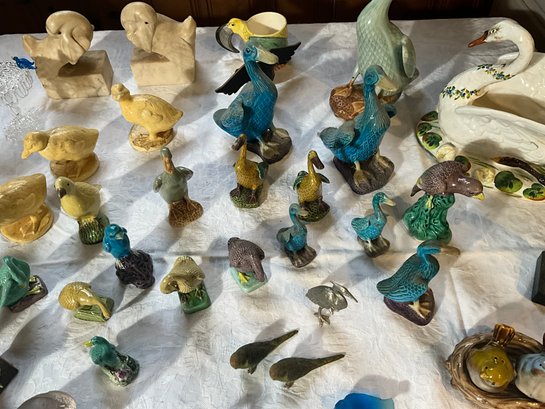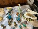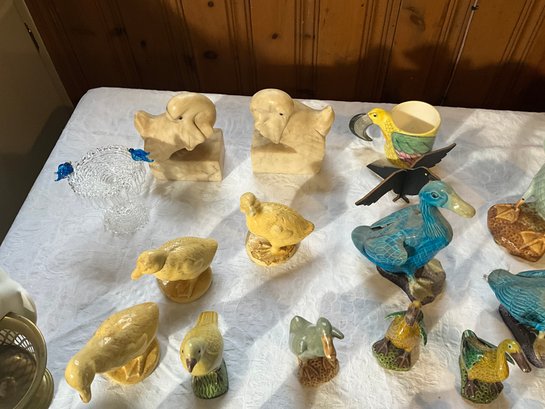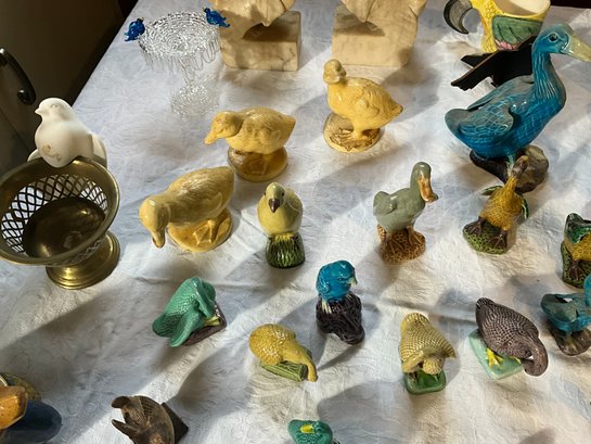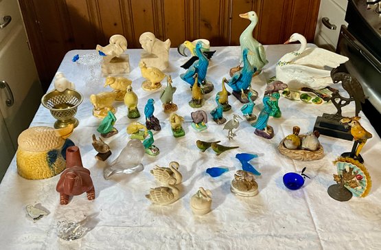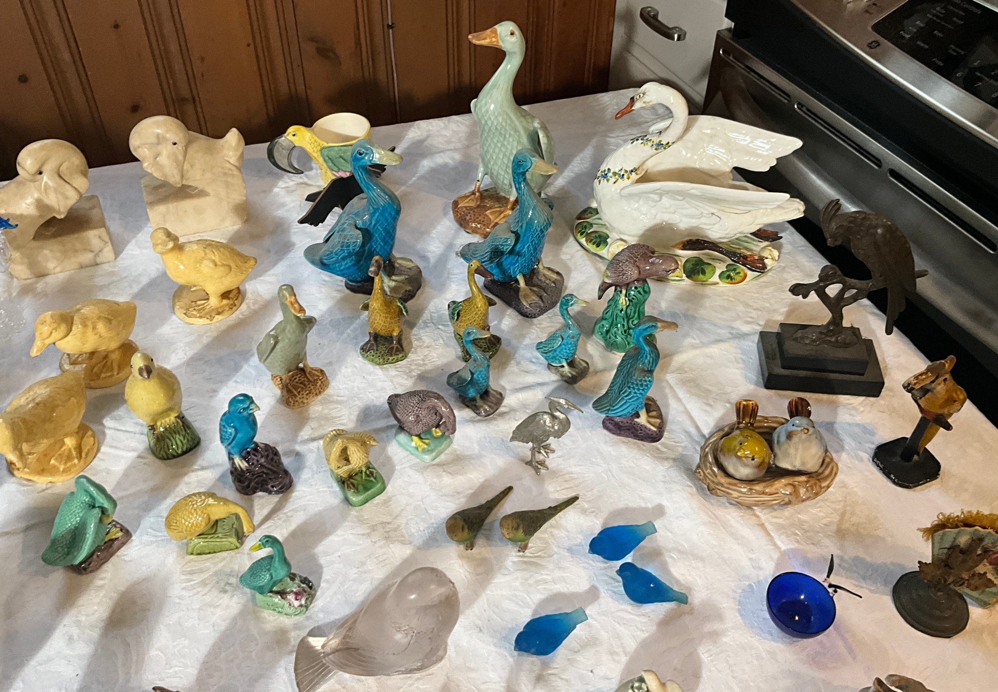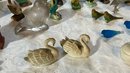 A collection of glass, china and metal bird figurines including Lalique and Lennox. 30 pcs.
