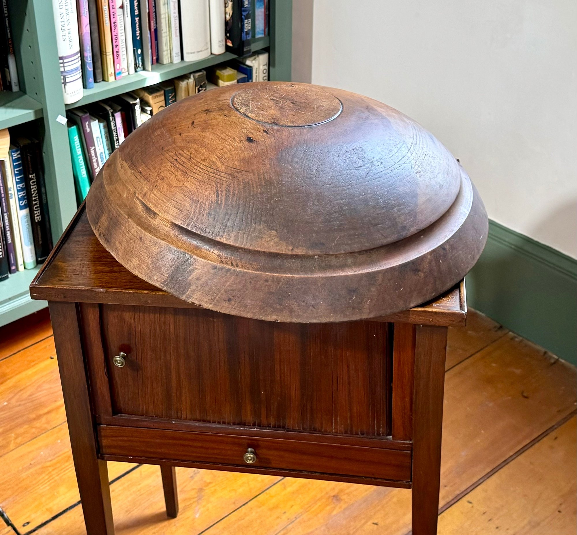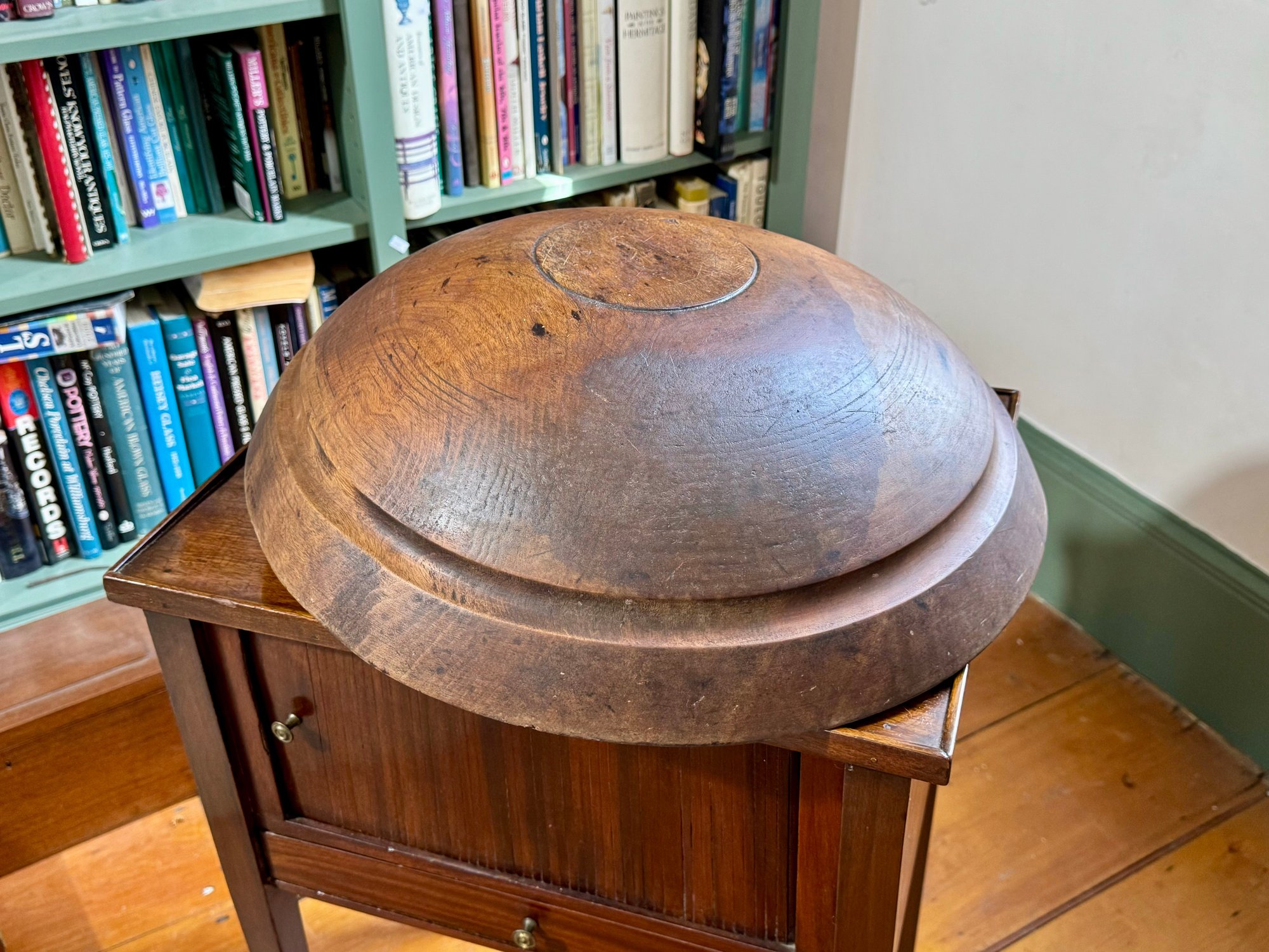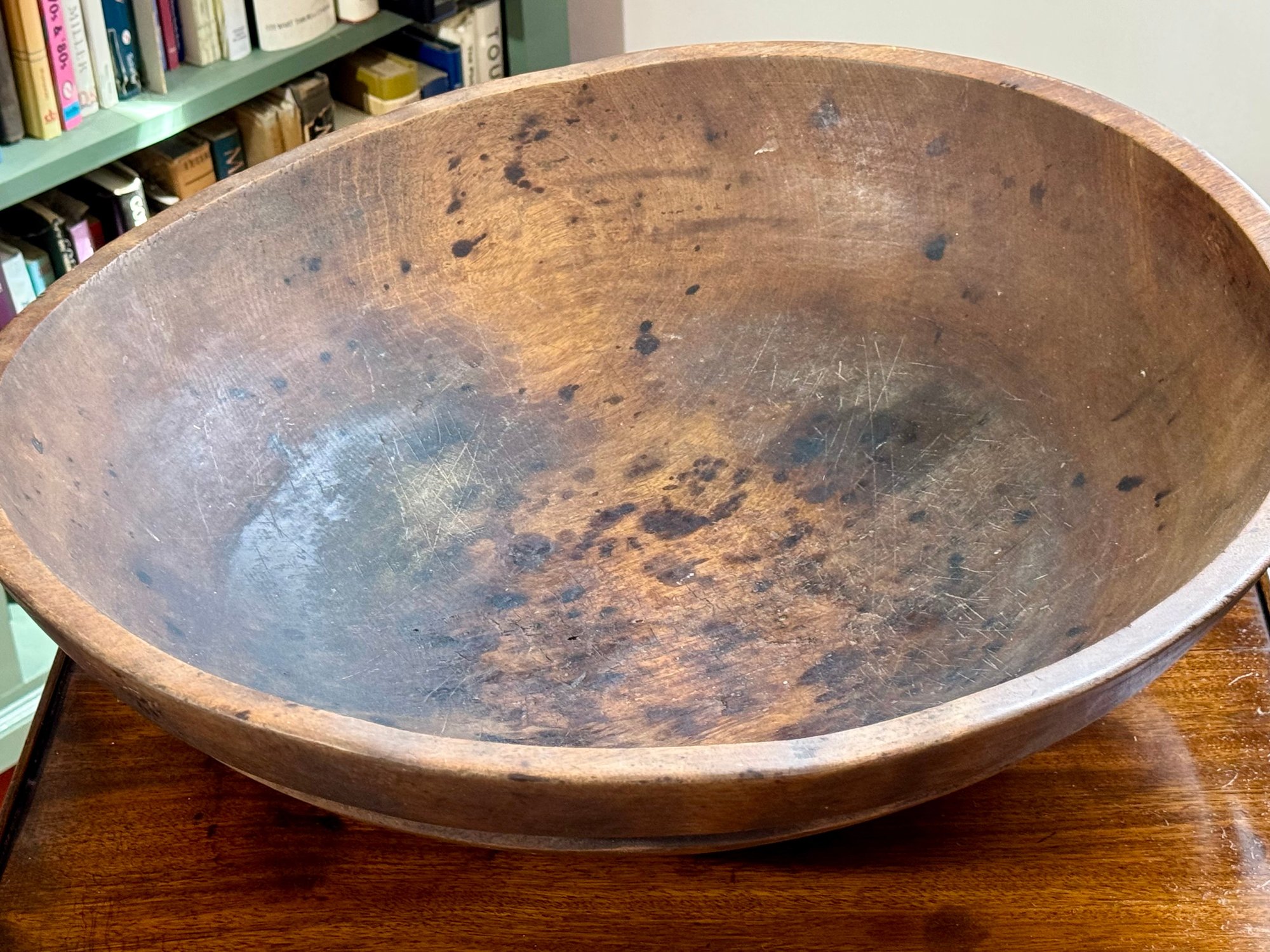 A nice large turned wooden bowl.
