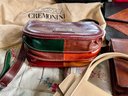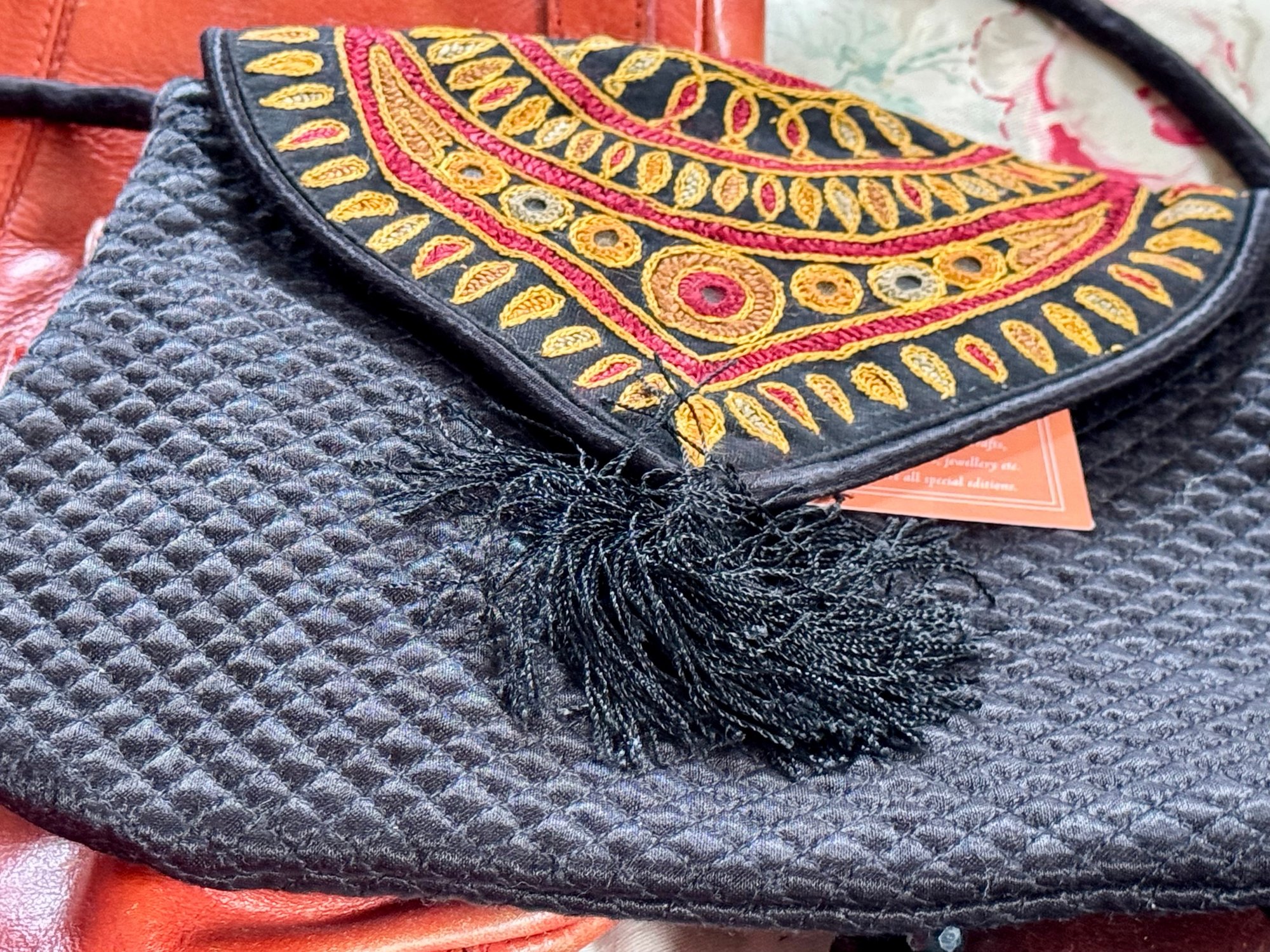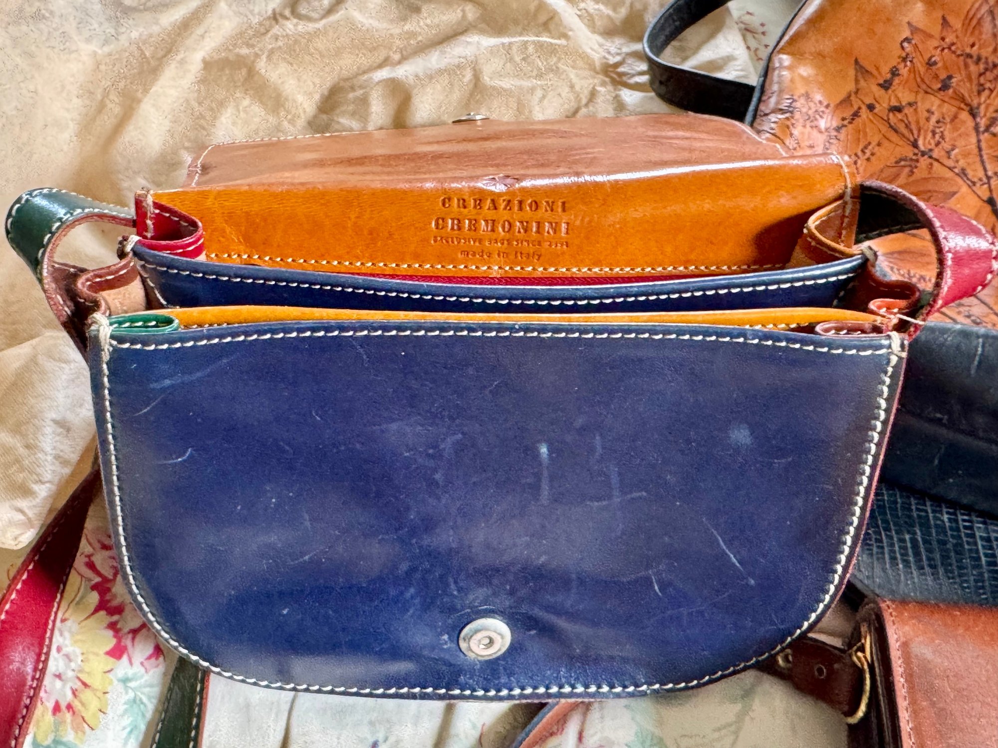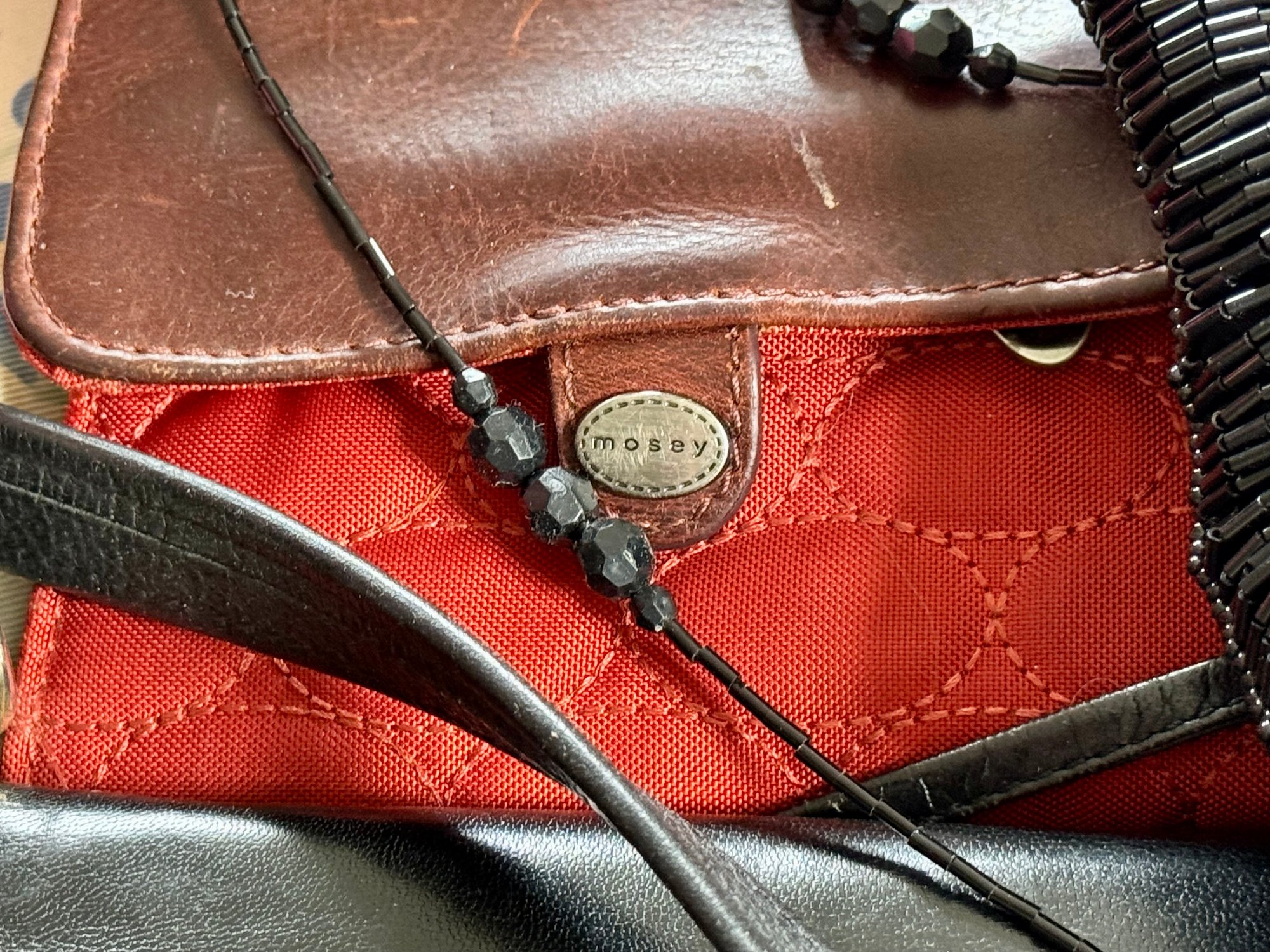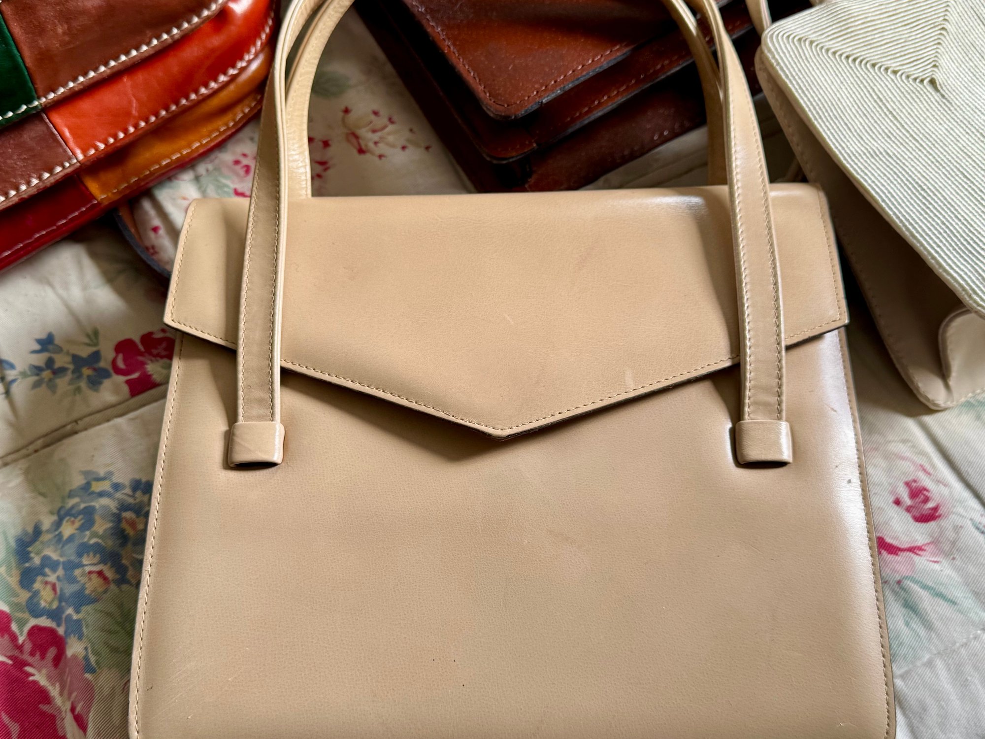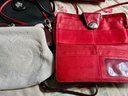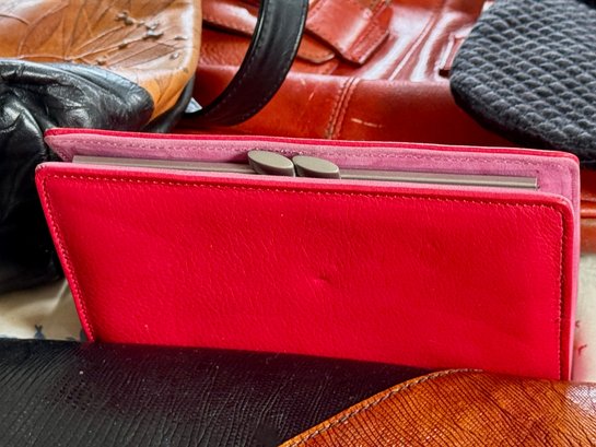 A nice variety of twenty four hand bags, purses and clutches, evening purses with beading, leather Italian hand bags, red leather clutches and more.