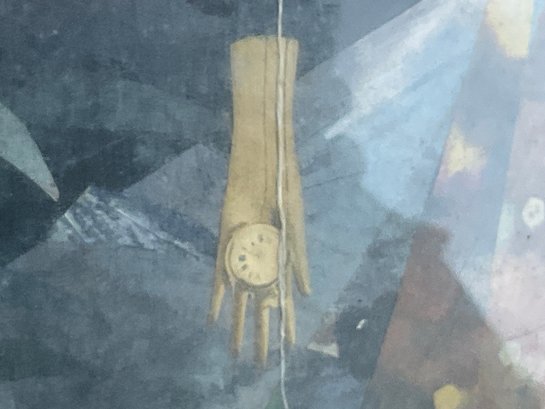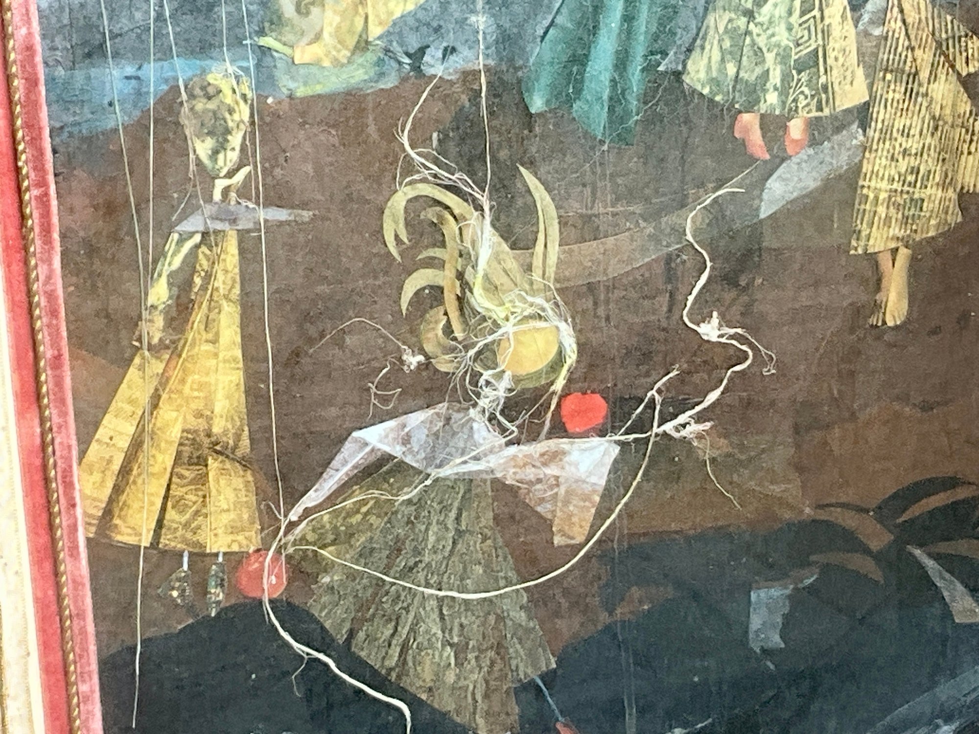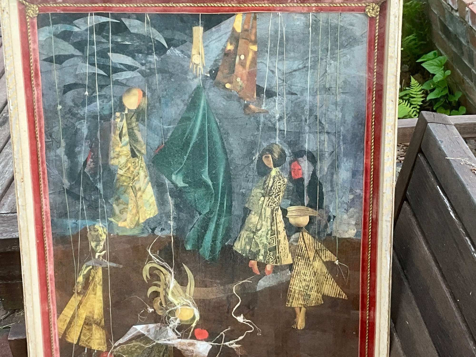 A mixed media collage picture, signed lower right Len.