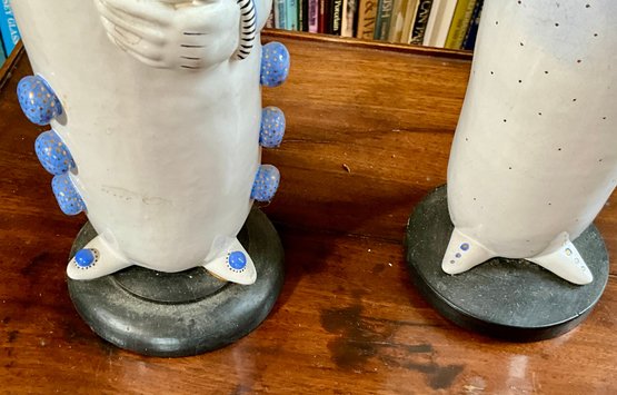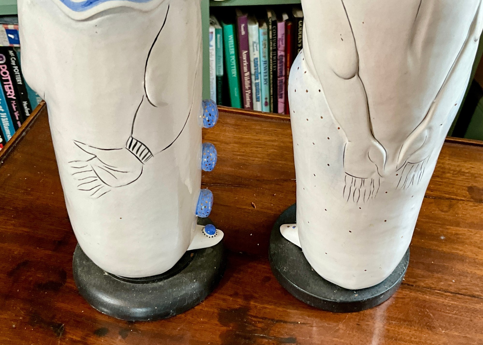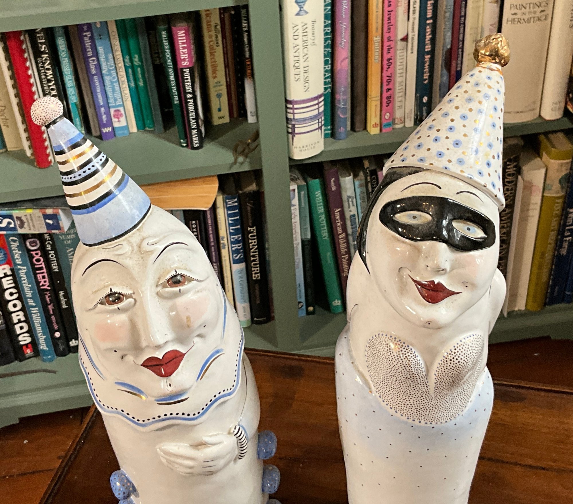 Two contemporary clown figures on wood bases.