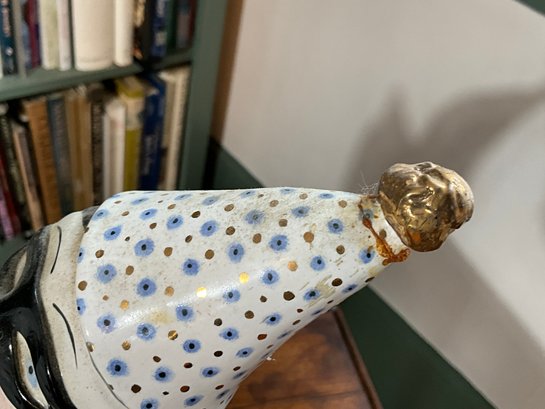 Condition: the woman has a repair on her hat