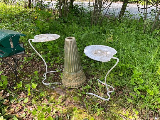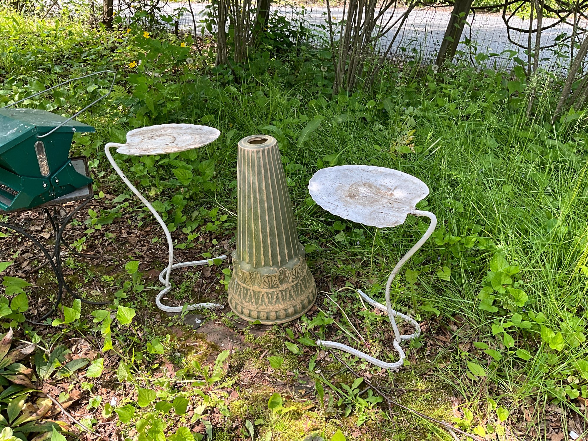 Condition: bird bath base is chipped, all weathered from outdoor exposure