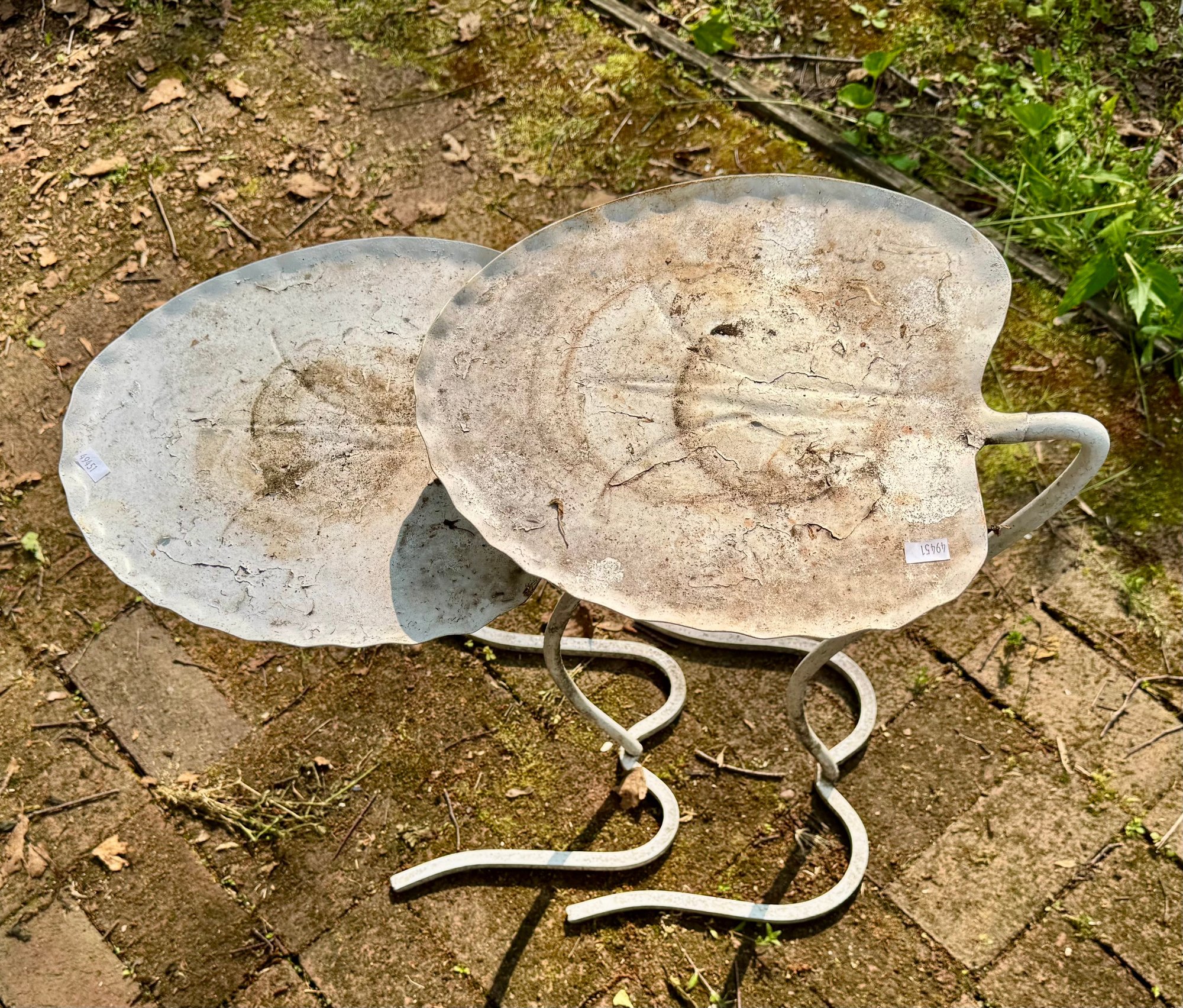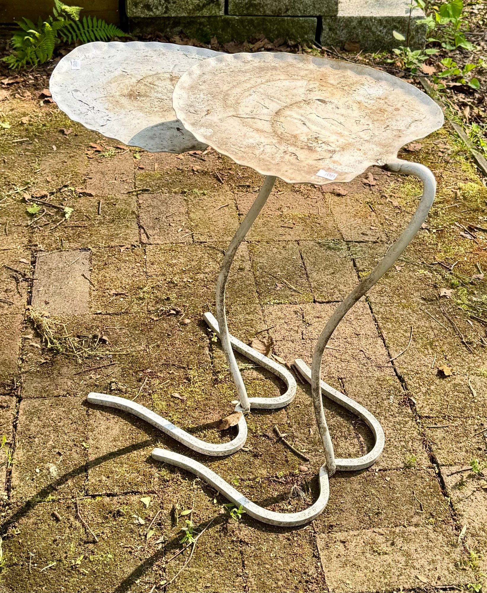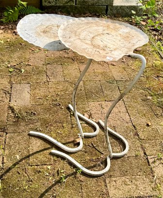 A pair of Saltarini style Lily pad/ Lotus leaf white metal nesting tables.