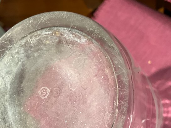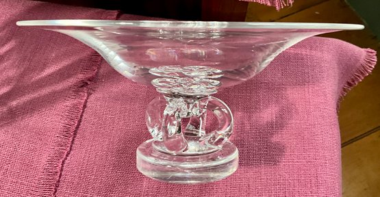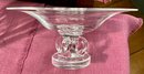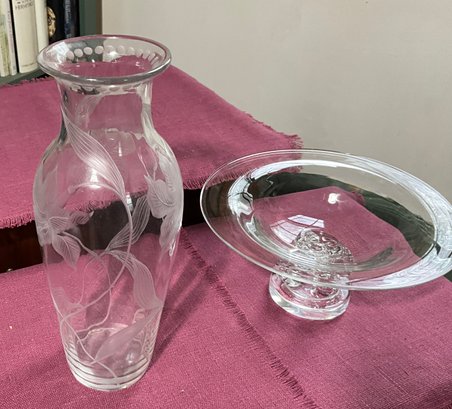 A Steuben marked vase with etched floral design 12” H, and a Steuben signed compote 4.5” H x 10” D.