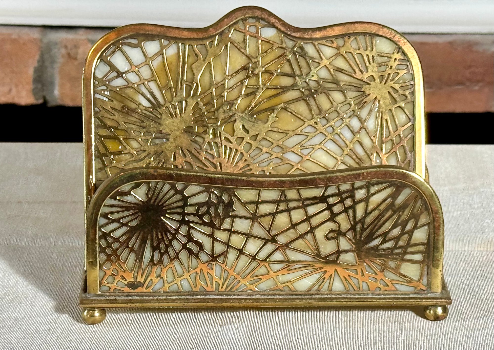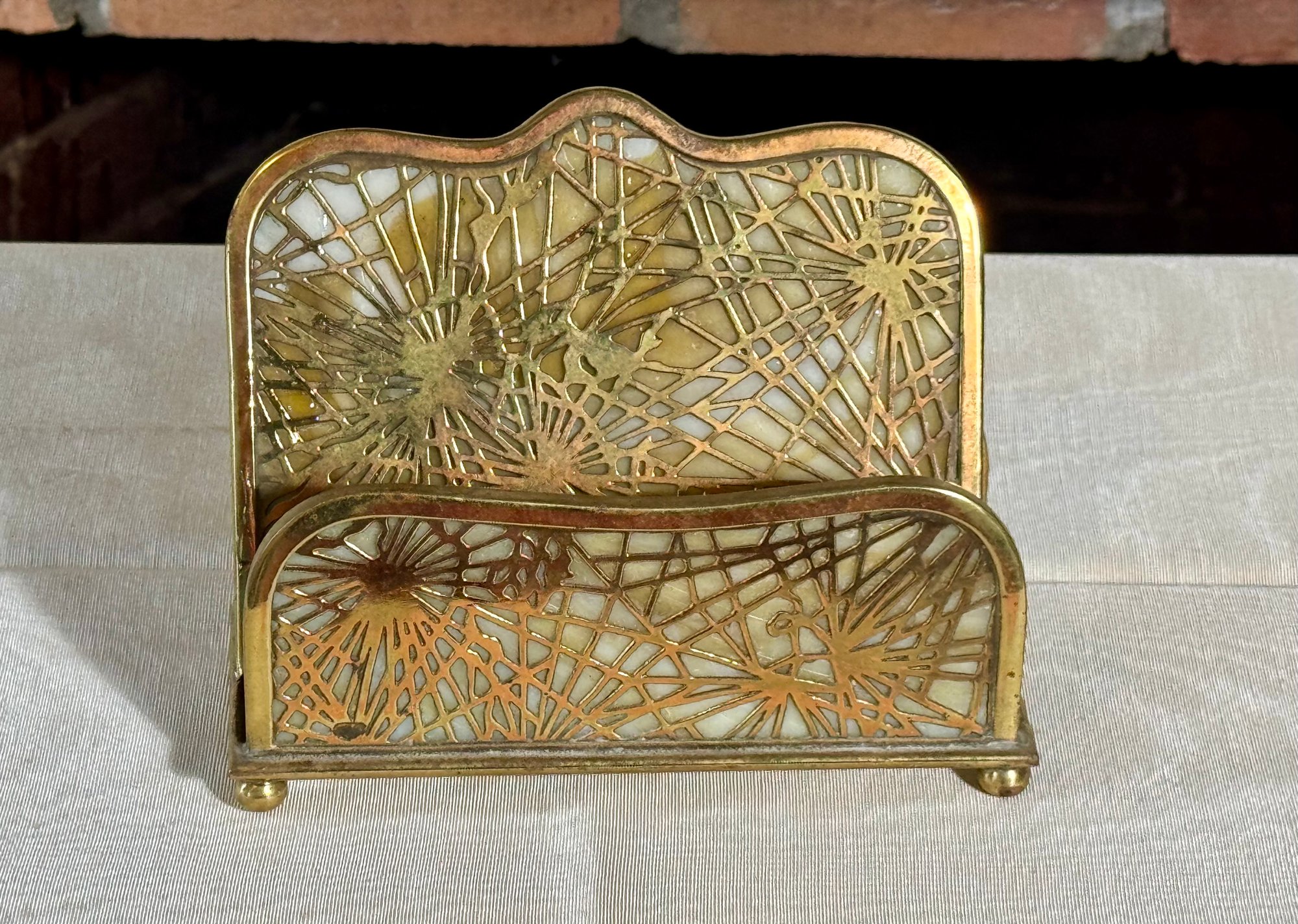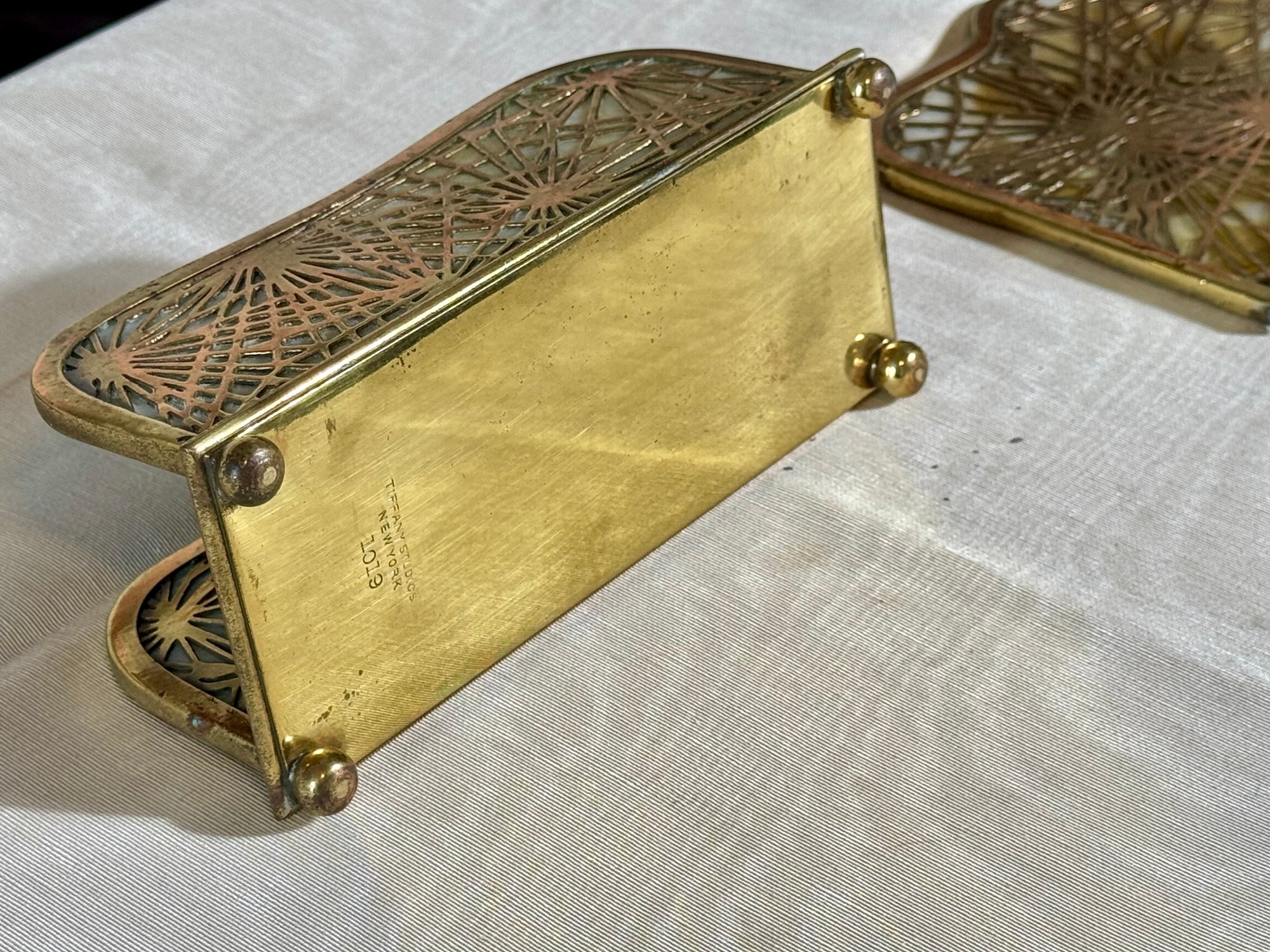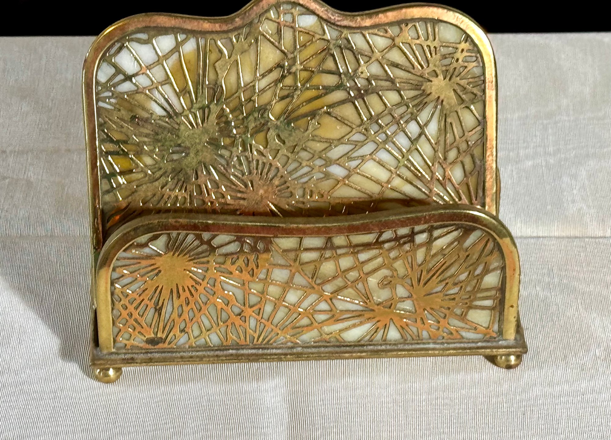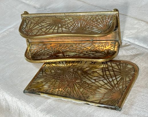 A Tiffany Studios New York letter holder with pine needle design, marked Tiffany Studios New York 1019.