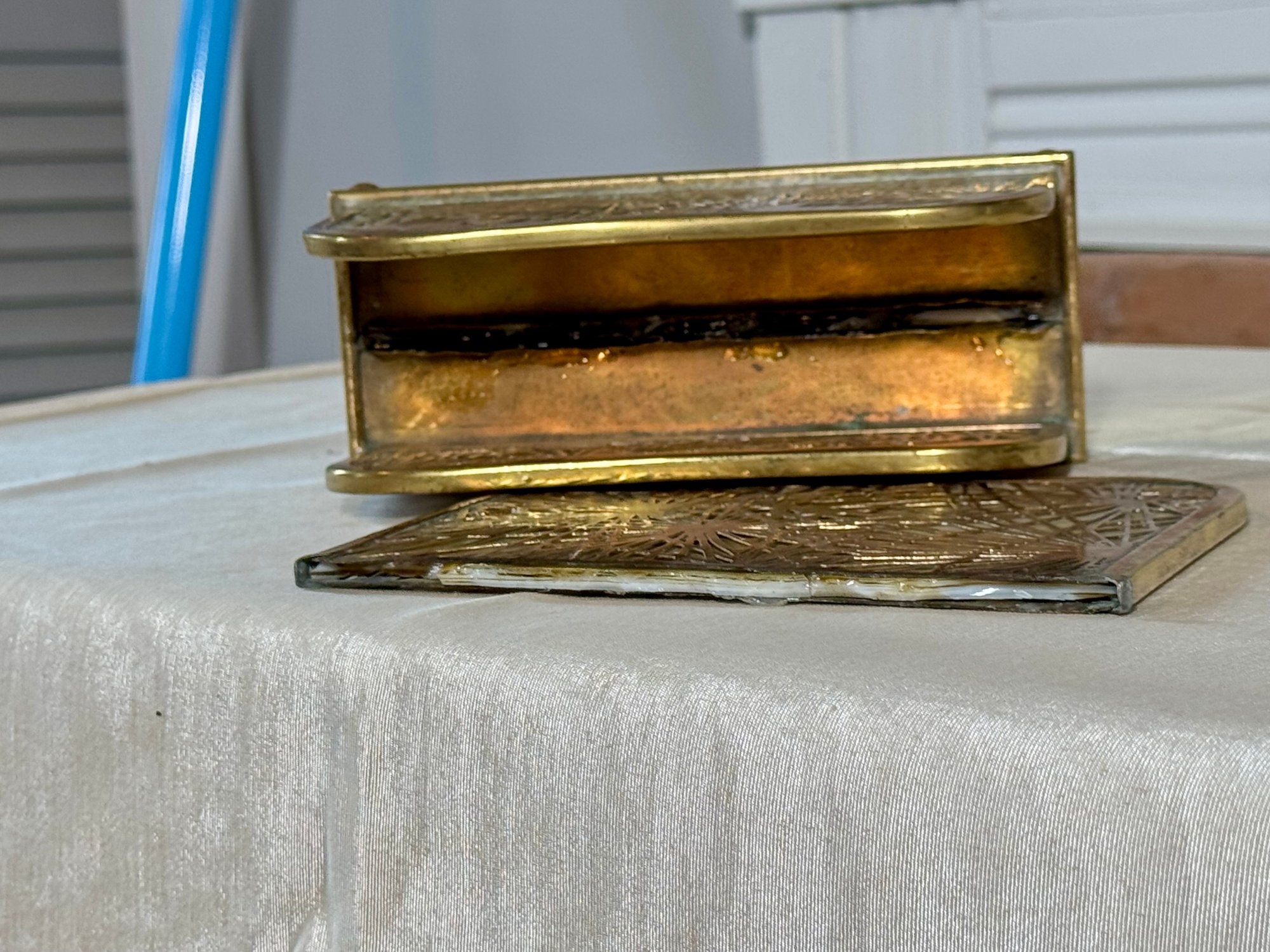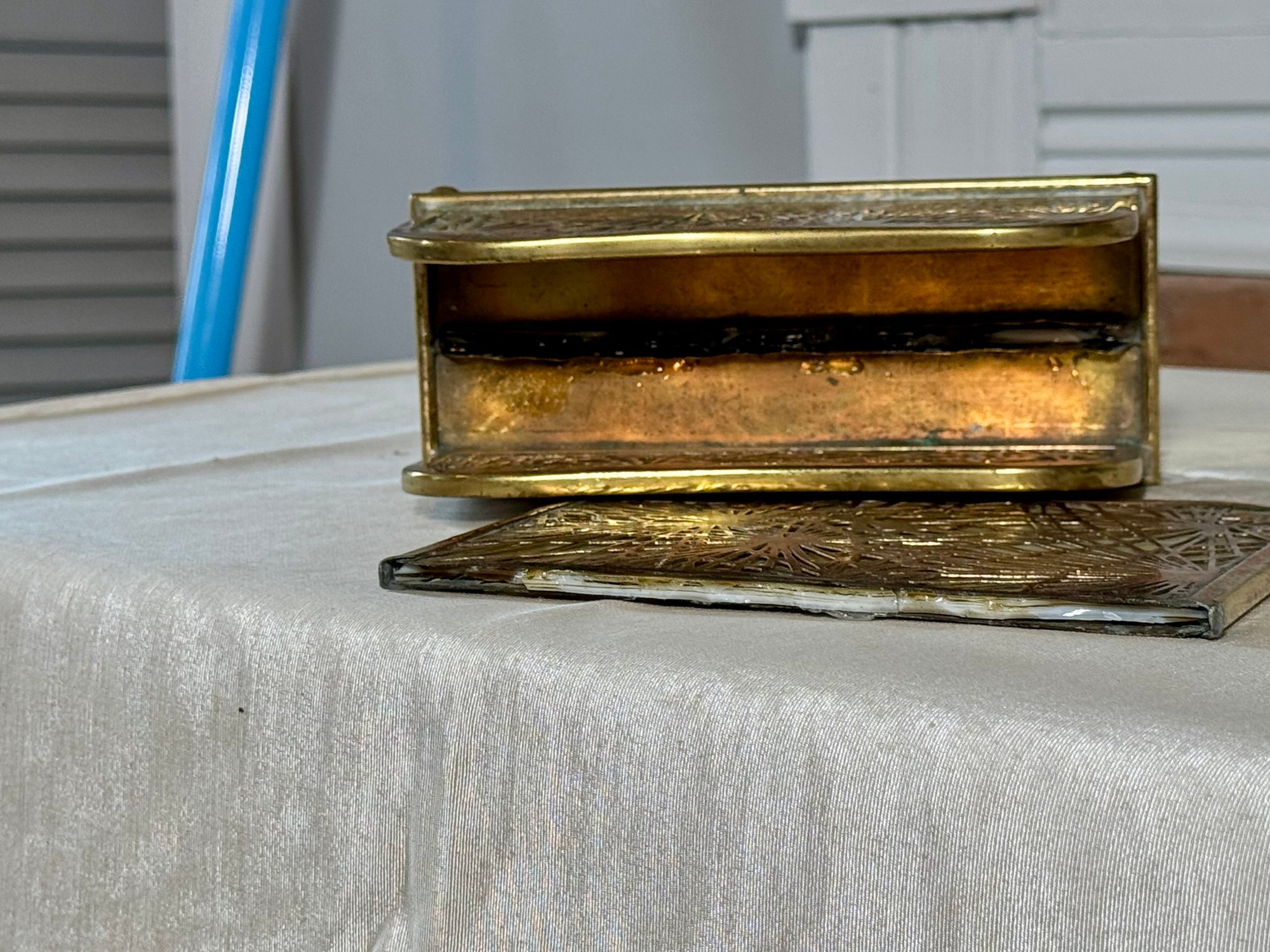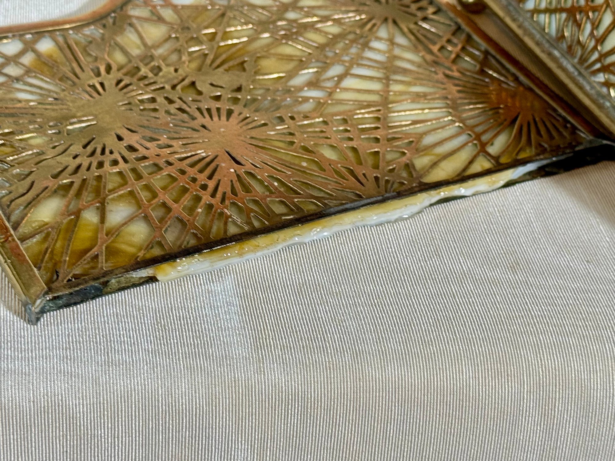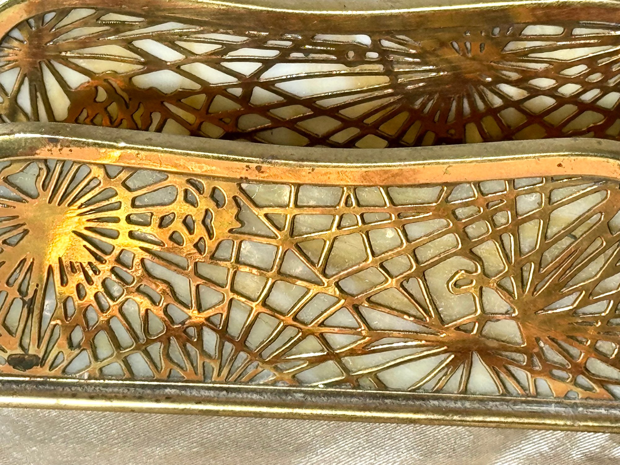 A Tiffany Studios New York letter holder with pine needle design, marked Tiffany Studios New York 1019.