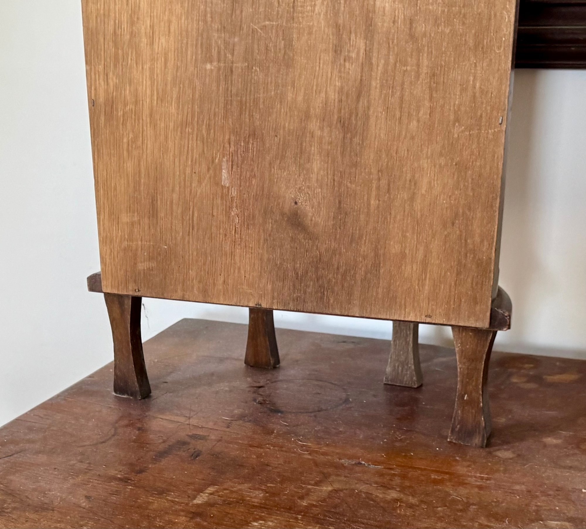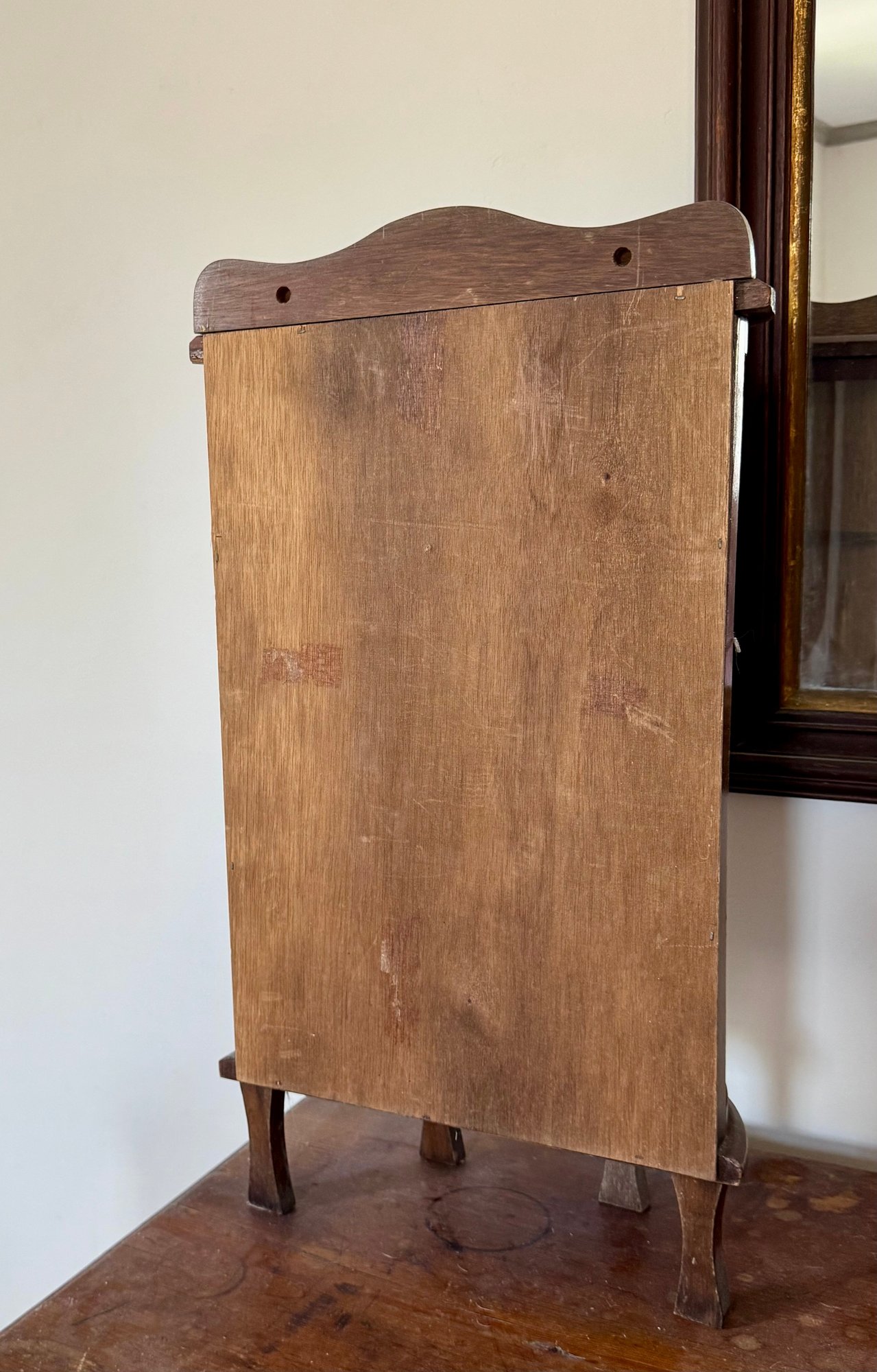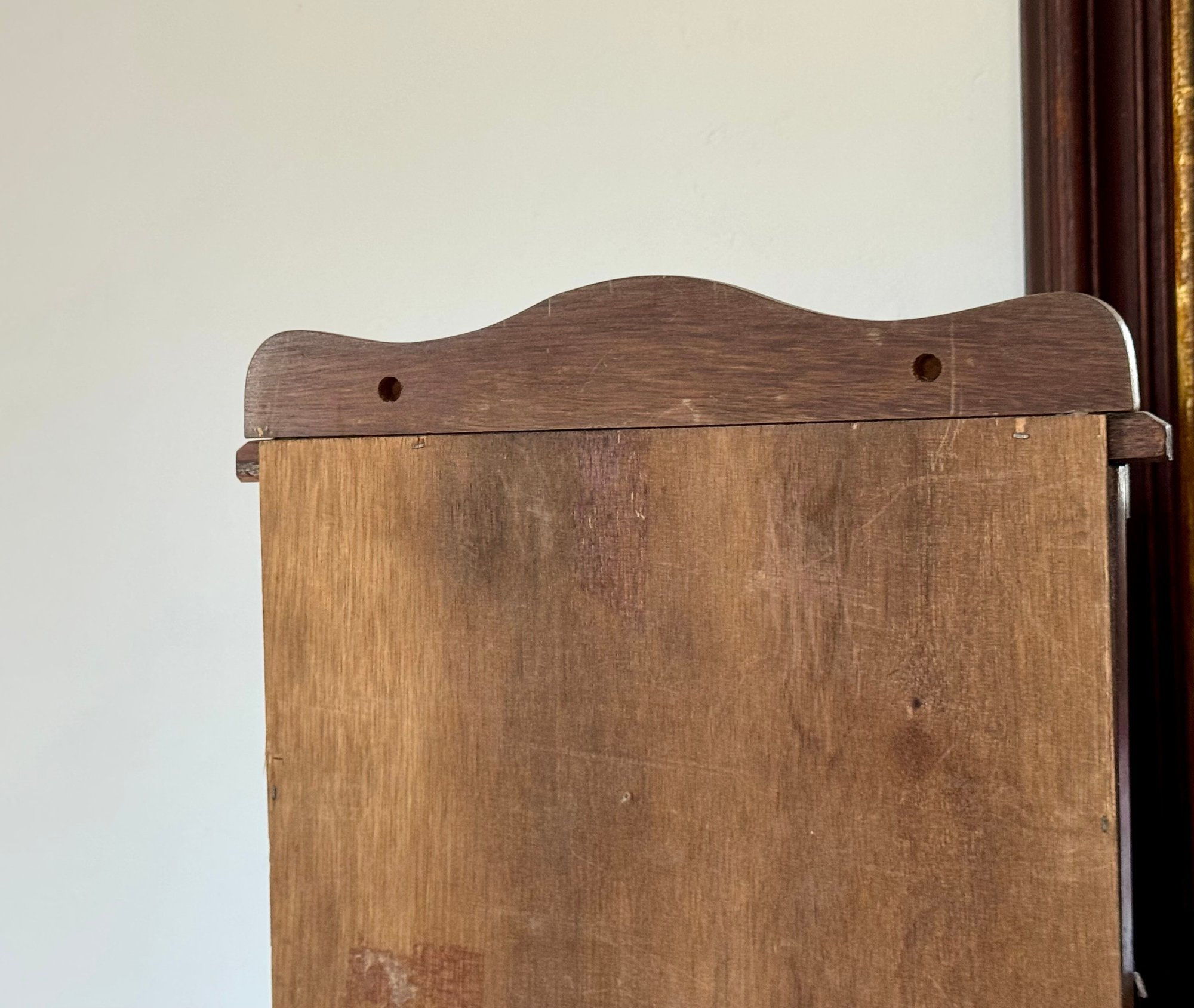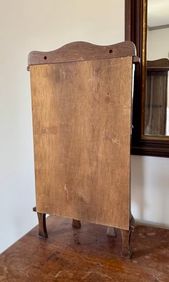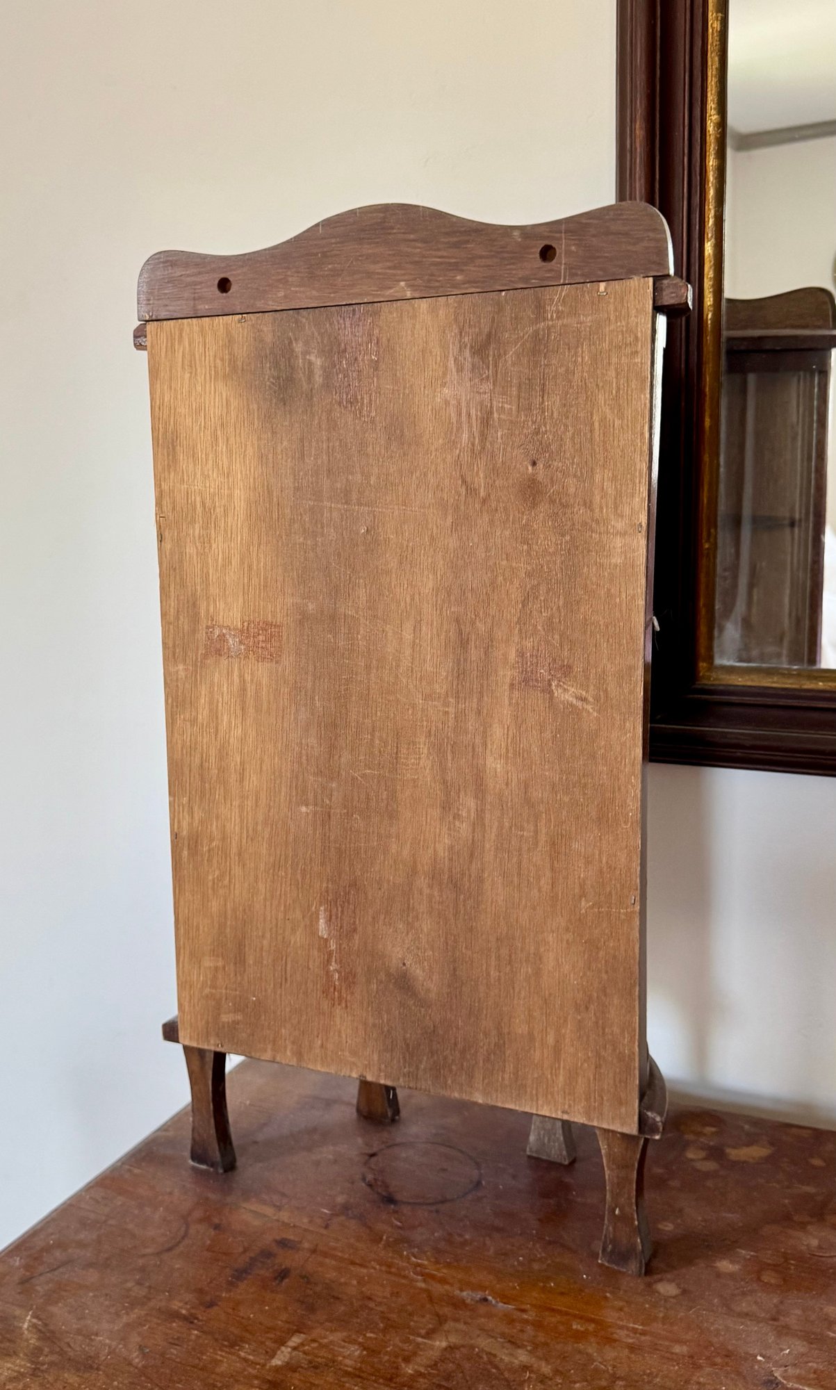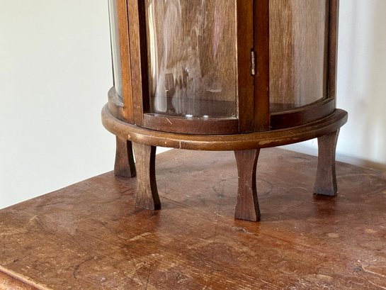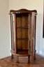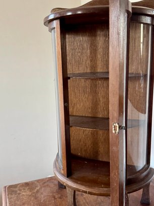 A small curio cabinet with a single door, interior with adjustable and removable shelves.