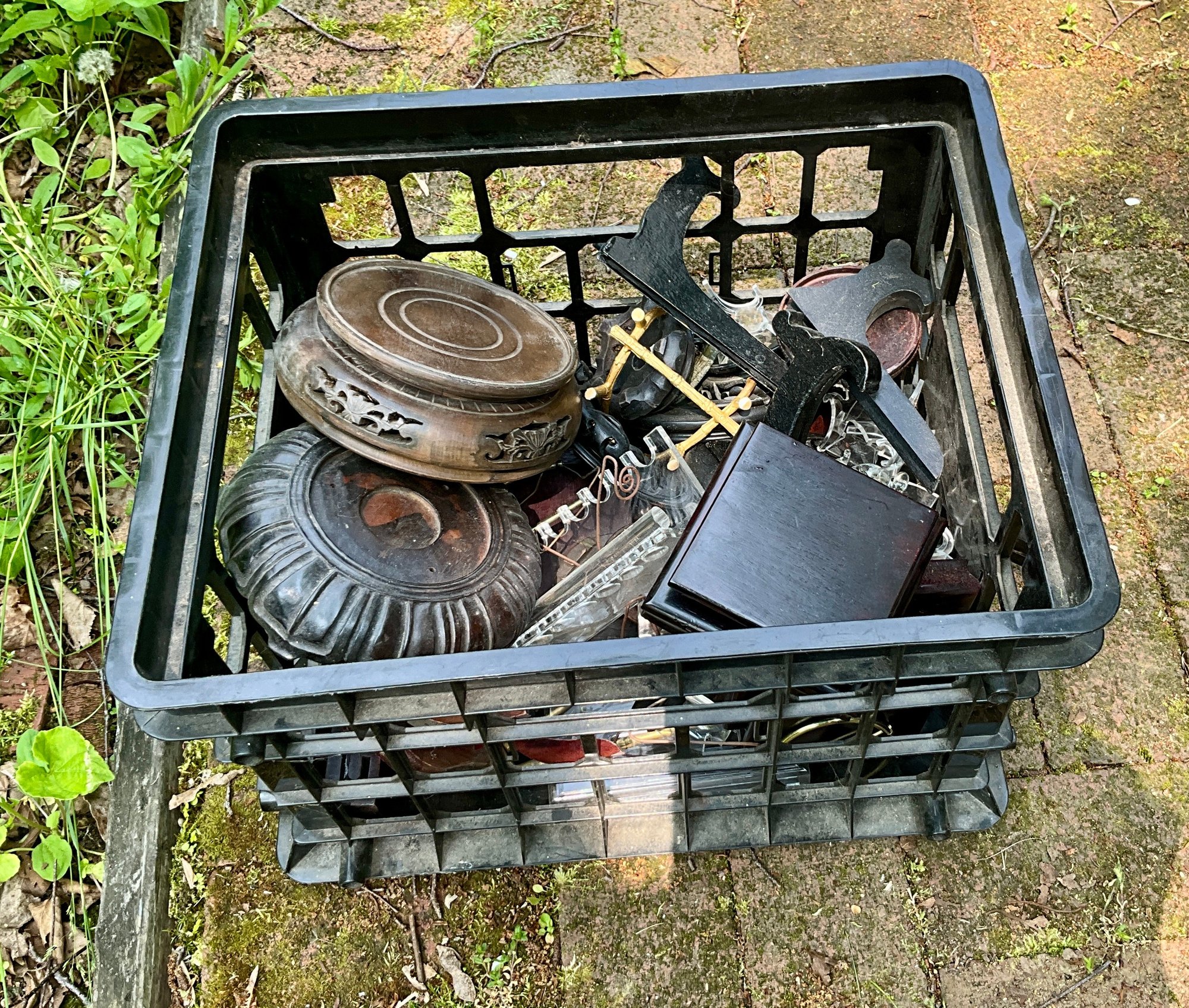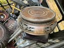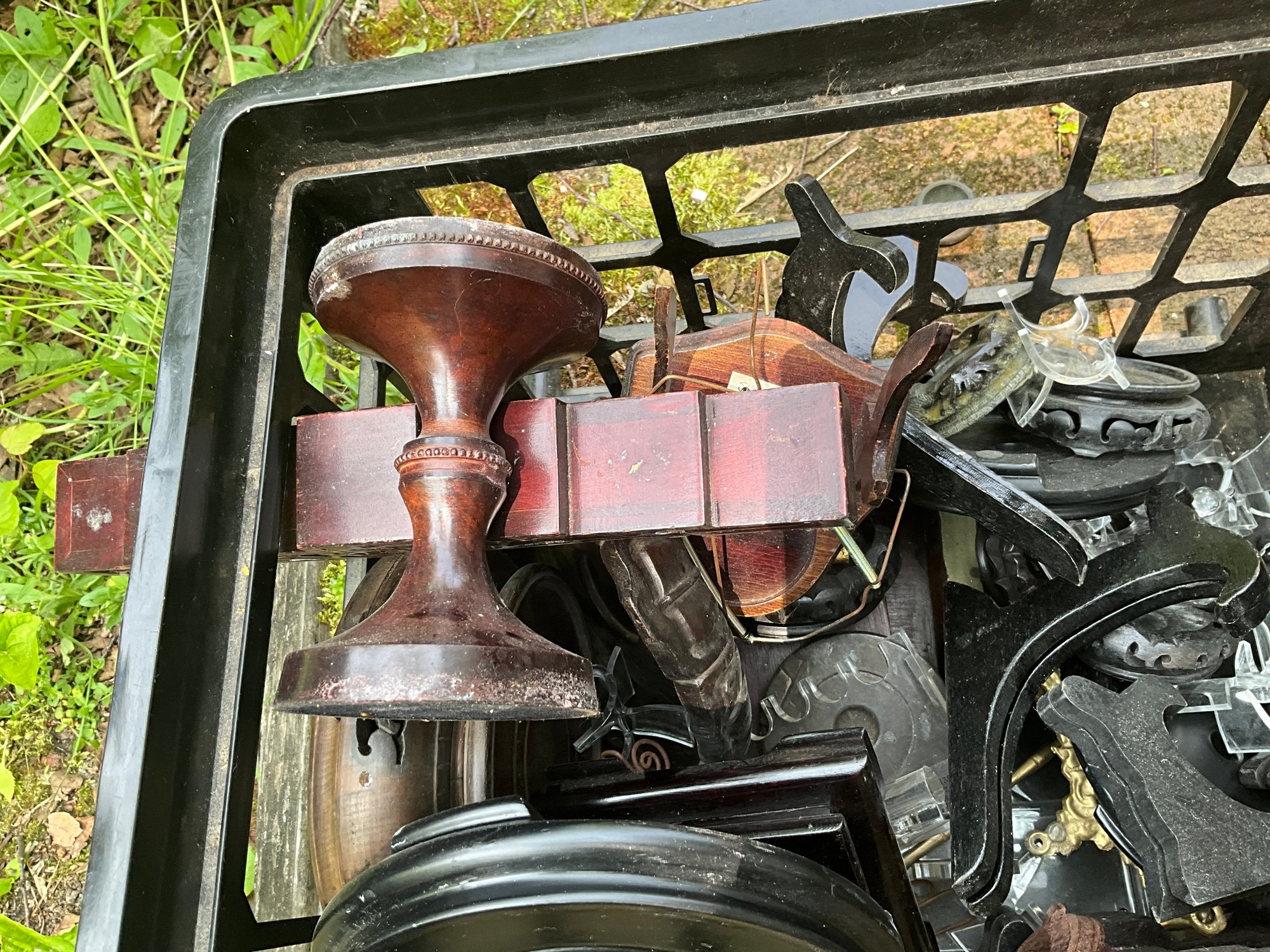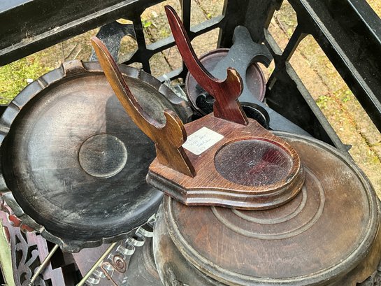 Vintage display bases including wood pedestal and Asian style bases.