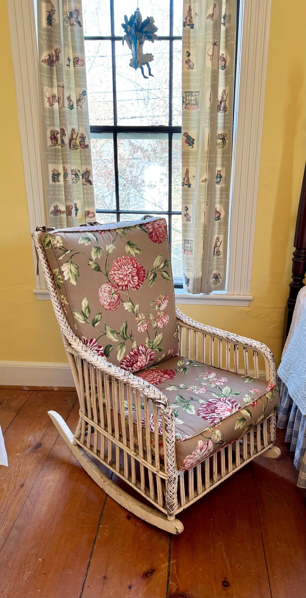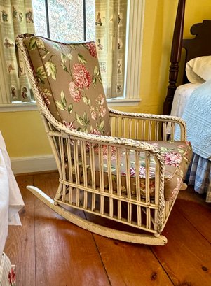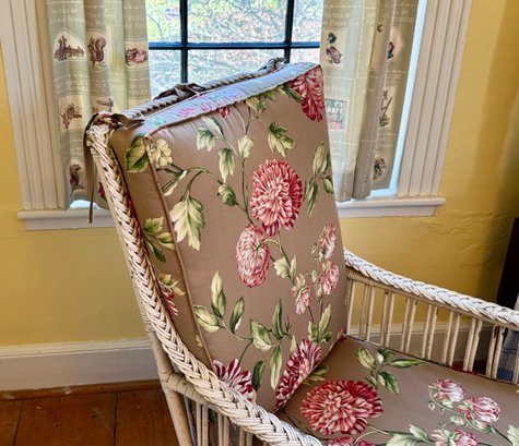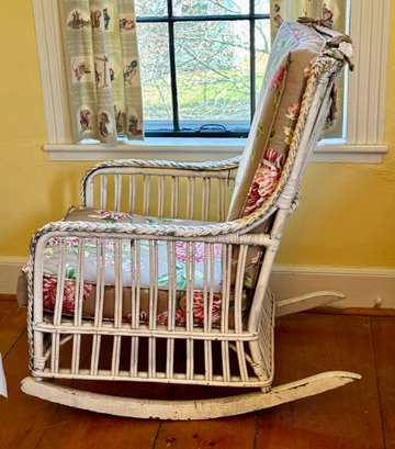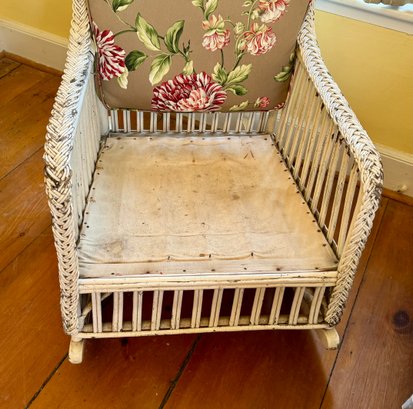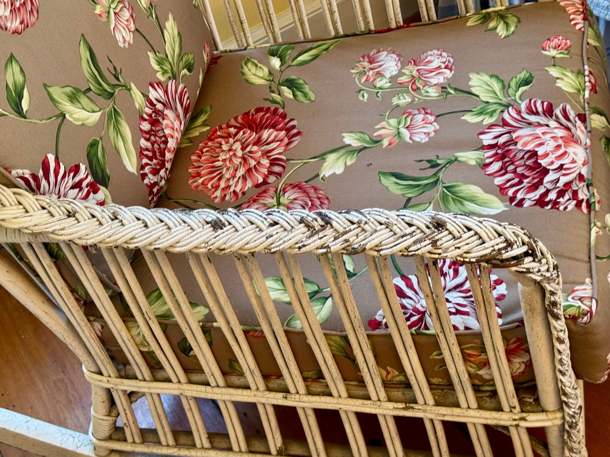 Condition: paint wear and loss, wicker braid on right arm is loose