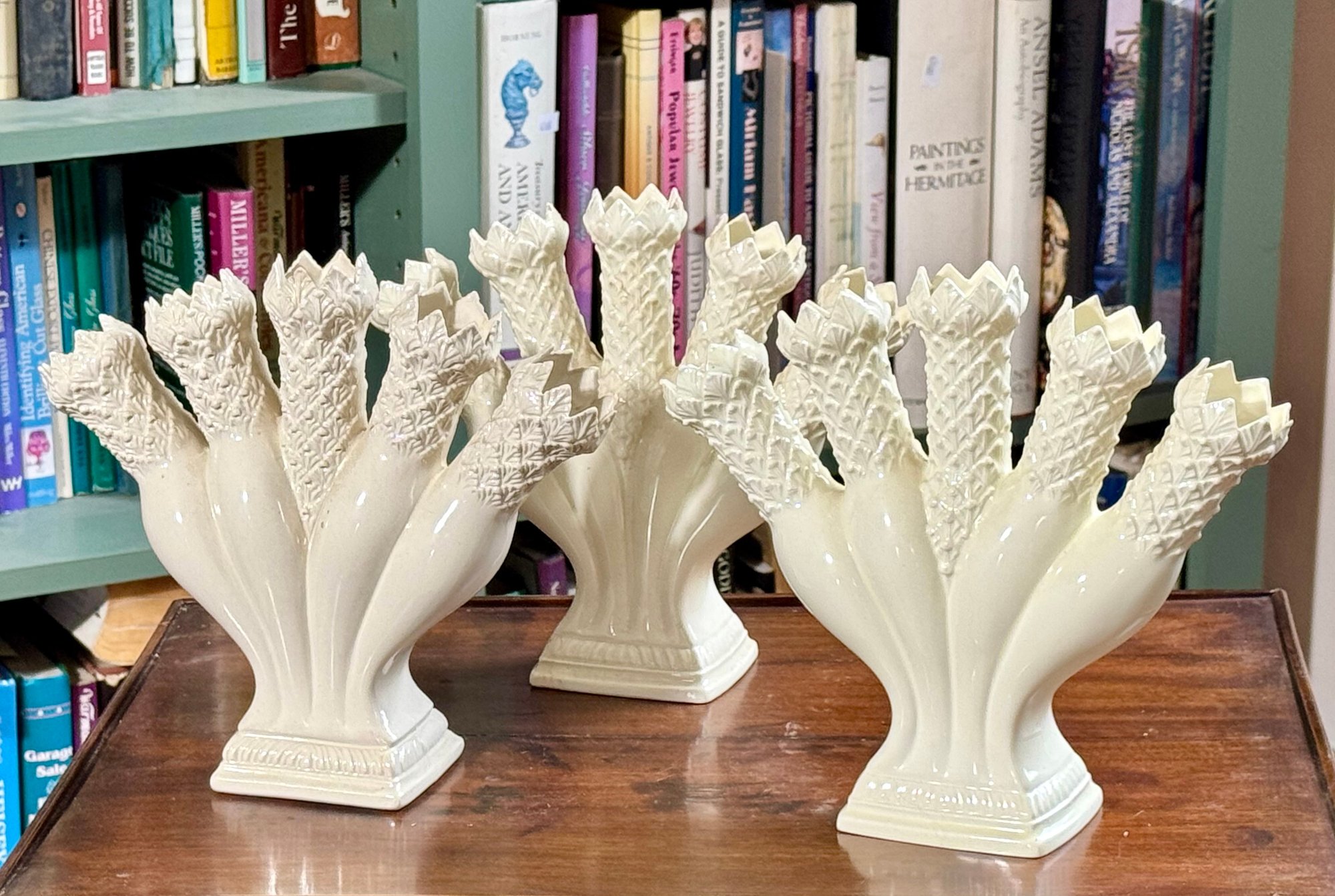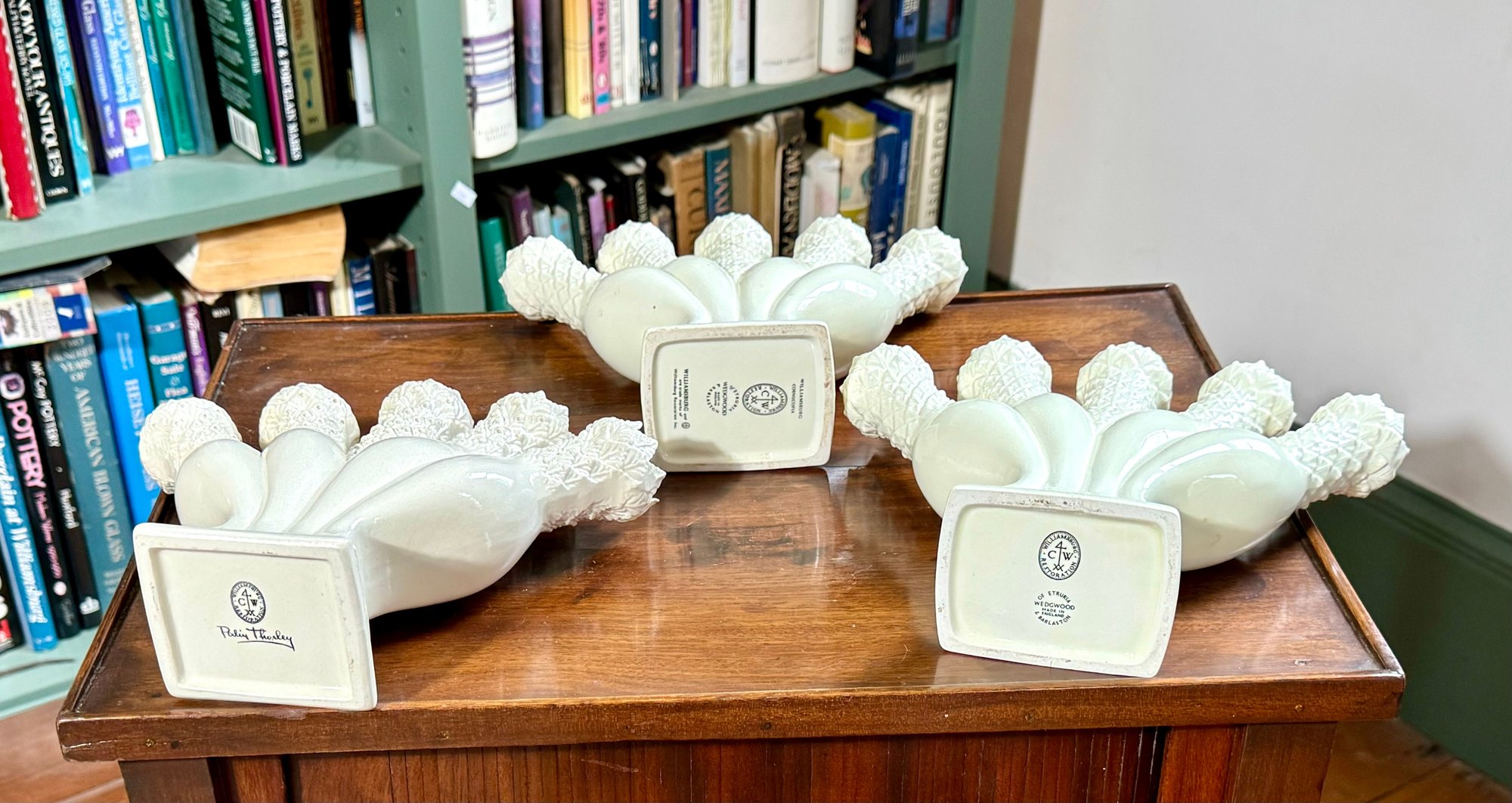 Three Wedgwood Williamsburg Restoration five finger posy holders.