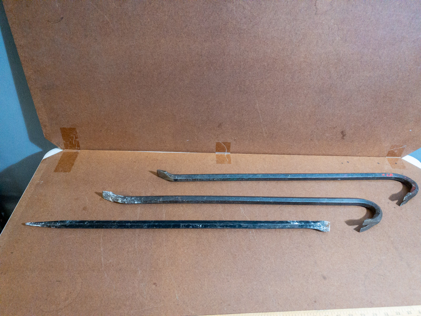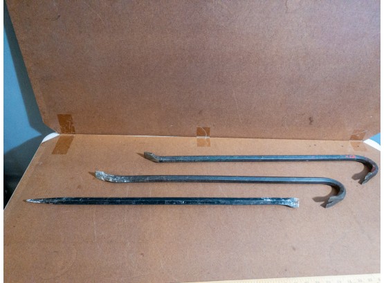 Hold onto your hats, 'cause what we've got here is a trio of steel power, ready to tame any task! These ain't your grandma's crochet needles, friends. We're talkin' pry bars, wrecking bars, demolition tools! This selection of solid steel bars have been in the shop and are ready for service!