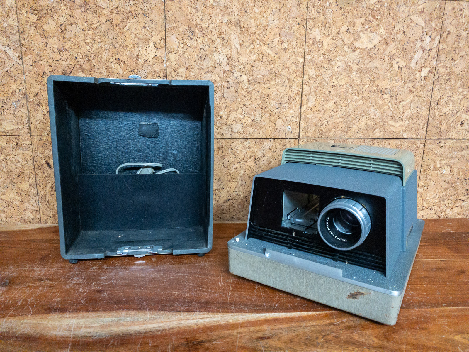 Friends, gather 'round, and get ready to FLASHBACK! Now, what we've got here is a genuine slice of Americana – a Bausch & Lomb Balomatic 500 slide projector! Yes sir, this right here is a time machine disguised as a piece of vintage tech! Forget them newfangled digital whatsits and gizmos; this beauty throws images on the wall like a thunderstorm throws lightning!