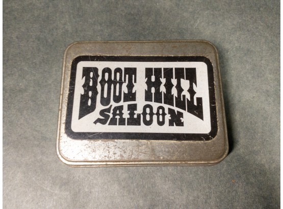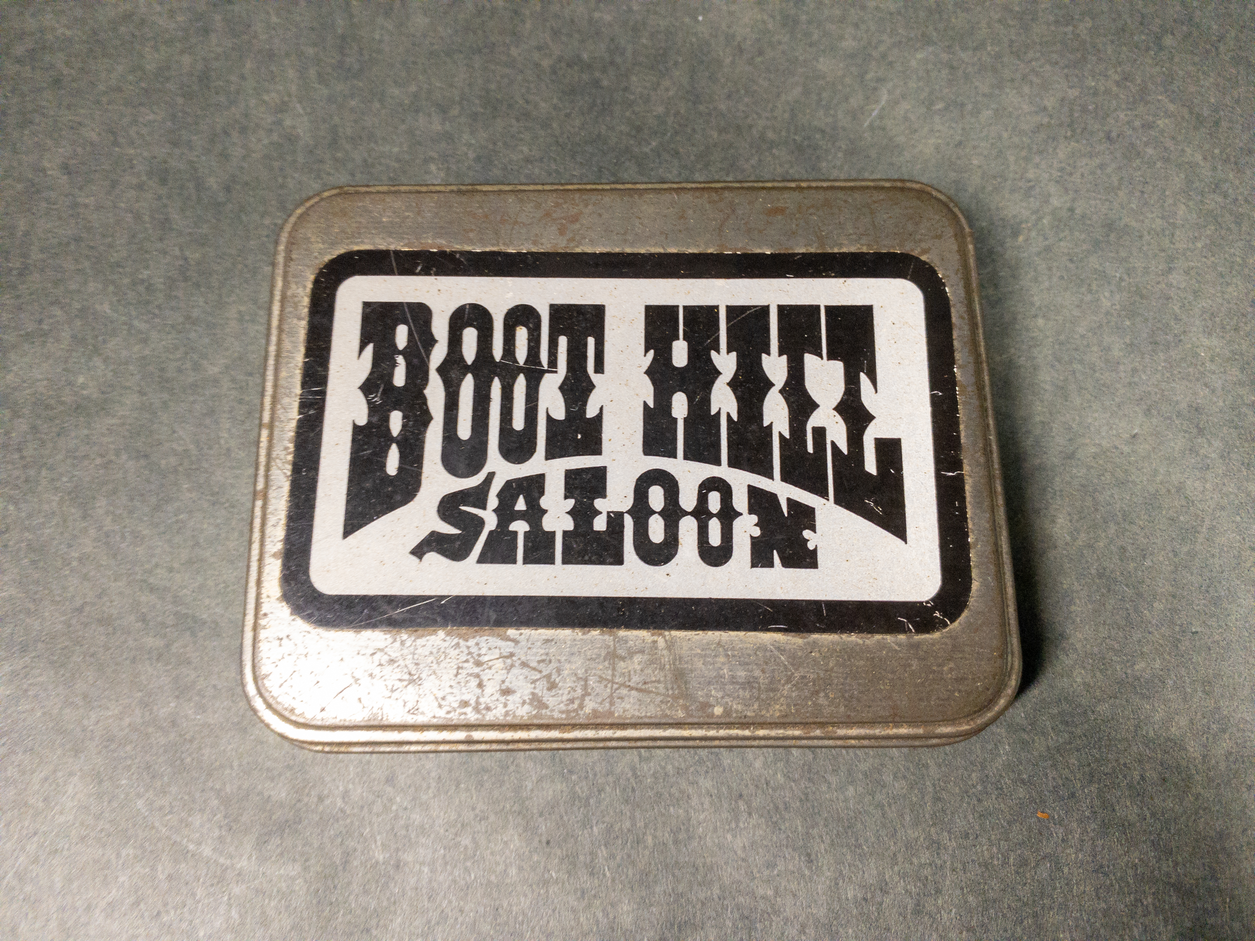 WELL, TIP MY HAT AND POUR ME A SHOT—THIS HERE’S A TRUE PIECE OF SALOON HISTORY! This Boot Hill Saloon Fossil tin box is more than just a container—it’s a slice of vintage cool, ready to add some outlaw spirit to your collection!